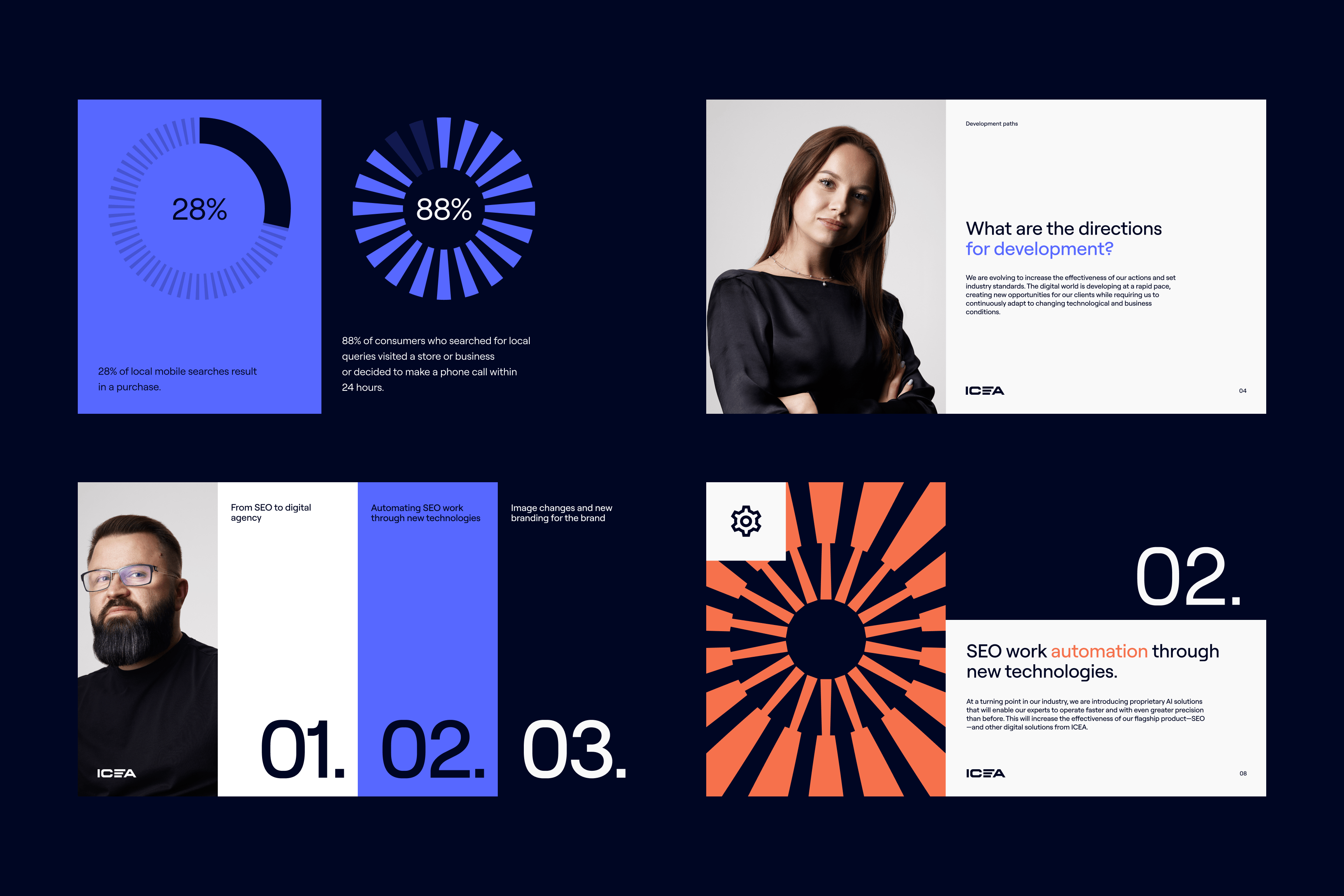Time for development is now. In the rapidly changing SEO industry, your choice is to adapt or perish. However, it is even more important that your brand does not lose its core identity along the way. ICEA possesses unique knowledge of the latest technologies and the ability to utilize them.