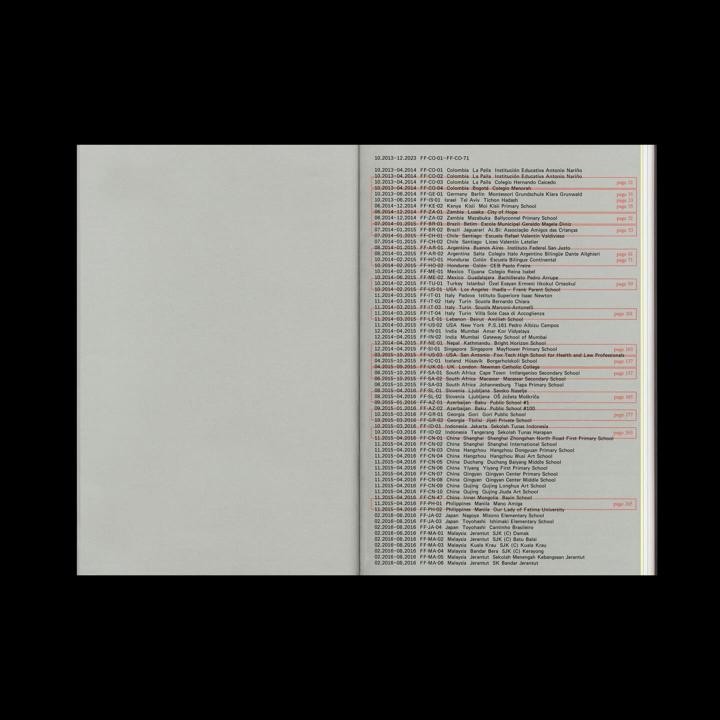 Strings of ideas stem from a central concept, each performs its role to build the singular form: materiality, image, typography, structure and symbol. Exemplified by the cover, the diagram, extracted and optimised from our first presentation slide (in its original form designated to articulate the pace and structure of the book). In this context it symbolises the ‘frequencies’ of multiple participants, across the globe, in a central orchestration, in relation to the overall project.