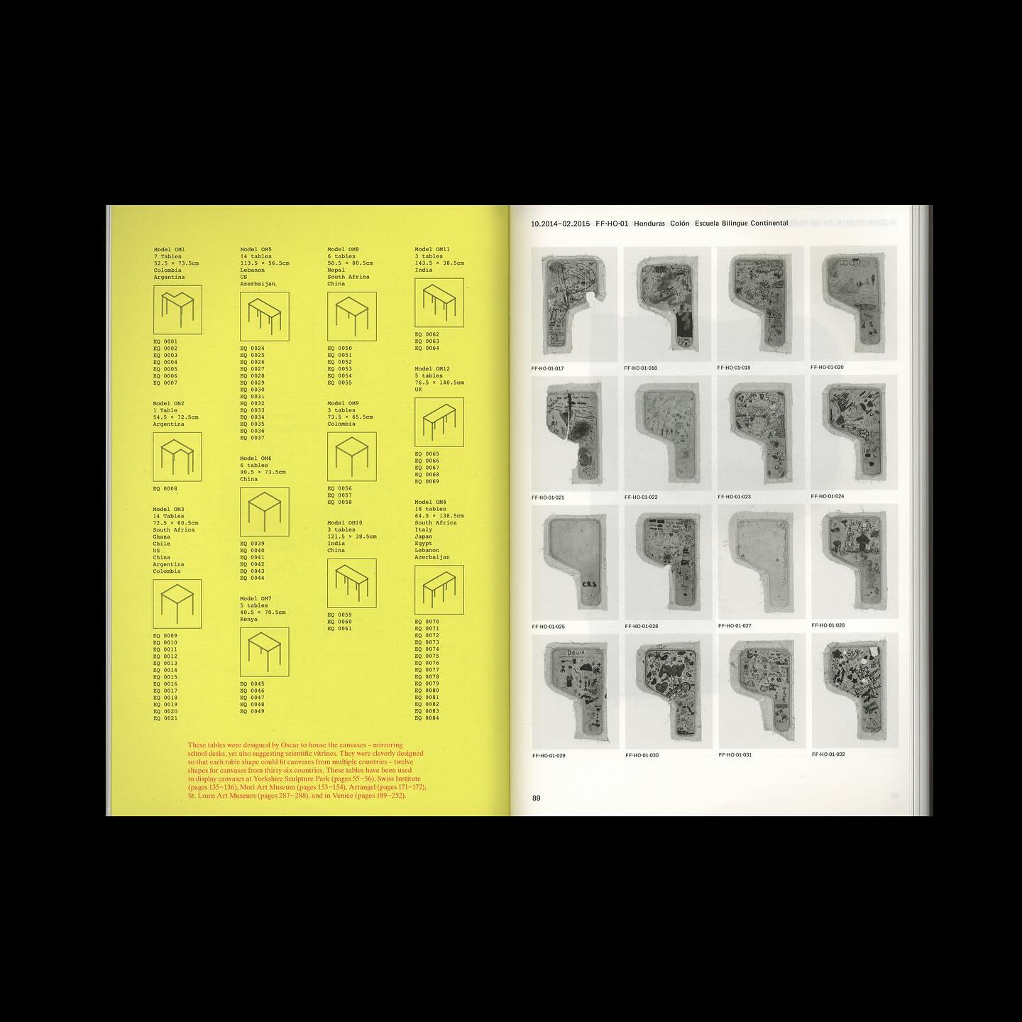 Frequencies addresses the notion of community through the lens of its making. For over a decade, it has involved members of Oscar Murillo’s family, studio team and collaborators, visiting 37 countries, over 400 schools around the globe, fixing over 50,000 raw canvas onto classroom desks, and inviting the students to freely mark, write and draw on them for a period of approximately six months.