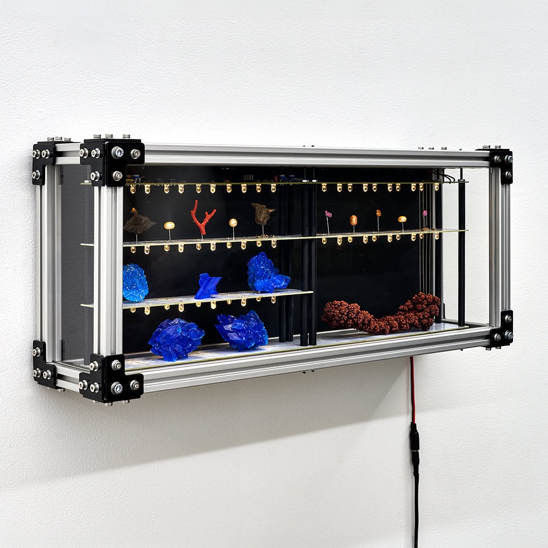 Everything starts with organic processes, even industrialization and its decline. To seed is to put creation into motion and refers to any input used to initialize a generative process. The artist’s mechanized artworks explore a commodities journey from conception, production, and logistics, finally landing at display.