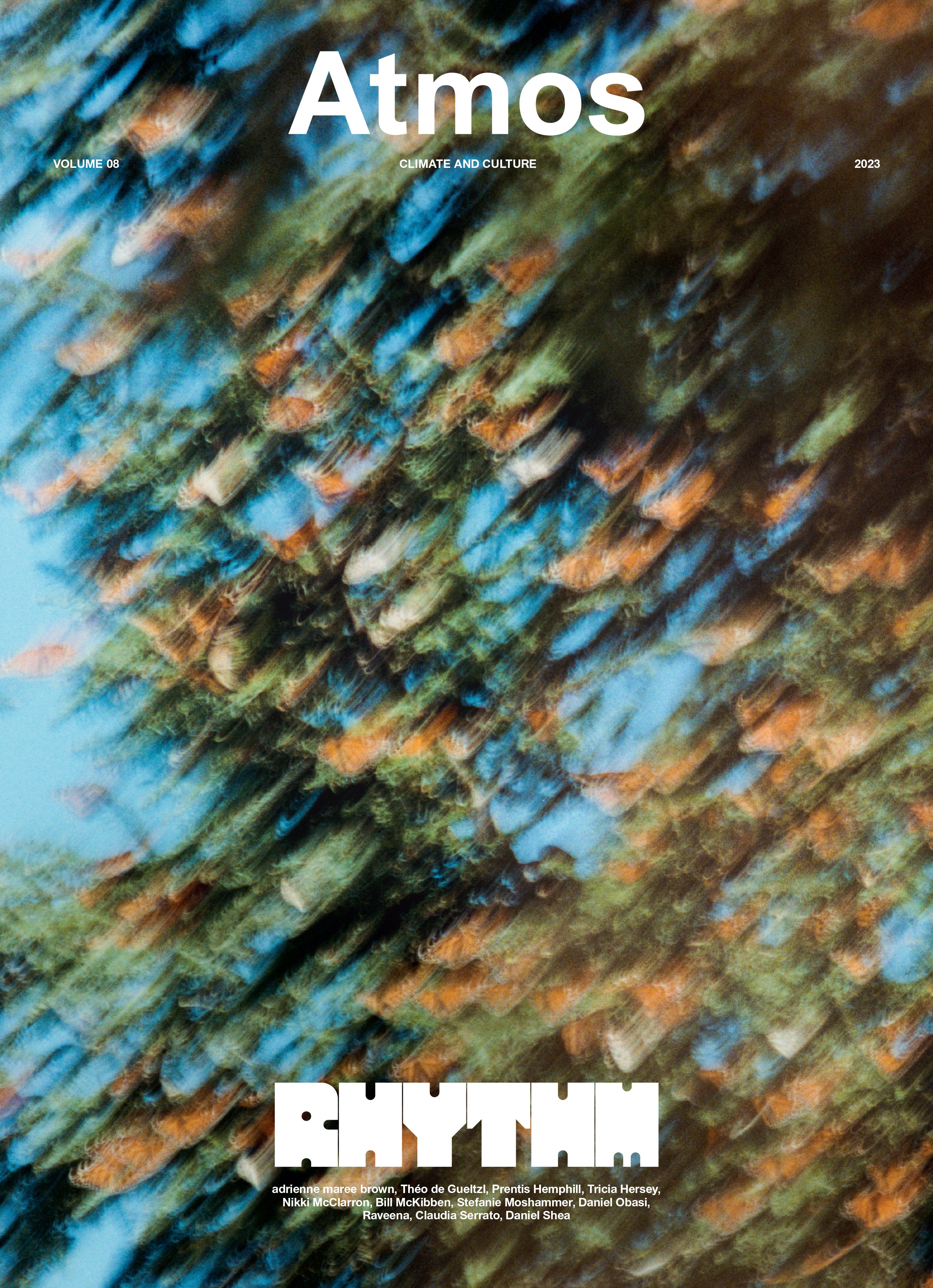 Nature is an elaborate orchestra of interconnectedness, in which timing is everything. Atmos Volume 08: Rhythm dances with sound and synchronicity, cycles and circularity, patterns and pacing. How do we reconcile slow living with a climate of urgency? In what ways have our circadian rhythms been disrupted by artificial algorithms? How do we reconnect with the cycles of the natural world? Featuring contributions from adrienne maree brown, Théo de Gueltzl, Prentis Hemphill, Tricia Hersey, Nikki McClarron, Bill McKibben, Stefanie Moshammer, Daniel Obasi, Raveena, Claudia Serrato, Daniel Shea, and more.