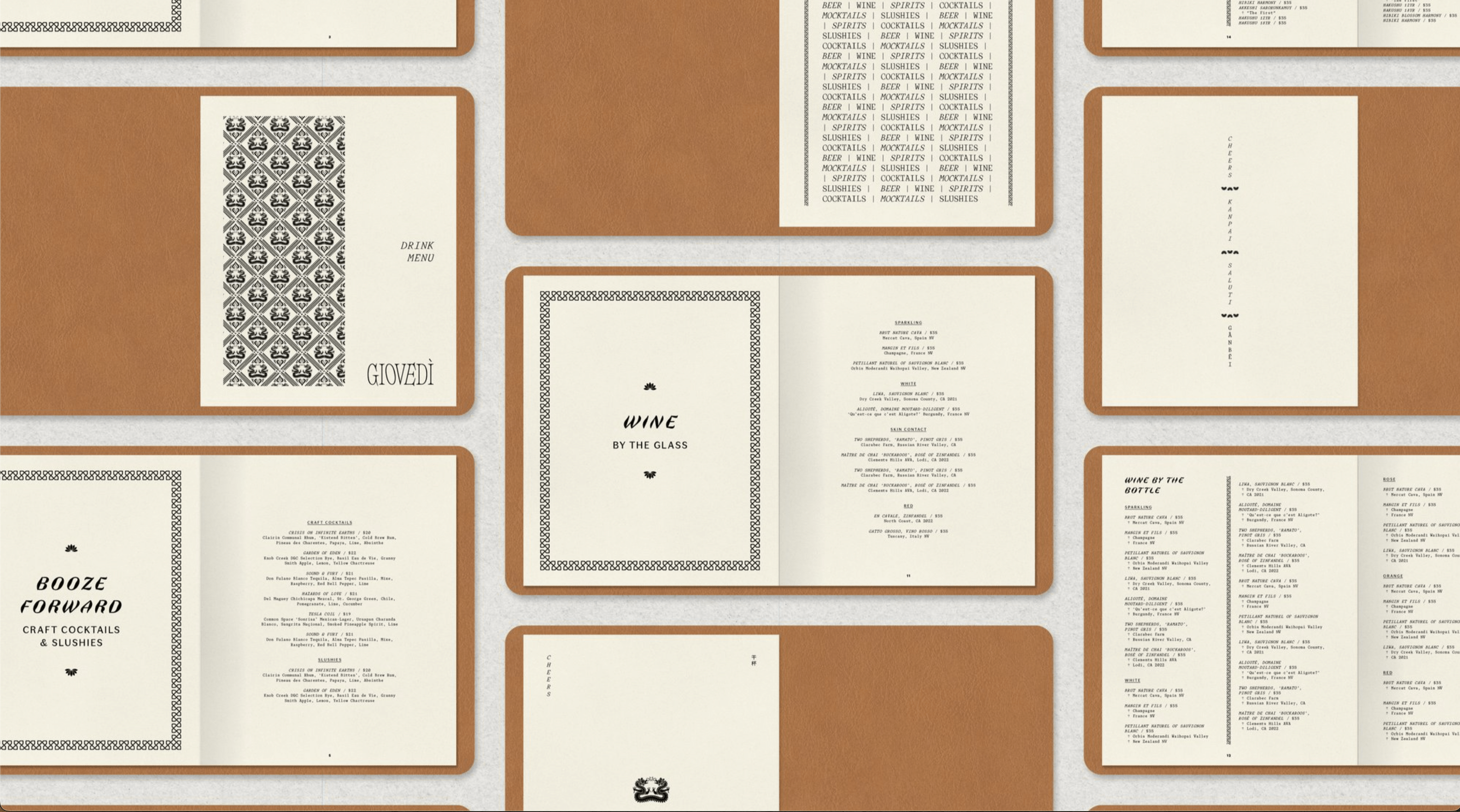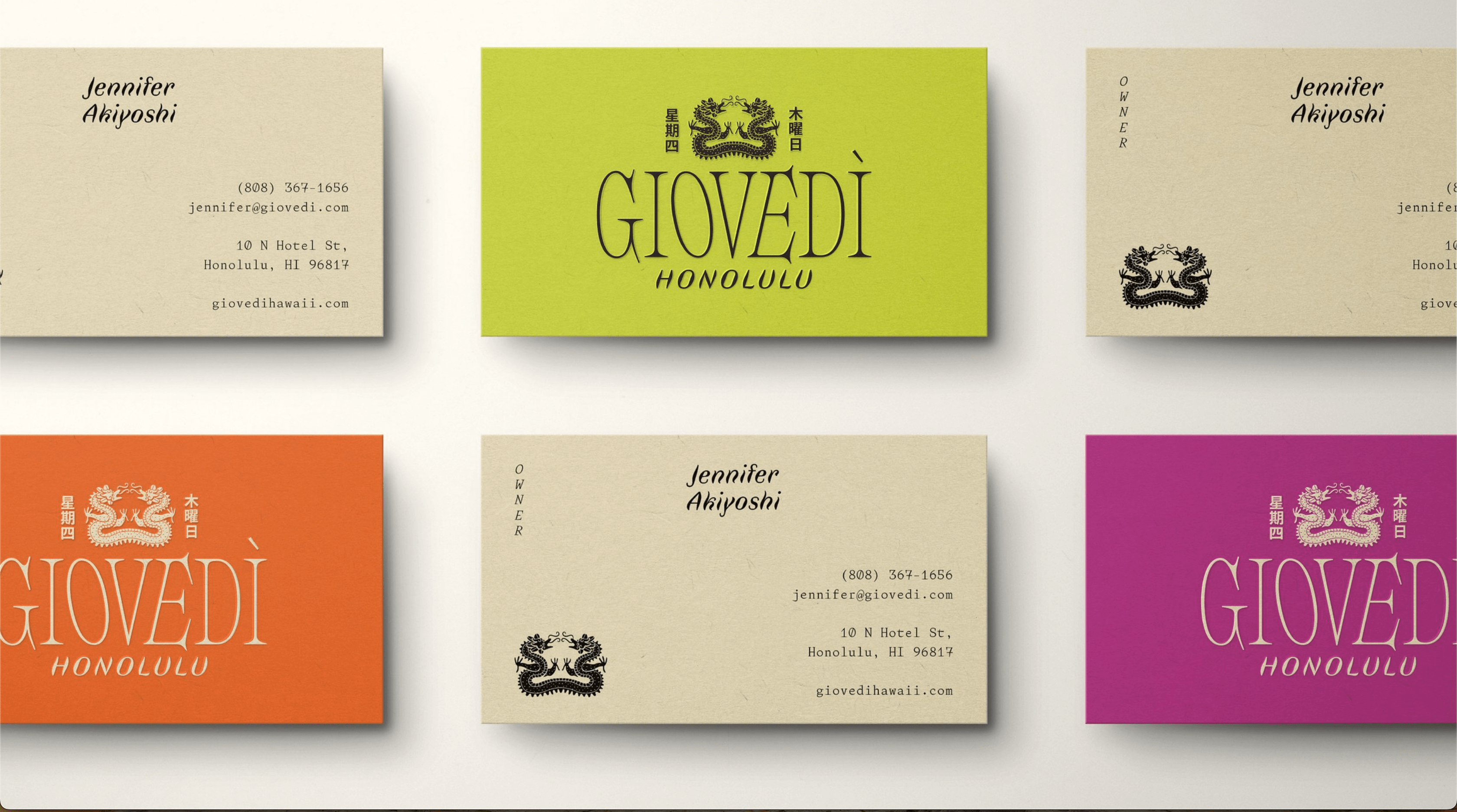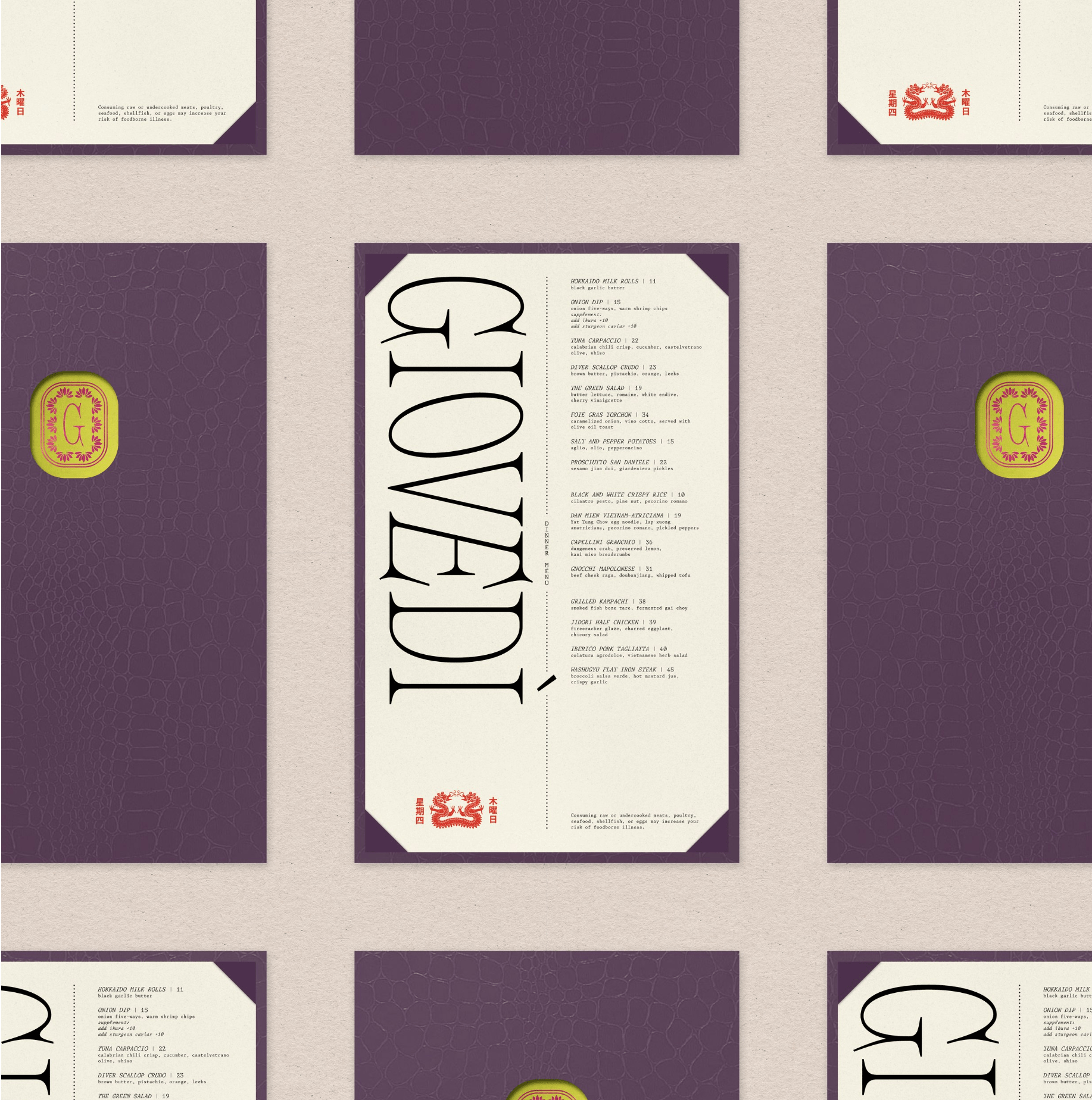 Faune by Alice Savoie and Knif Mono available at A is for are used for the identity of Giovedì, an Italian-Asian restaurant in Honolulu, Hawaii.