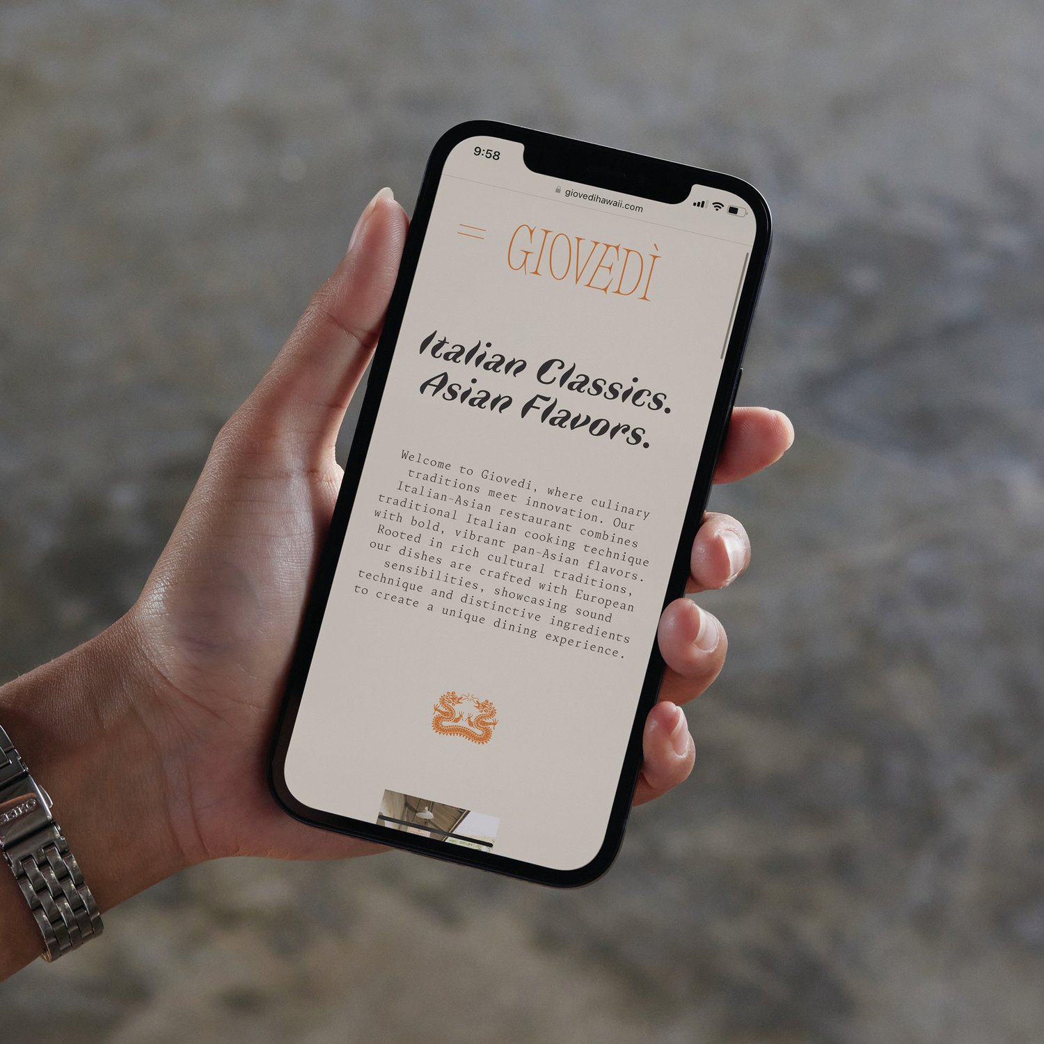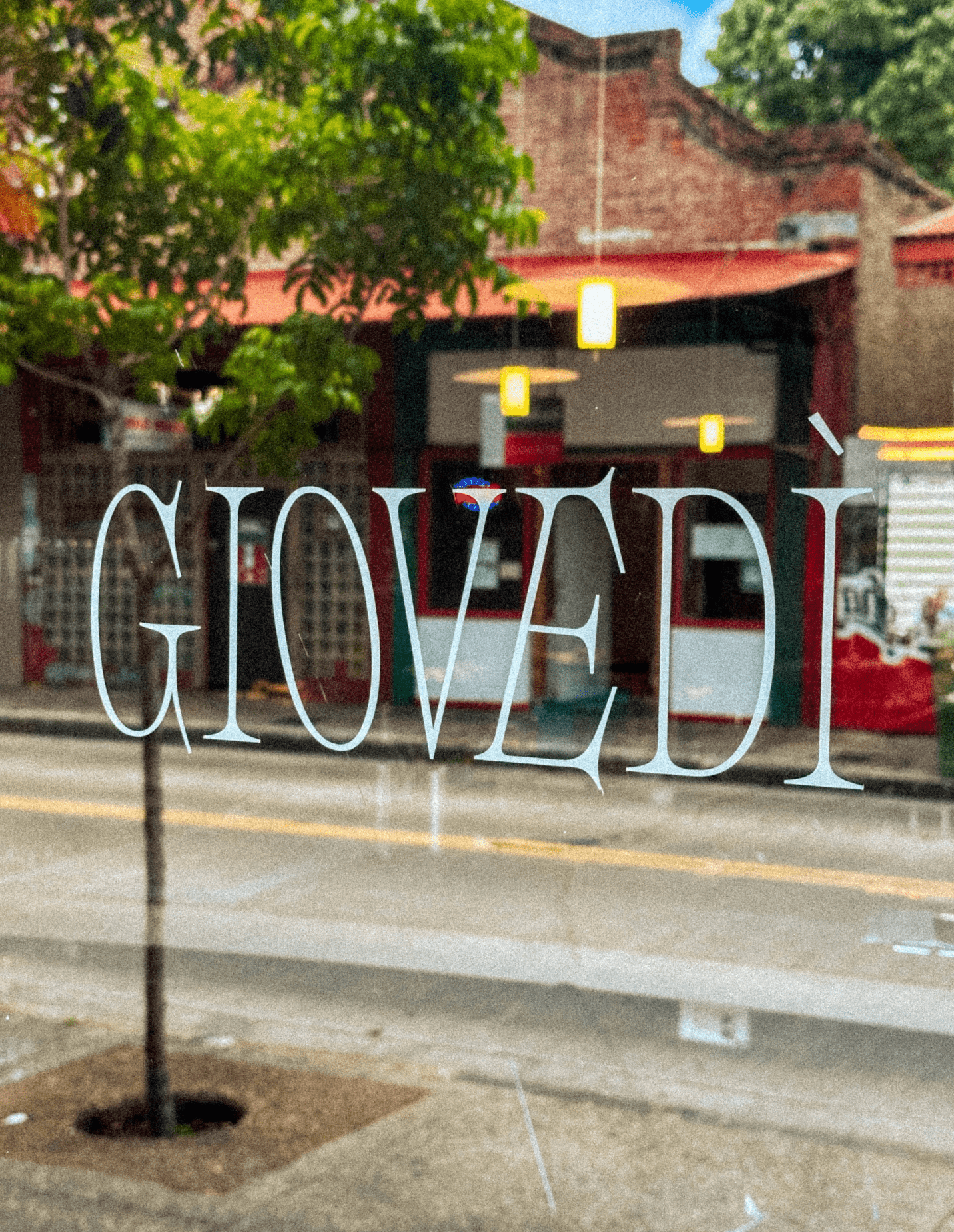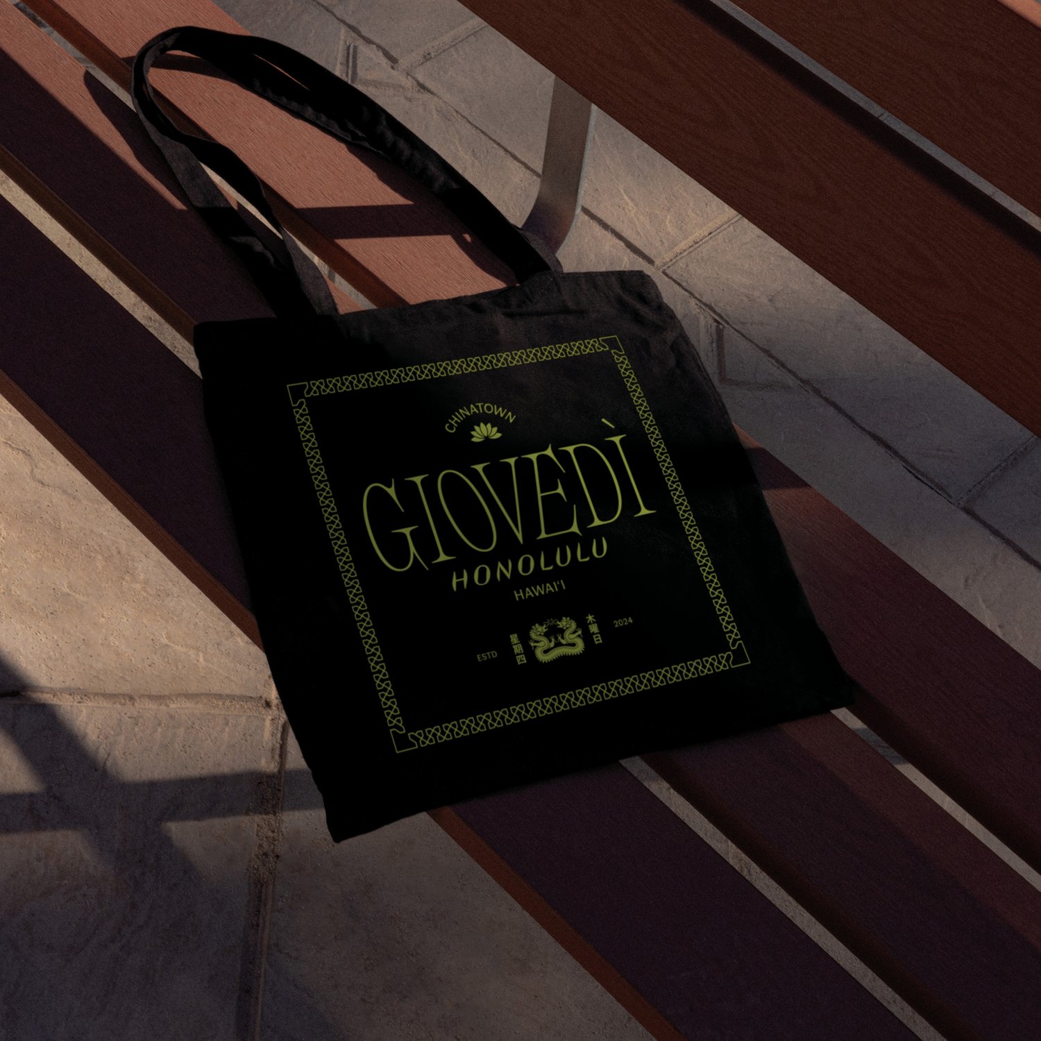Faune by Alice Savoie and Knif Mono available at A is for are used for the identity of Giovedì, an Italian-Asian restaurant in Honolulu, Hawaii.