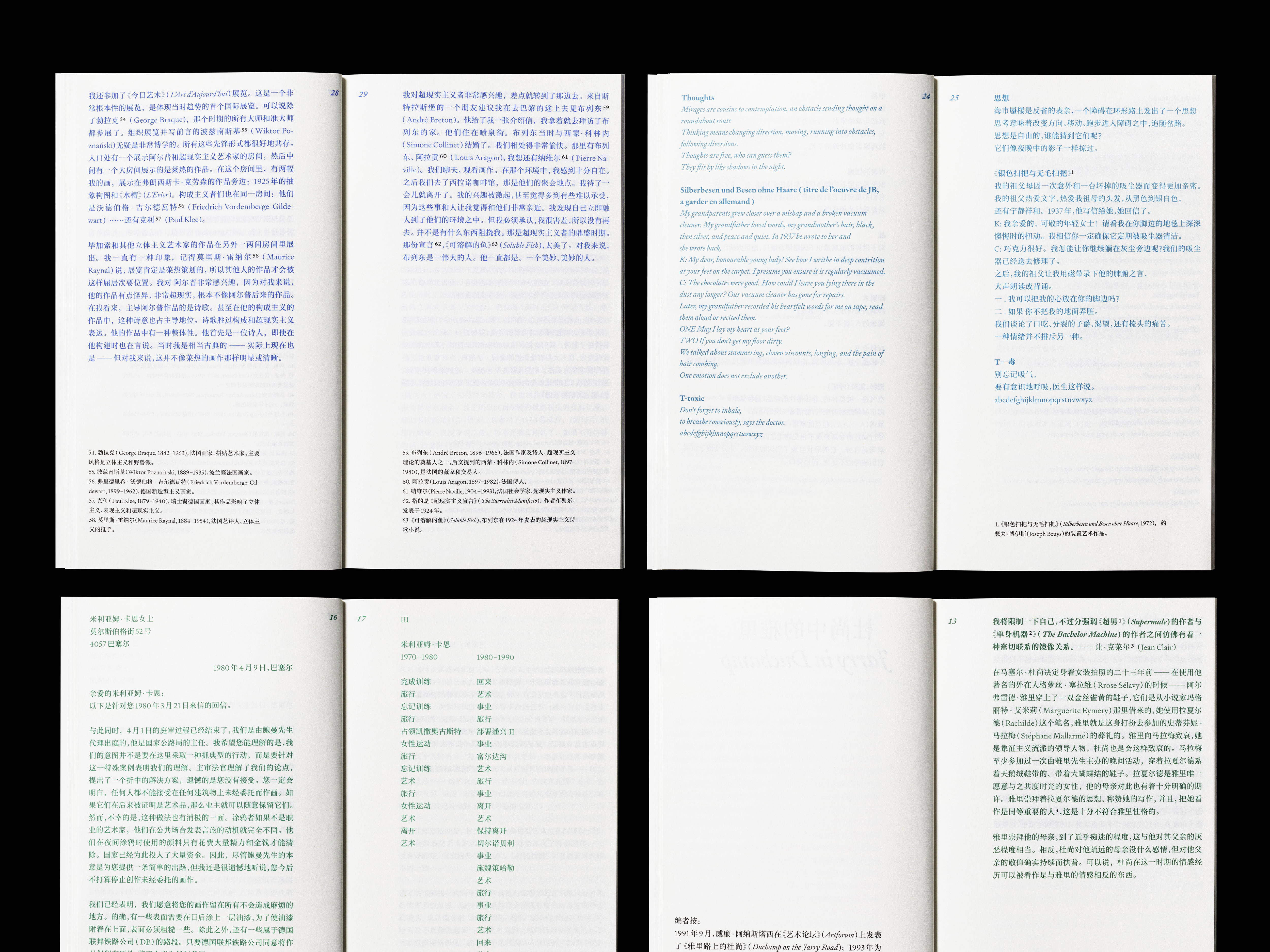 In this design, we deliberately restrained the designer’s impulse to “draw something” and instead relied solely on color for editing and typography for design. Within the diverse texts, we engaged in subtle typographic play while keeping the bookbinding structure simple. We minimized the variety of paper types, striving to create an art book that closely resembles a “book” in its purest form.