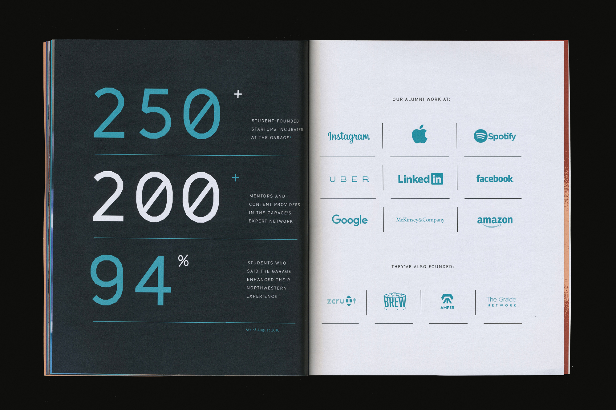 Inspired by the space and featuring poignant leading questions and successful alumni, this limited edition book aimed to capture the crossover of entrepreneurial spirit and technological wonder on display at The Garage.