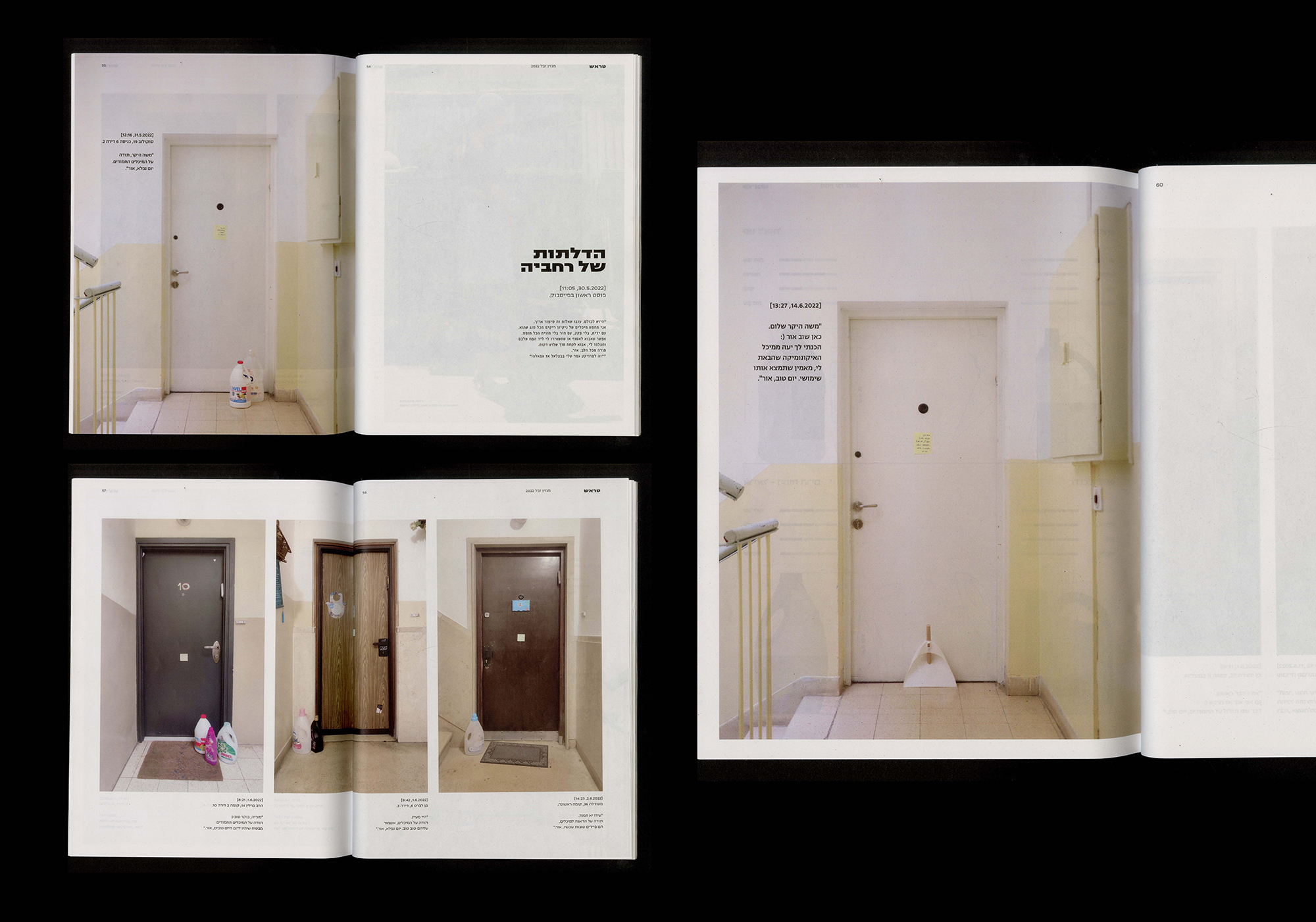 Achinoam Tamar Virt provided artistic guidance and Nitsan Mayost graphic support. Nitsan Mayost, Liron Midani, Yonatan Shoshani, and Yael (a resident of Nachlaot) conducted interviews. The cover image is by Ruth Yarmolinsky. The project was supervised by Maya Ben David and printed at Codaf, Tel Aviv.