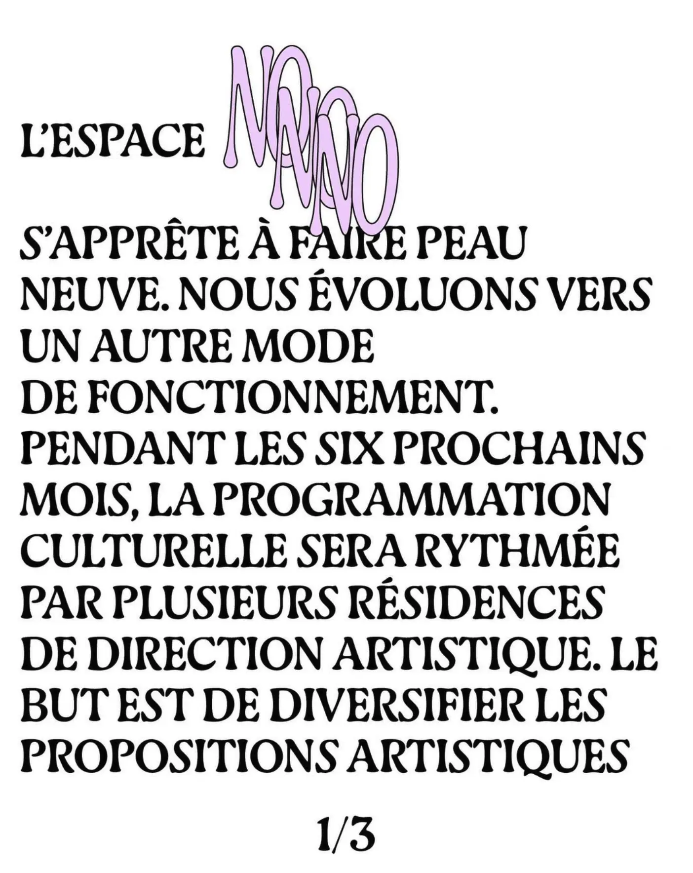 Non-étoile is behind a number of events and exhibitions. The association also runs the nonono space, a place dedicated to exhibitions and experimentation, and hosts the web radio stations Radion and Lyl radio.