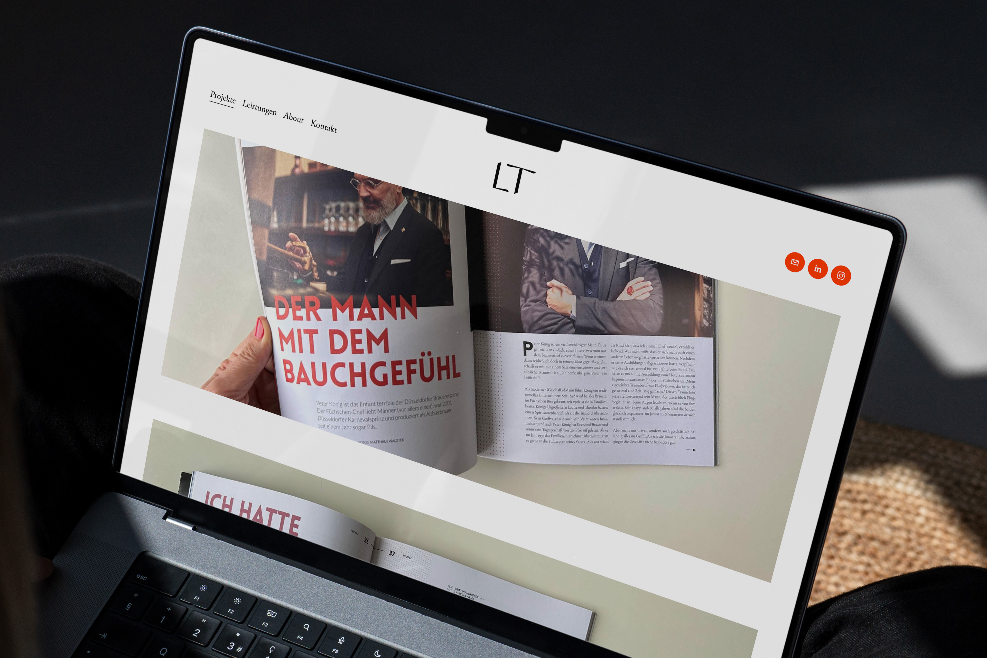 Freelance graphic designer and art director Lena Tervooren from Germany uses Before Paris by Azuliq Type for her own visual identity. The Regular weight is used for both the printed business card and its digital touchpoint. A bespoke version of Before Paris is used for the “LT” logo, as seen on her website.