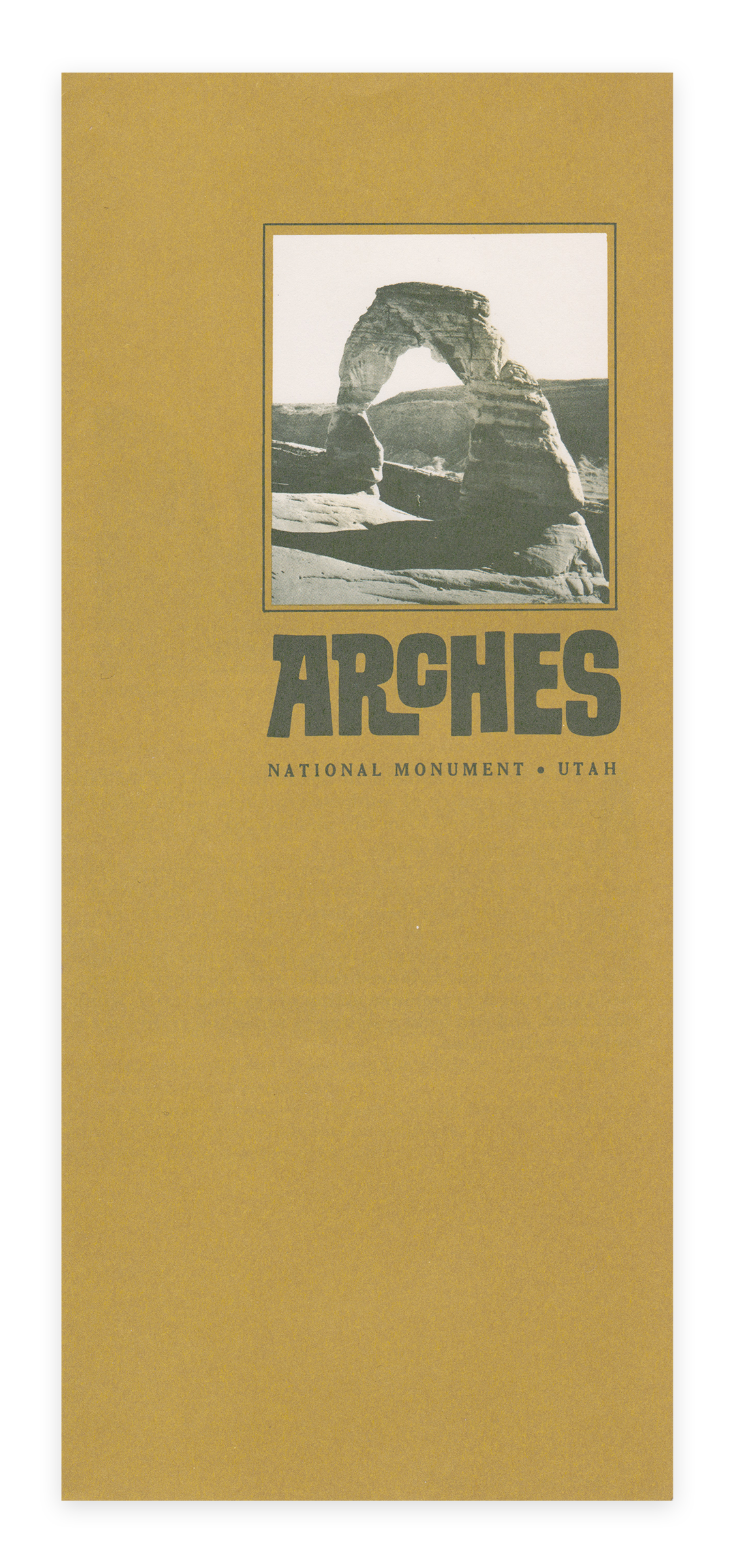 Arches National Monument Utah brochure Contributed by Josh Korwin on Mar 29th, 2025. Artwork published in 1966. Source: www.nps.gov License: All Rights Reserved. A 1966 brochure for Arches National Monument in eastern Utah, created by the United States National Park Service. Safari is used in its boldest weight. The small type appears to be a bold condensed version of Cheltenham. Typefaces More about Safari (Headliners)More about CheltenhamGet Cheltenham Formats Booklets/Pamphlets (2413) Ephemera (1224) Topics Science/Nature (1130) Travel (803) Governmental/Civic (729) Designers/Agencies National Park Service (1) Tagged withUS National Parks (11)Utah (3)brochures (201)interlocking letterforms (81) Artwork location United States (9966) Utah (36) In Setsmodern album art (J. Plymouth) (49) Post a comment Name Email – will not be published Website Your response Submit Comment More Safari (Headliners) in use Soupy Sales – Up in the Air album art1962Max YavnoMerle ShoreContributed by Florian Hardwig “Are your ads living in the past?” ad by Advertising Typographers Association1984unknownContributed by Florian Hardwig Smith-Corona Ten-Day Touch Typing Course1961unknownContributed by Florian Hardwig Sponsor More in Governmental/Civic What to the Slave is the Fourth of July?1852Lee, Mann & Co.Contributed by Nick Sherman Blog L’Escale2024Odd Forms StudioContributed by Victor Mantel Barbican Arts Centre2006Cartlidge LeveneStudio MyerscoughContributed by Stephen Coles Staff Pick Bonifacio city branding2022Artel StudioContributed by Maëlla Le Nestour Staff Pick More in Booklets/Pamphlets Uriel Orlow – Conversing with Leavesc. 2020In The Shade Of A TreeContributed by Fatype Trifolion Echternach visual identity2022Julie Conrad Design StudioContributed by XYZ Type Siesta Festival Panorama #12024Carolina GiovagnoliSiesta VerlagContributed by Huerta Tipográfica Clip Books of Line Art, Volk (1958)1958Harry Volk Jr. Art StudioPhoto(s) by Bart Solenthaler on Flickr. More Fonts In Use O último verão by Ricarda Huch2023Bloco GráficoGabriela CastroGustavo MarchettiContributed by Bloco Gráfico Staff Pick Jazzdor 2014 festival2014HelmoContributed by Stephen Coles Staff Pick All Classical Portland2016Studio JellyAlex HarrisMia NoltingContributed by Florian Hardwig Staff Pick Charles Gleyre (1806–1874): Le romantique repenti2016Brice TourneuxContributed by Production Type Staff Pick