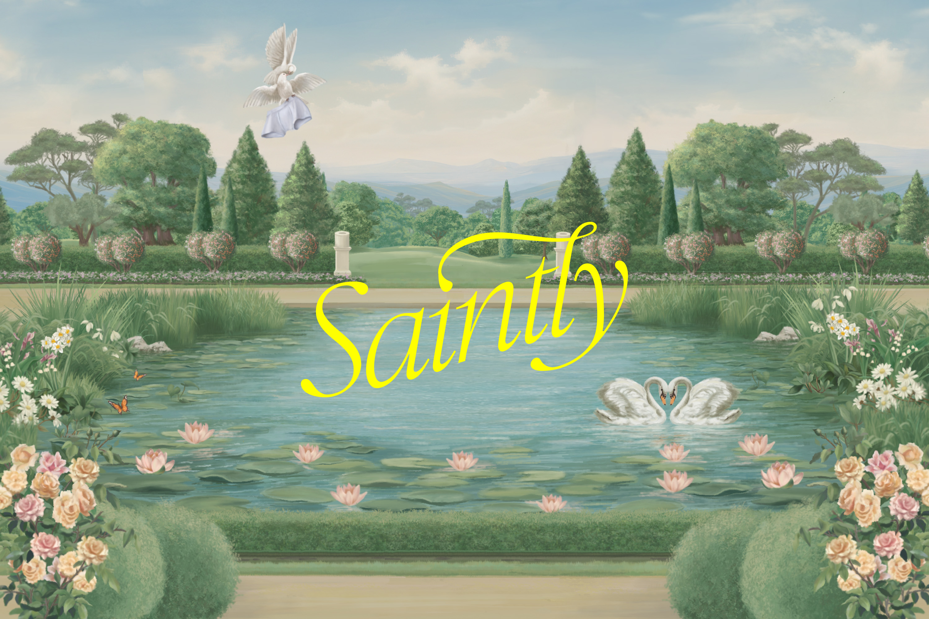 The Saintly typography system builds upon Romie, a contemporary take on a classic serif, featuring elegant glyphs and flourishes that mimic hand-drawn calligraphy. Universal Favourite expanded on this concept through typographic layouts that emphasise graceful, flowing forms, drawing inspiration from the rich history of Renaissance Italian printing presses. The supporting typeface is GT Pressura Mono.