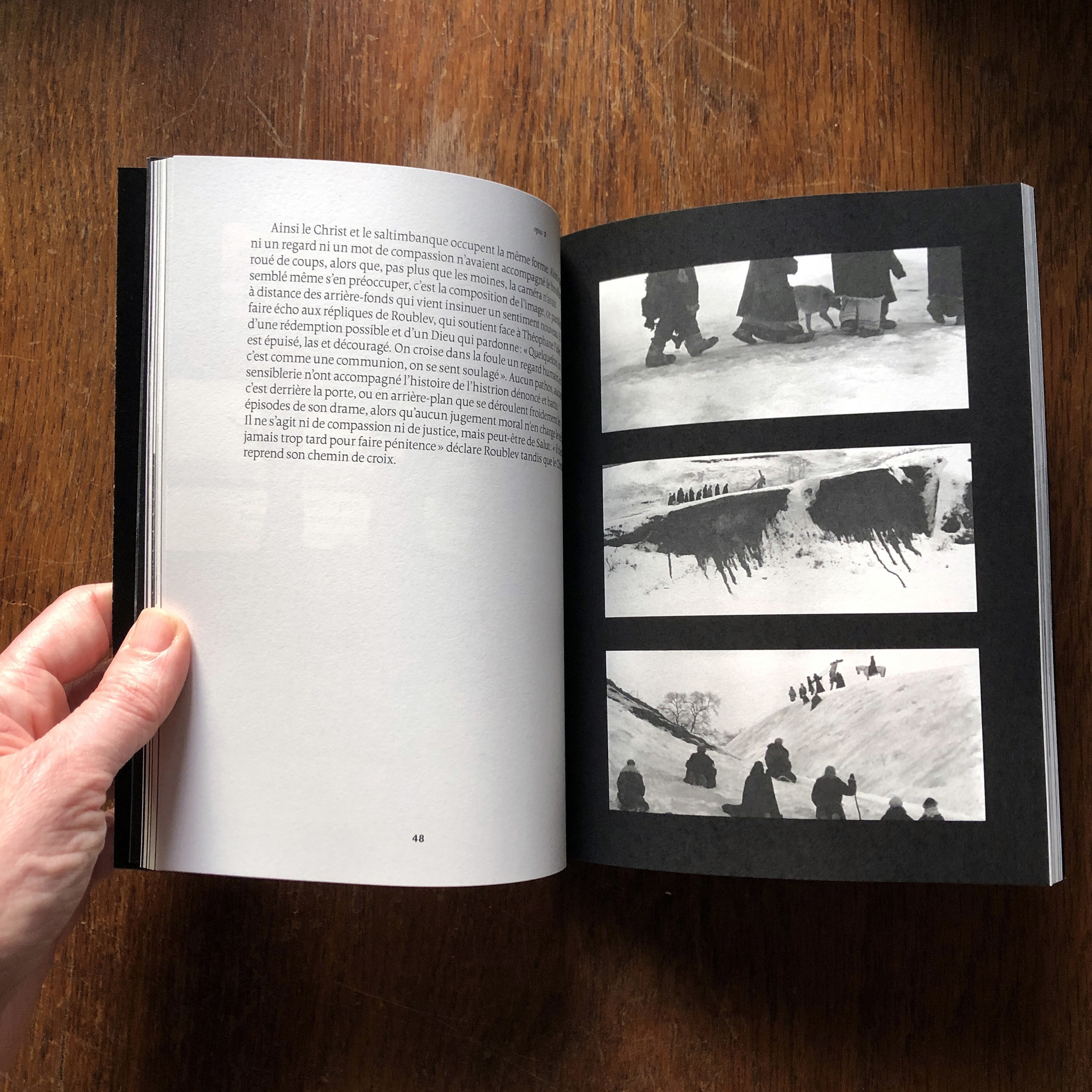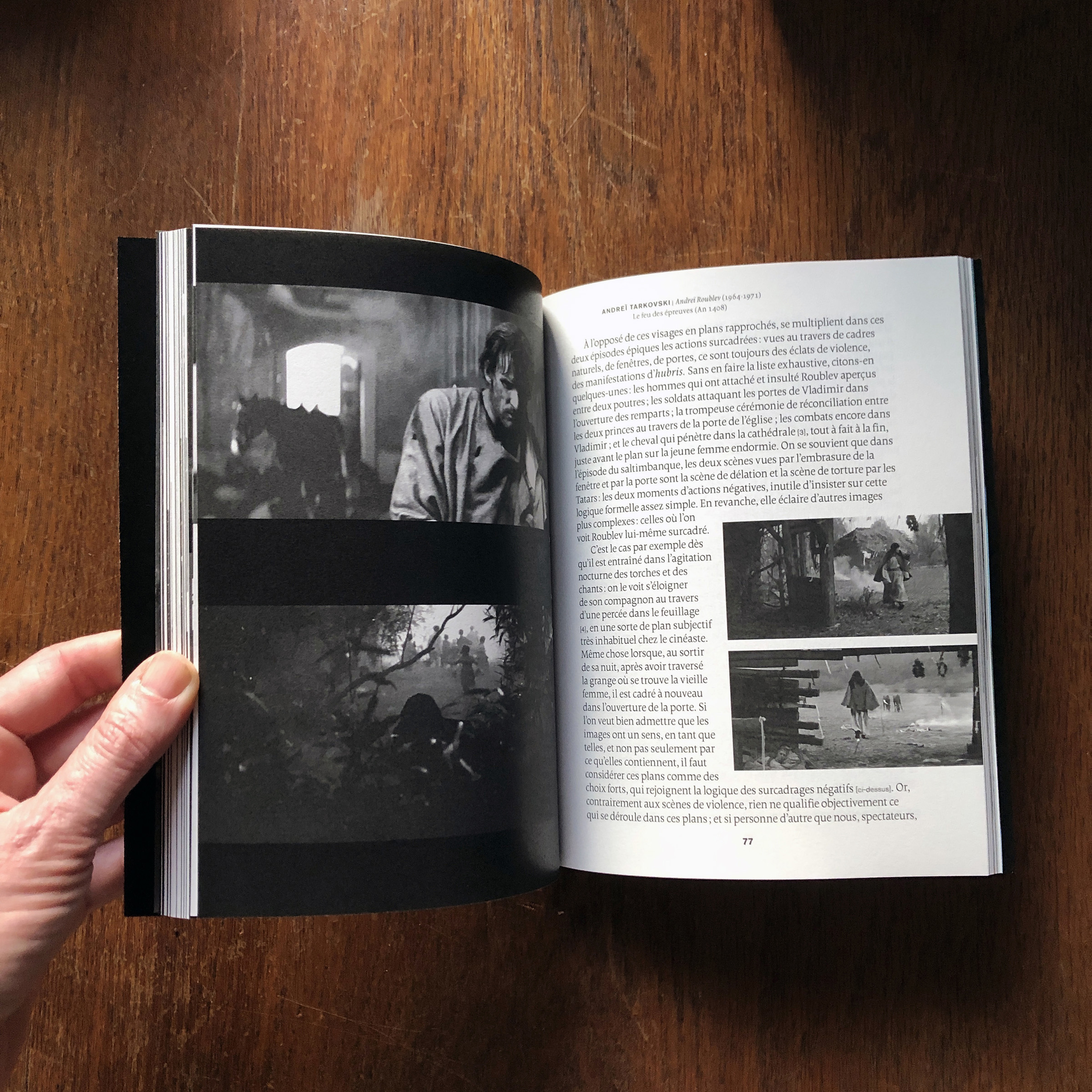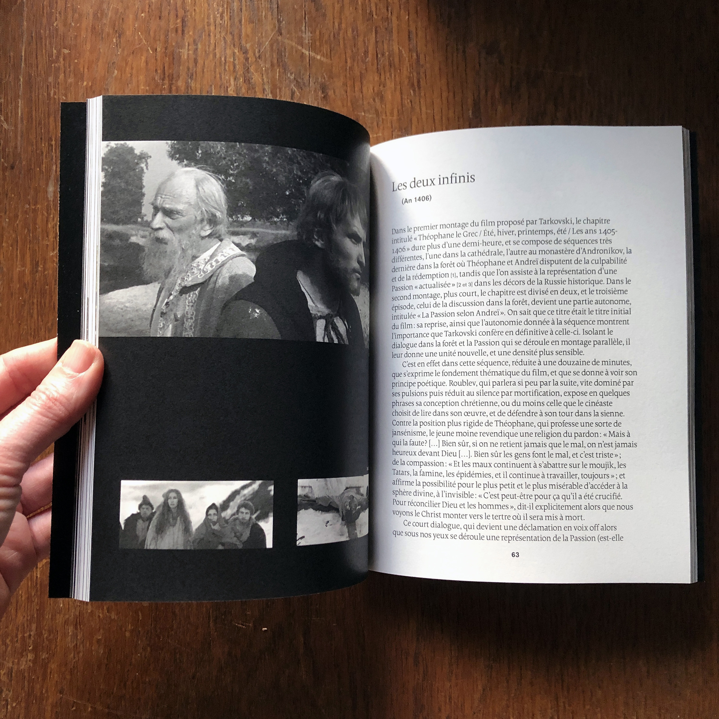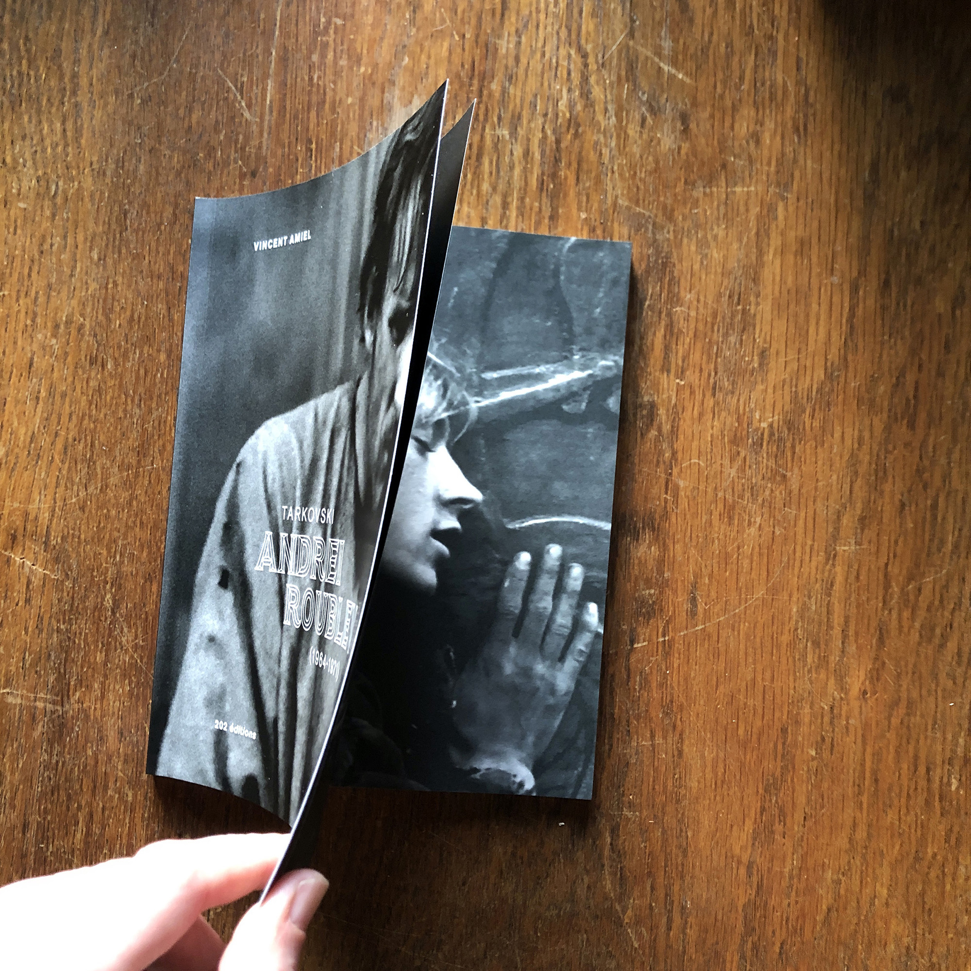 This book written by Vincent Ariel and published by the Paris-based publisher 202 éditions is about the film Andrei Rublev, made in 1966 by the then still young film legend Andrei Tarkovsky. Designer Paule Palacios-Dalens used Borges (by Loche, PampaType) for all main texts and titles, and Akzidenz-Grotesk (Berthold, 1898) for pagination and some subtitles. The cover titling is set in Bite Hard Wire (by Gleb Guralnyk).