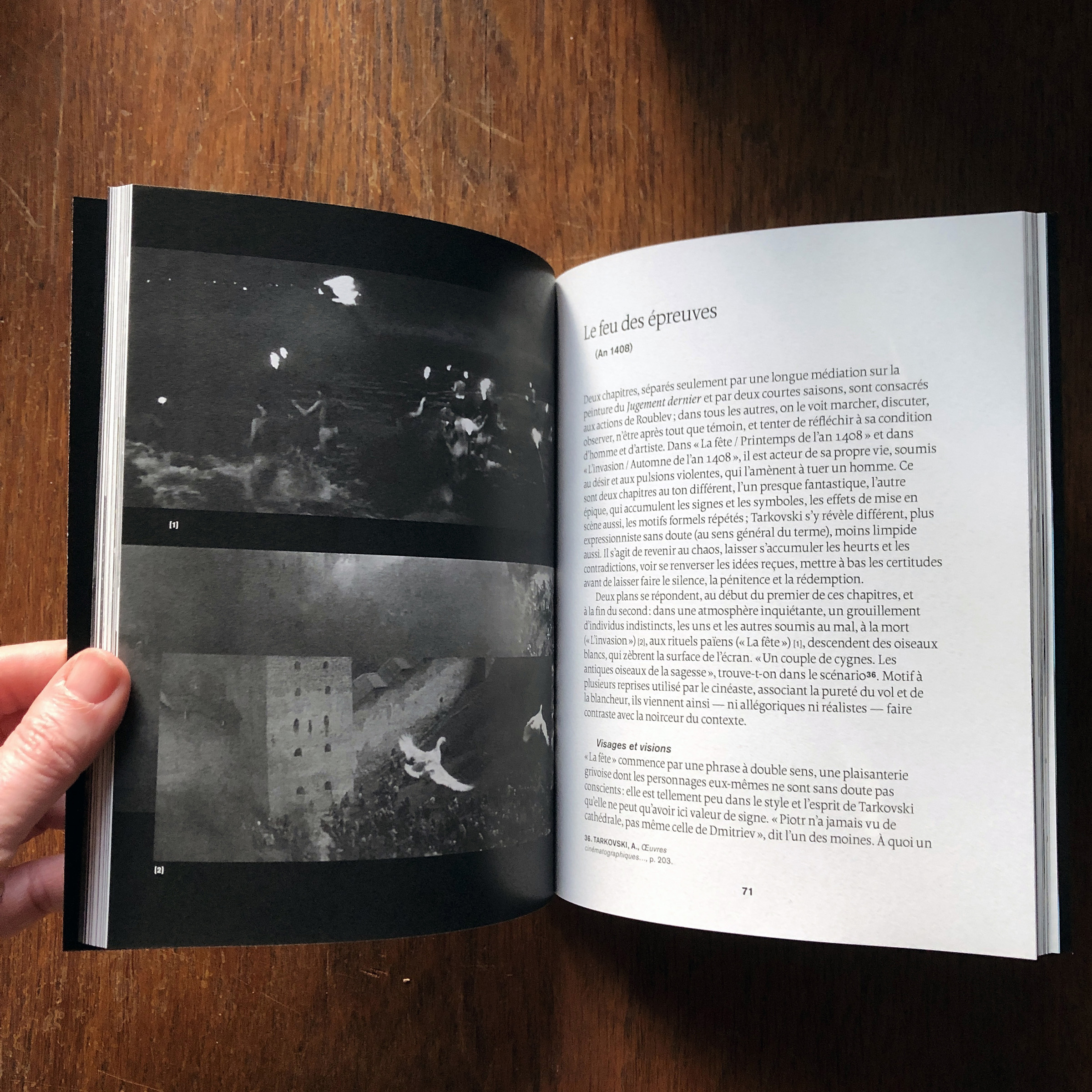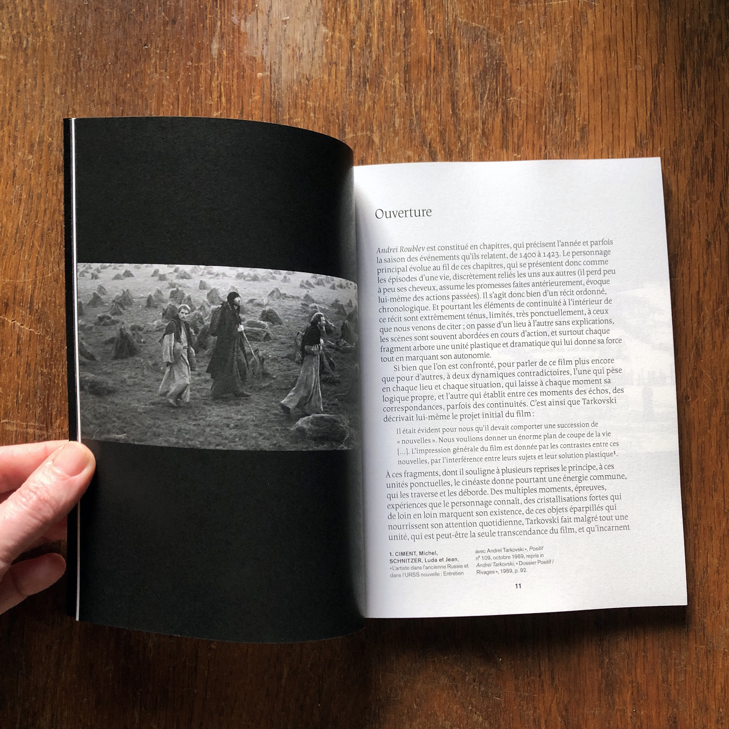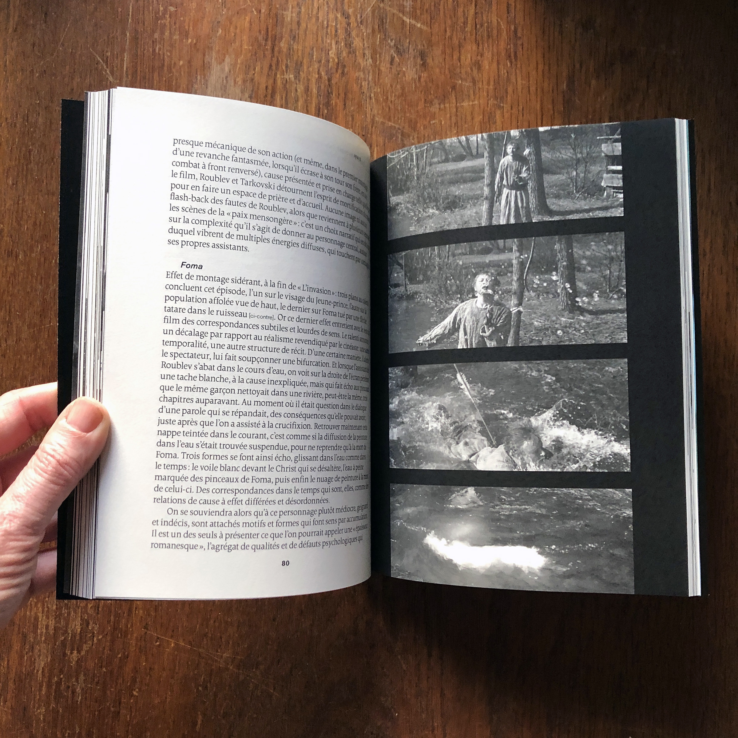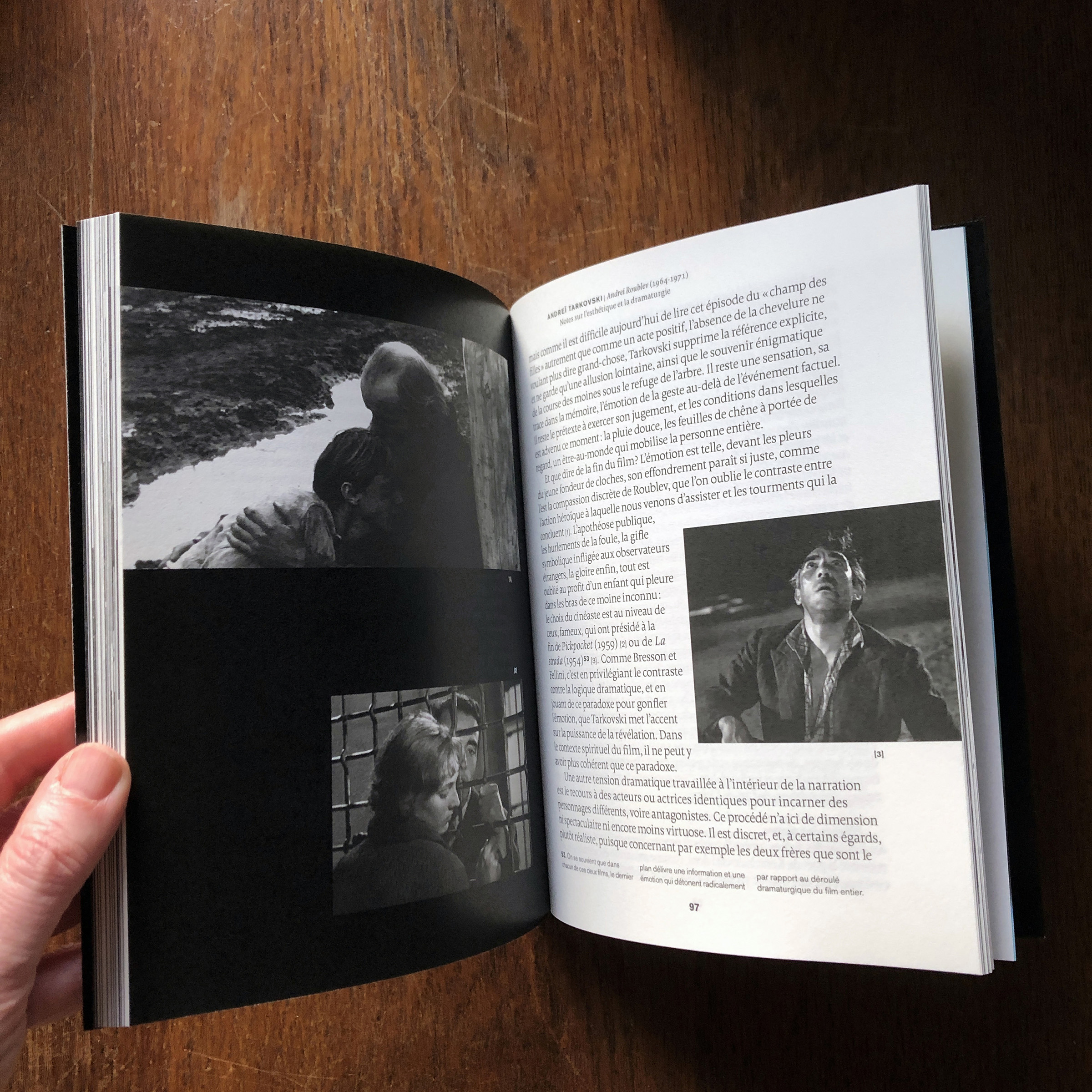 This book written by Vincent Ariel and published by the Paris-based publisher 202 éditions is about the film Andrei Rublev, made in 1966 by the then still young film legend Andrei Tarkovsky. Designer Paule Palacios-Dalens used Borges (by Loche, PampaType) for all main texts and titles, and Akzidenz-Grotesk (Berthold, 1898) for pagination and some subtitles. The cover titling is set in Bite Hard Wire (by Gleb Guralnyk).