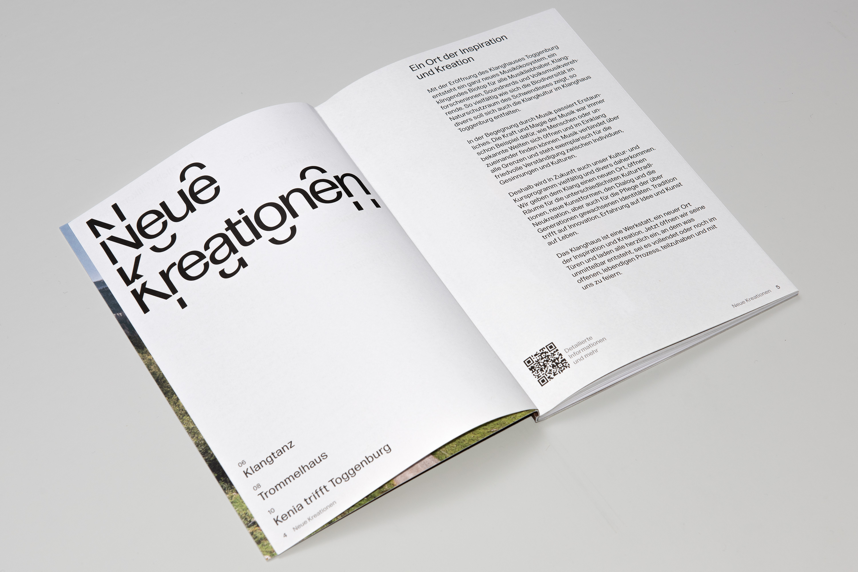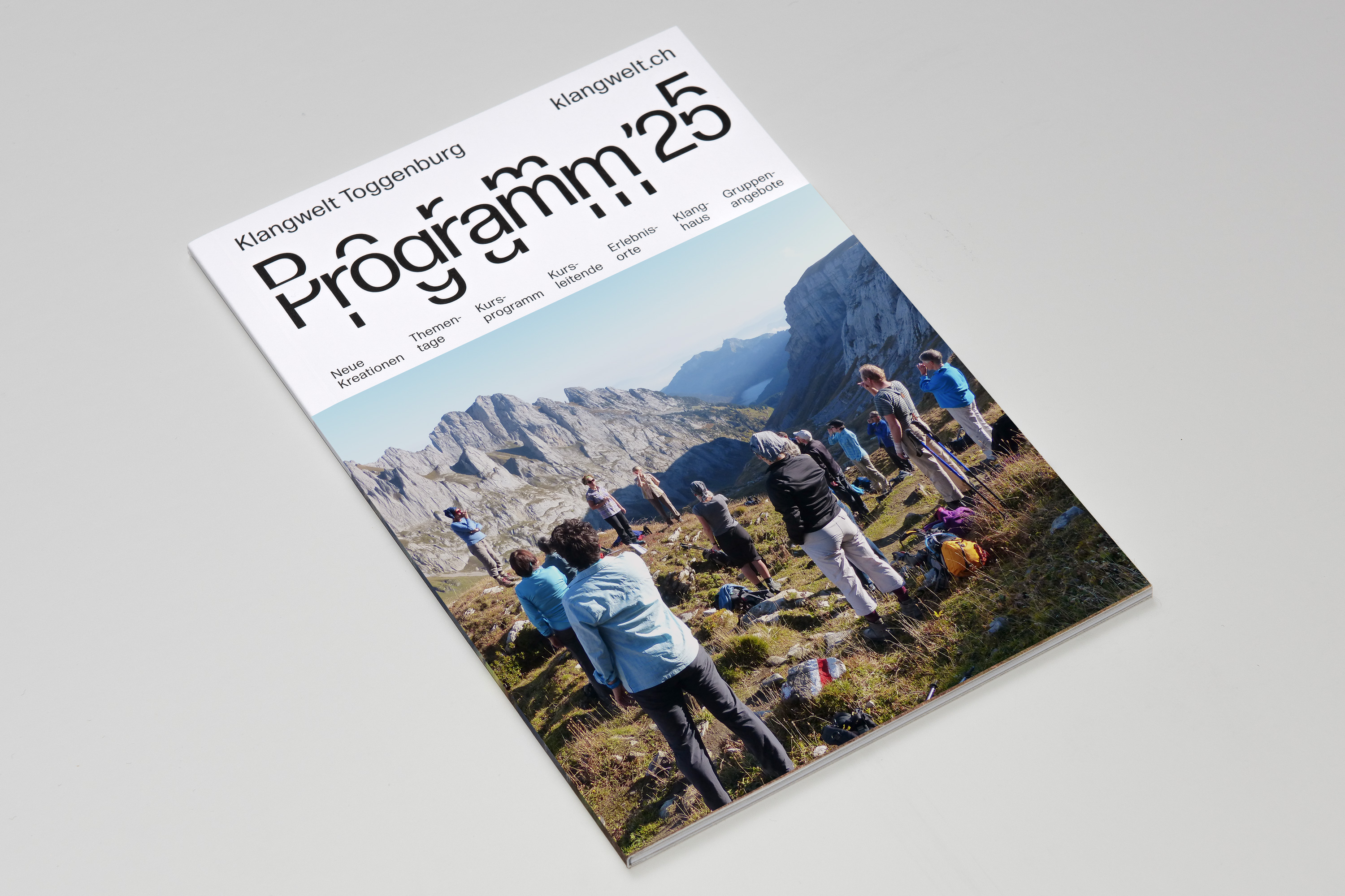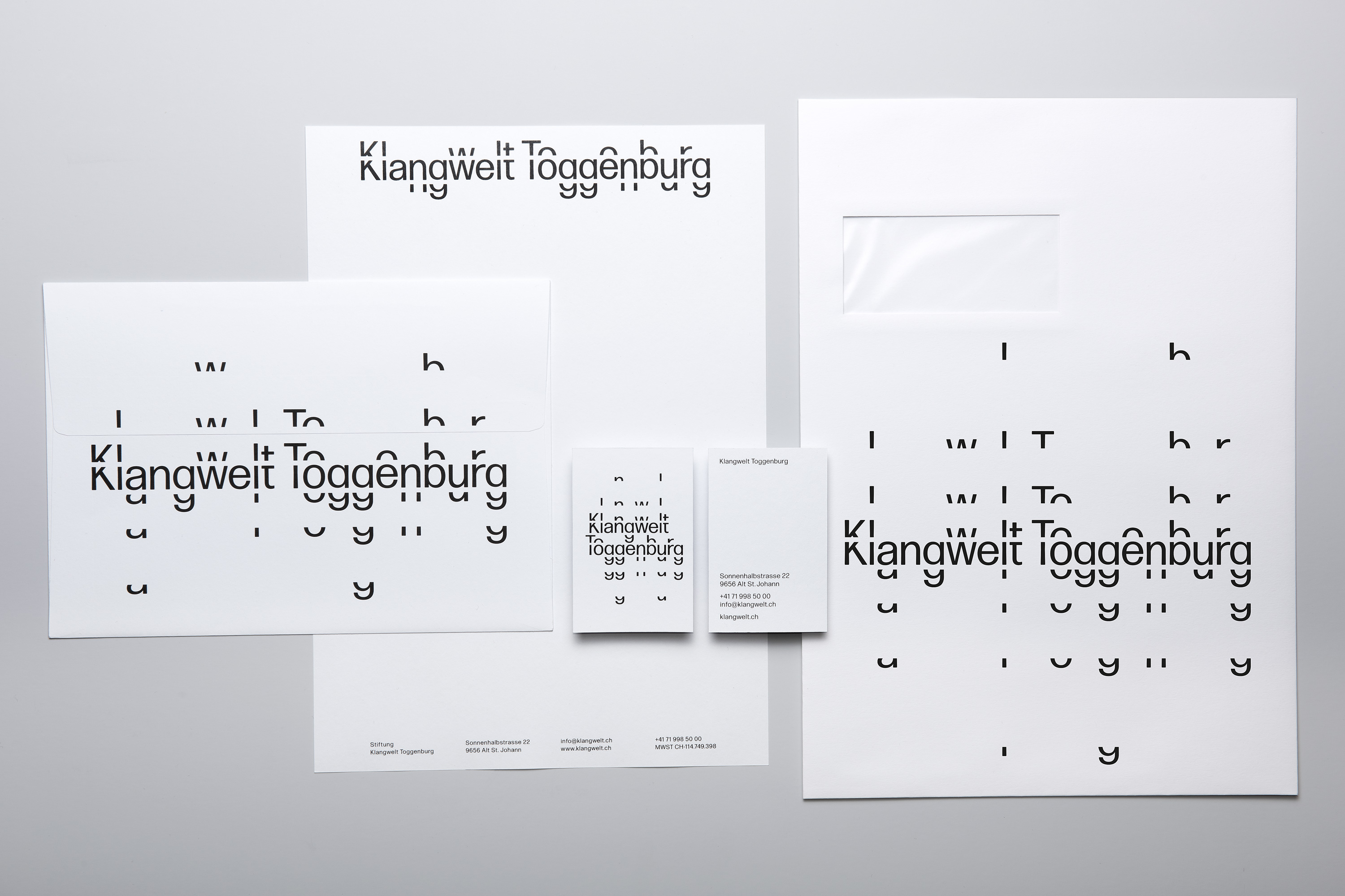 Studio Marcus Kraft accompanied the rebranding process for three years and developed a visual identity that conveys the complexity of the Klangwelt Toggenburg. The centerpiece is a tailor-made dynamic corporate typeface that can be modularly expanded using recurring letter elements – creating a typographic resonance inspired by overtones, sound frequencies and the mountains and valleys of the alpine landscape.