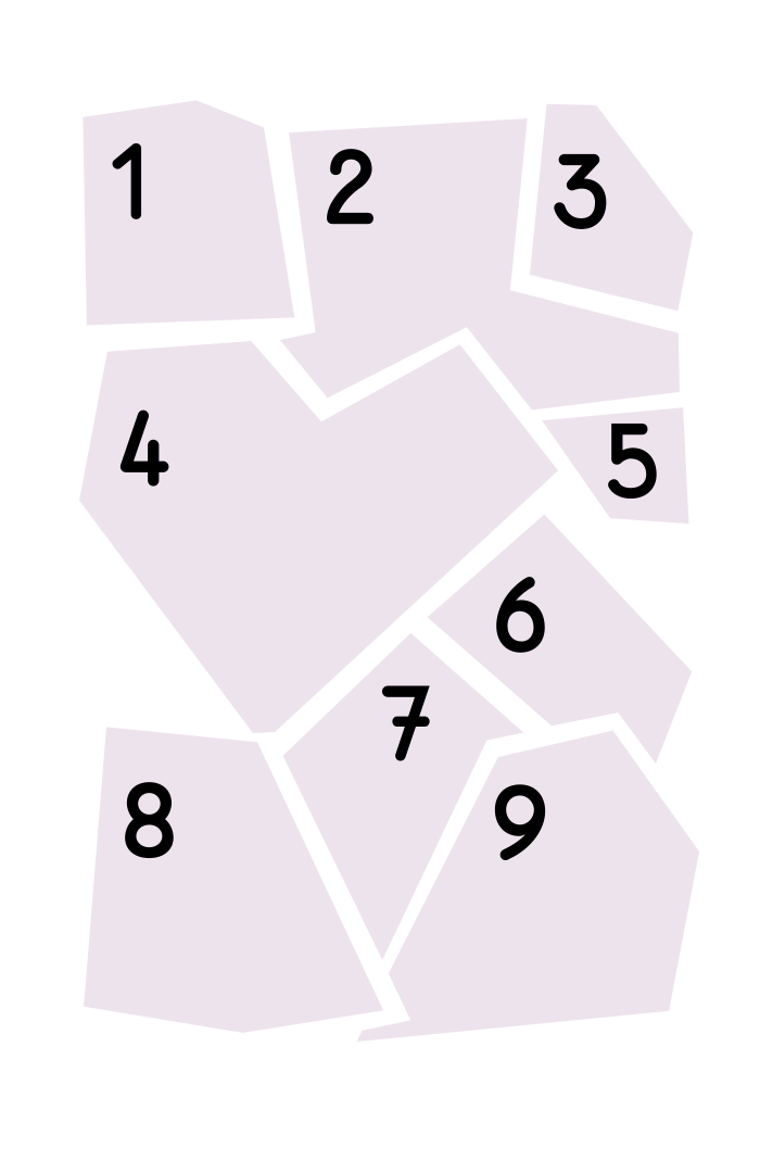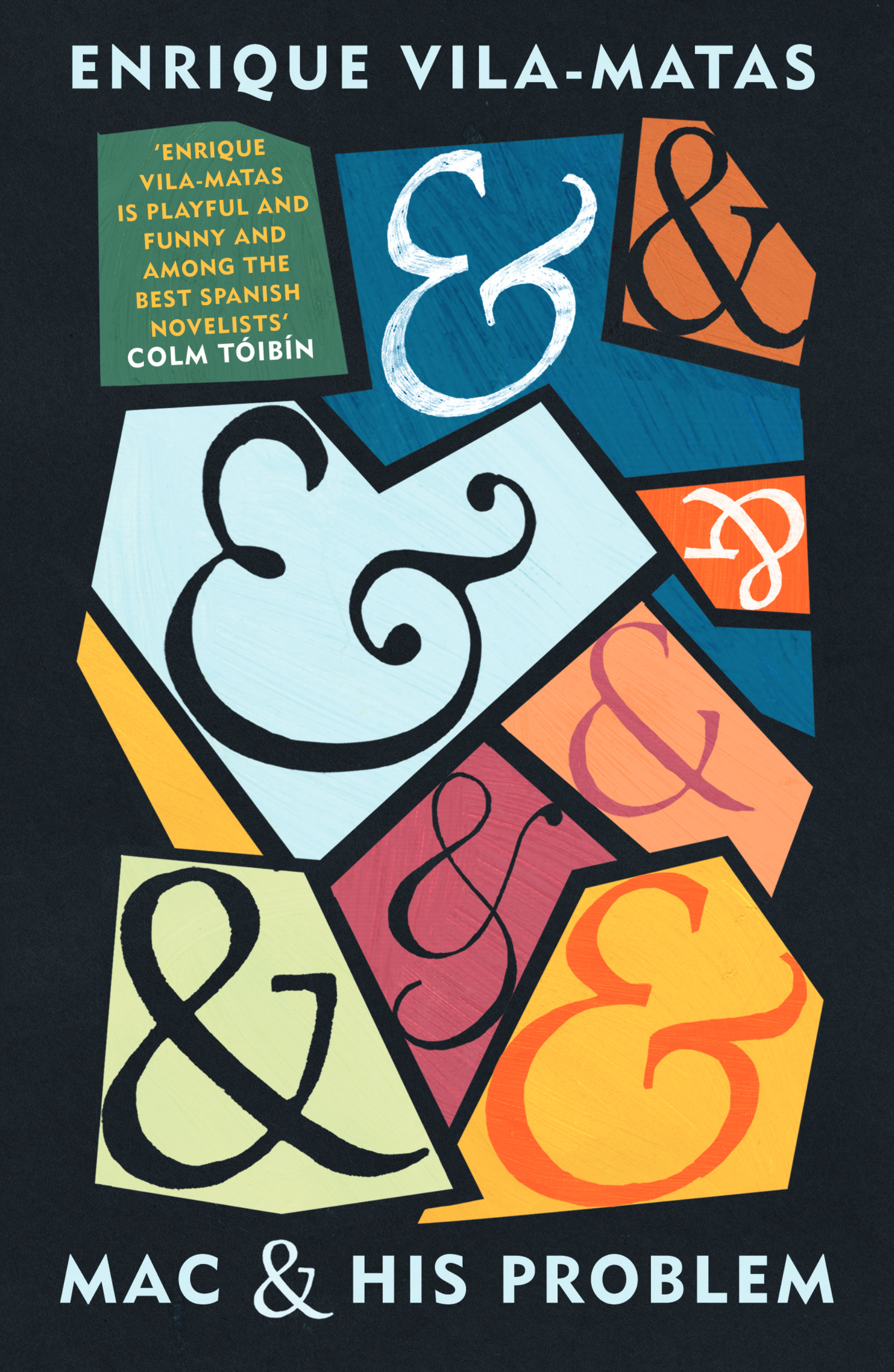 A bunch of ampersands for the cover of Mac & His Problem from “one of the most prominent writers in the Spanish language” [Wikipedia], Enrique Vila–Matas. Fragmented coloured blocks loosely joined nearly cover the cover, and most of the blocks feature a hand-drawn ampersand. Although hand-drawn, most or all of them seem to follow a pre-made font. Using the numbered key (image below):