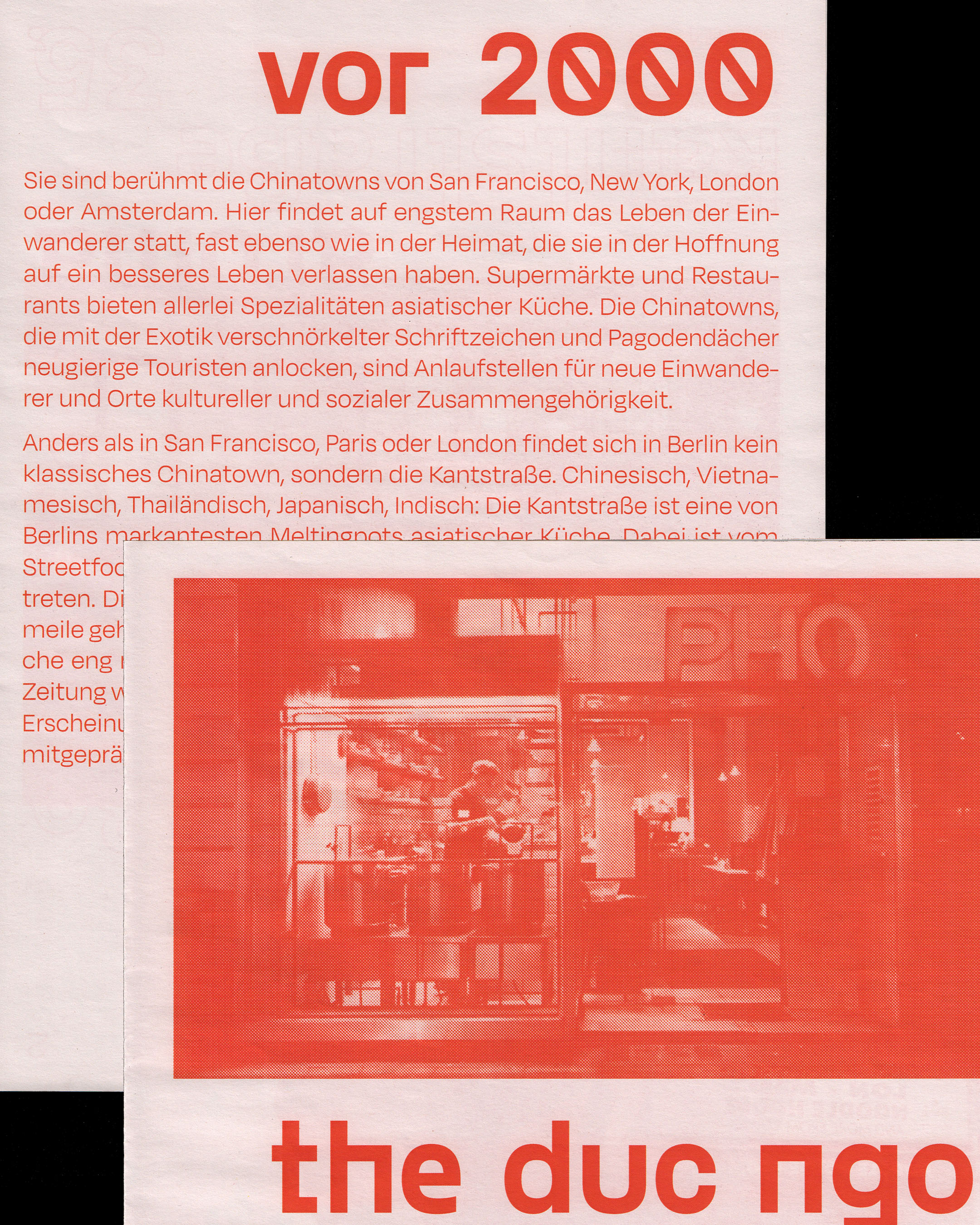 Unbeknownst to most Berliners, Kantstraße’s status as Berlin’s Little Chinatown dates back more than a hundred years. This self-published newspaper tells the story of the first Chinese students settling in the area, the famous celebrity hot-spot Asian restaurants of the 1960s, and the diverse restaurant culture it features today.
