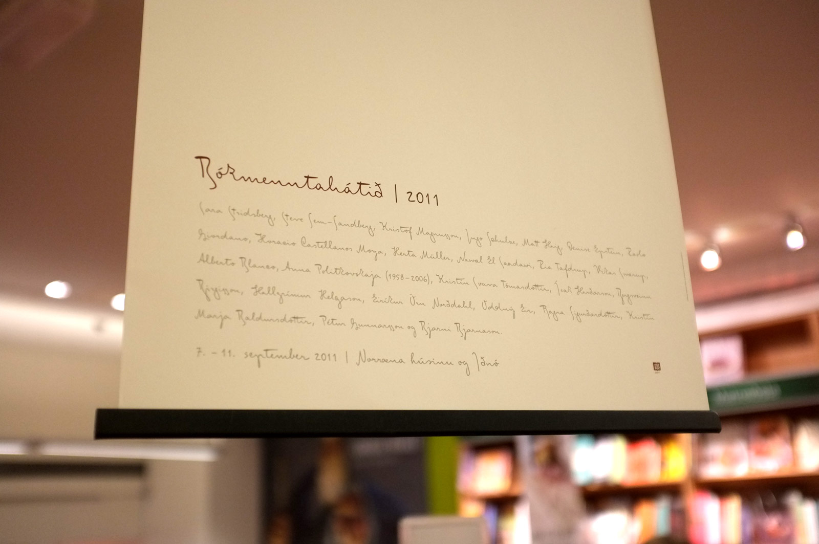 Bókmenntahátíð Photo(s) by FontFont. Imported from Flickr on Jul 24, 2012. Artwork published in 2011. Source: www.flickr.com Uploaded to Flickr by FSI FontShop International and tagged with “misterk” and “ffmisterk”. License: CC BY-NC. Bókmenntahátíð is the Reykjavík International Literary Festival Typefaces More about FF Mister KGet FF Mister K Formats Posters/Flyers (5826) Topics Event (3259) Literature (3058) Tagged withIcelandic (language) (39)cultural festivals (135) Artwork location Iceland (61) Reykjavík (43) Post a comment Name Email – will not be published Website Your response Submit Comment More FF Mister K in use Moi Helsinki2015Contributed by Tuomo Metso Staff Pick Jim Goldberg poster2013Jessica SvendsenContributed by Nick Sherman Staff Pick Hand-drawn posters featuring FontFonts2013FontShop InternationalLaura SerraContributed by Fonts In Use Staff Sponsor More in Literature Čovječuljci / Tiny peopleand Zvijezda koja čita / The Reading Starby Ula Reić2019Petar ReićIvana RadićRina BarbarićContributed by Vanja Andric Imman. Joh. Gerh. Schellers ausführliche lateinische Sprachlehre oder sogenannte Grammatik1782unknownCaspar FritschContributed by Rodrigo Knoflíková Pohádka (Button Tales)1974Contributed by Nick Sherman Les voies du paradis by Peter Cornell2023Olivier LebrunContributed by Abyme Staff Pick More in Posters/Flyers HKS Colourmatch 262016CLMNZClemens HartmannContributed by Clemens Hartmann Transmission poster2023Mikhail LychkovskiyContributed by mikhail lychkovskiy Bad Feeling2019Marie ChénierContributed by Marie Chénier Lisbon Art Weekend2019DesistoContributed by WELTKERN® Typefaces More Fonts In Use Blessings Thanksgiving Eve ’95 flyer1995GCG. Inc./NadiscoThird Eye InnovationsContributed by Jay W. Mellor (JWM) Staff Pick Kleding Maken – De makkelijke handleiding voor Zelfmaakmode1978Henriëtte BeukersHenk BeukersHaico BeukersContributed by Matthijs Sluiter Blog Black-Draught / Cardui tape measurec. 1920Photo(s) by Stephen Coles on Flickr. Staff Pick The Trojan War by Thomas Bulfinch (Kurt H. Volk)1957Kurt H. VolkMeyer WagmanContributed by Florian Hardwig Staff Pick