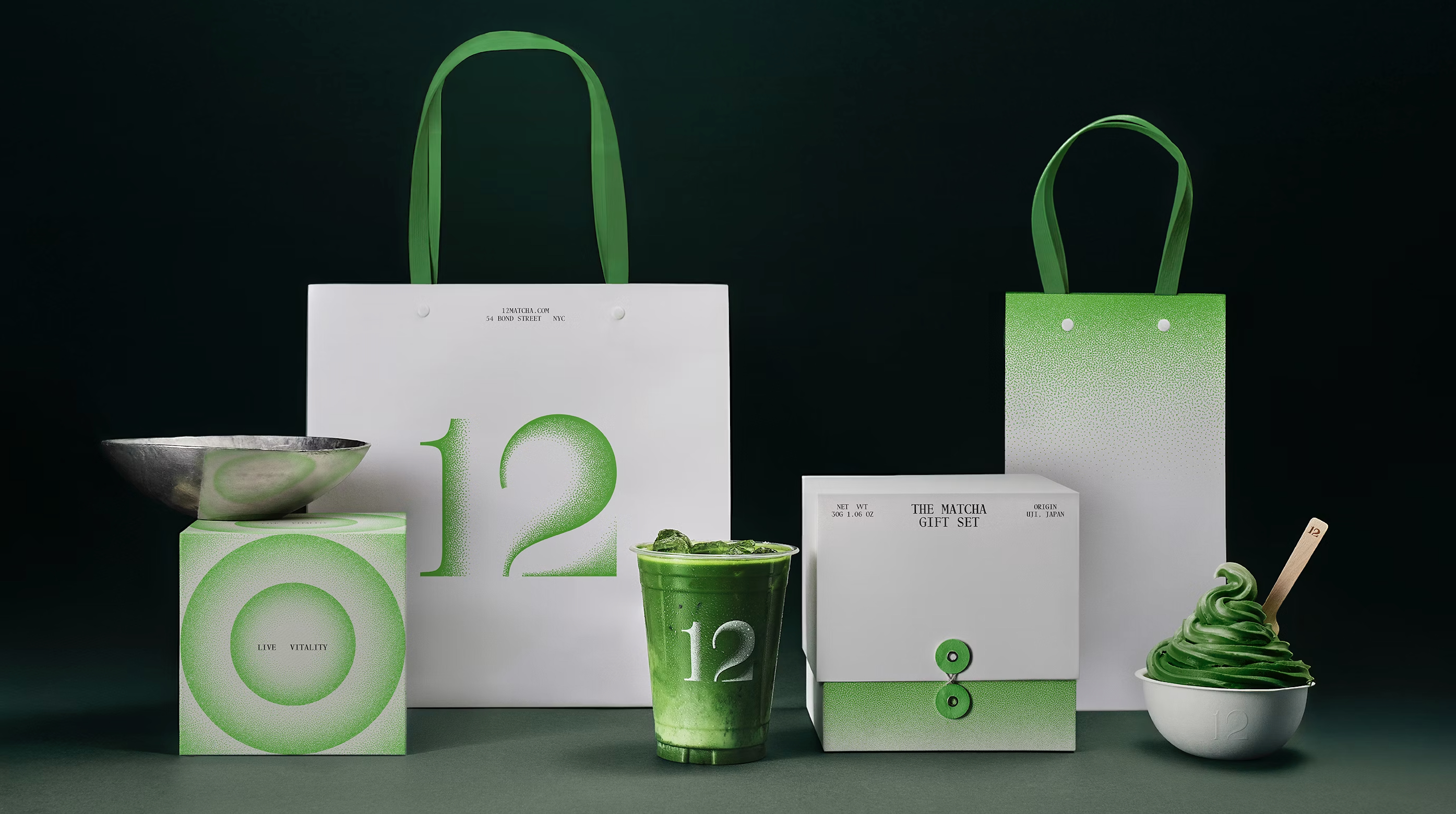 Visually, BaseNYC took a bold approach—leaning fully into green as a symbol of vitality and serenity. The identity bursts into mini-particles, capturing the multifaceted sensations of drinking matcha and giving the brand a dynamic range of moods and moments. 12 is a brand that isn’t just seen or tasted—it’s felt. It’s a return to craft, mastery, and a deeper connection between tradition and the present—shaping a memorable and contemporary brand.