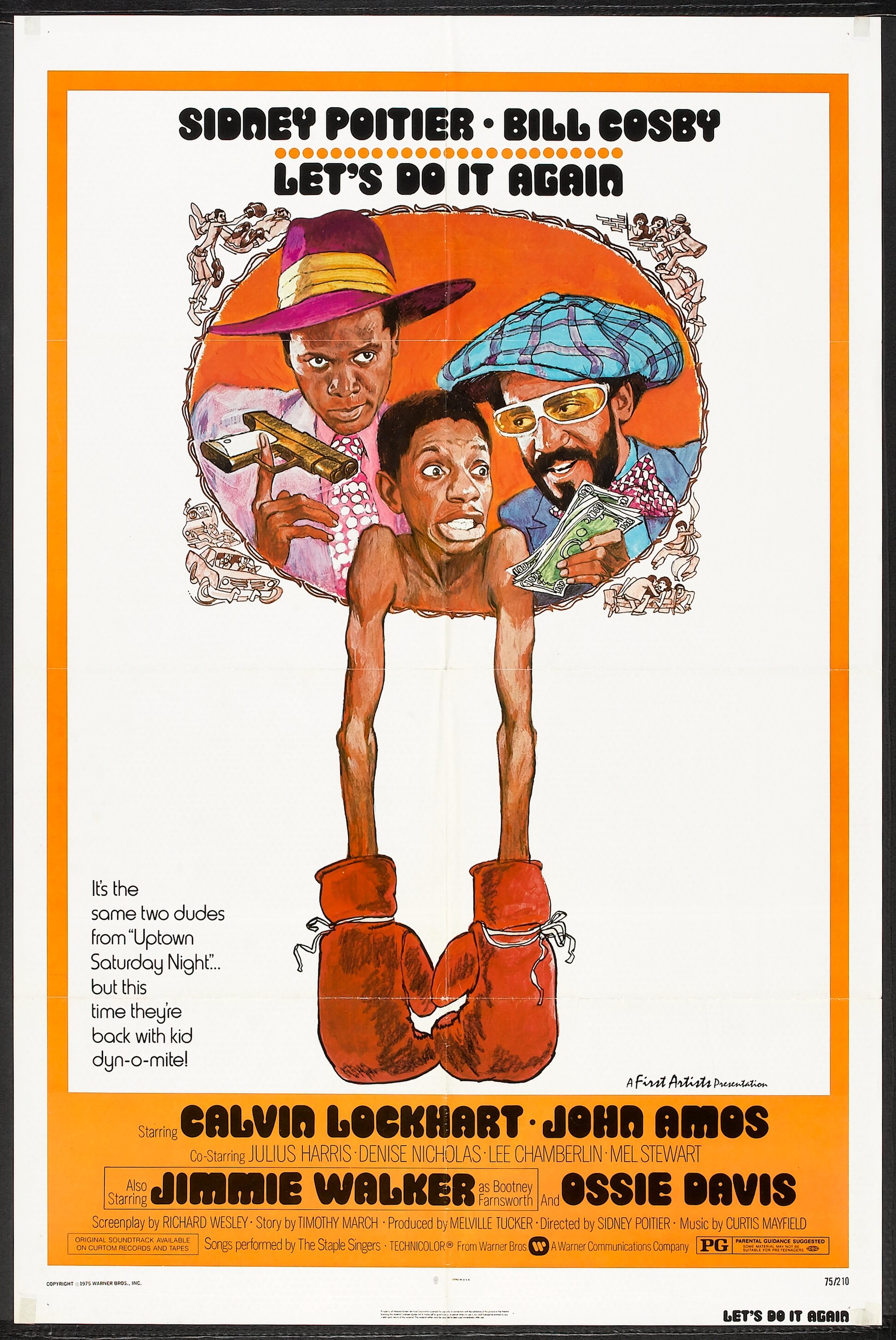 Let’s Do It Again is a 1975 American action crime comedy film, starring Sidney Poitier and co-starring Bill Cosby and Jimmie Walker among an all-star black cast. The film, directed by Poitier, is about blue-collar workers who decide to rig a boxing match to raise money for their fraternal lodge.
