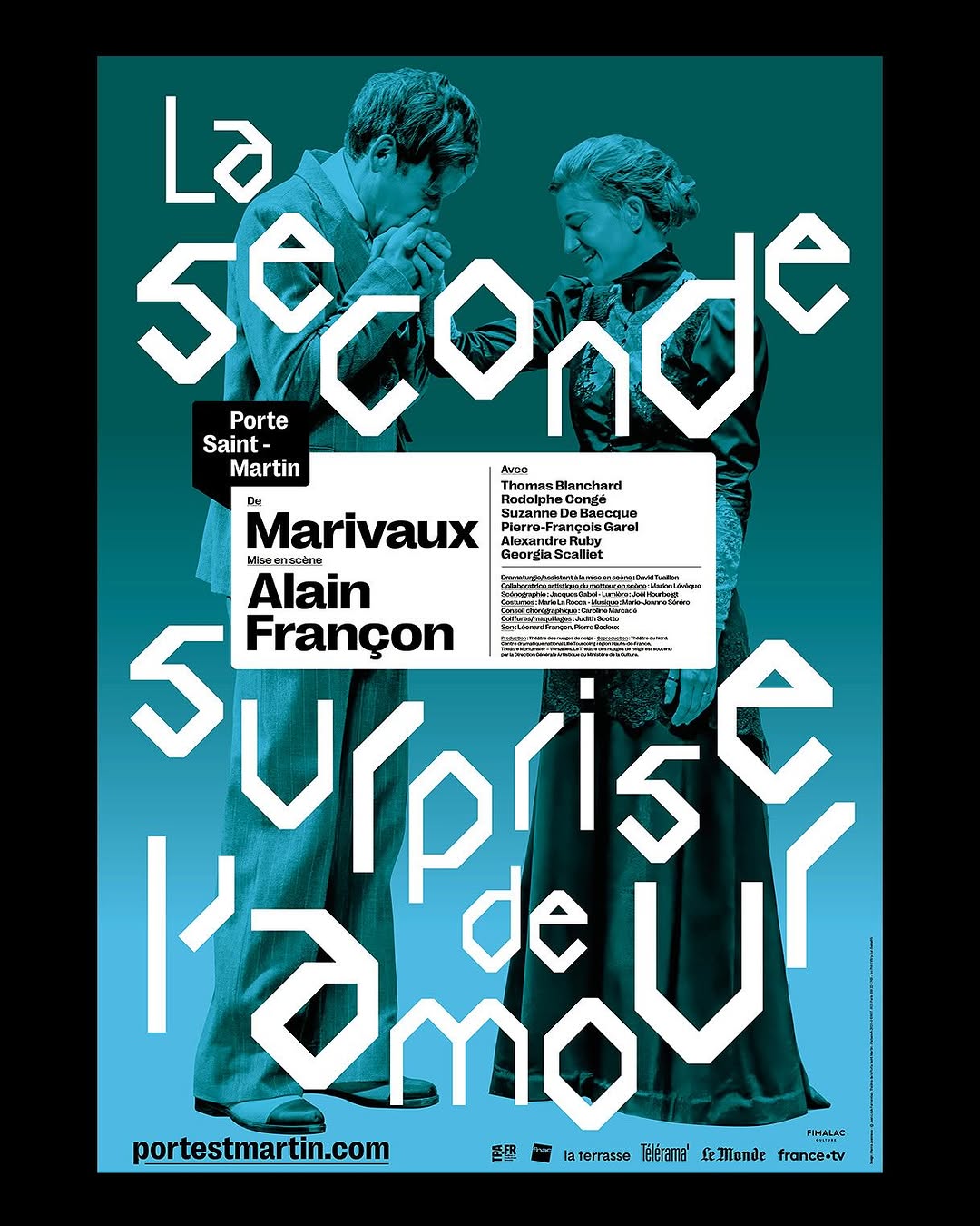Marivaux at Théâtre de la Porte Saint-Martin posters Contributed by Benoît Bodhuin on May 19th, 2025. Artwork published in 2025. Source: www.instagram.com Pierre Jeanneau. License: All Rights Reserved. Posters for two plays by Marivaux at the Théâtre de la Porte Saint-Martin: Les fausses confidences and La seconde surprise de l’amour, directed by Alain Françon. Design by Pierre Jeanneau, using Tokyto by Benoît Bodhuin and Right Grotesk byPangram Pangram. Source: www.instagram.com Pierre Jeanneau. License: All Rights Reserved. Source: www.instagram.com Pierre Jeanneau. License: All Rights Reserved. Typefaces More about TokytoGet TokytoMore about Right GroteskGet Right Grotesk Formats Posters/Flyers (5750) Topics Performing Arts (990) Designers/Agencies Pierre Jeanneau (14) Tagged withThéâtre de la Porte St Martin (6)Pierre de Marivaux (1)Alain Françon (1)plays (theater) (139)poster series (848)staircase glyphs (141)French (language) (2532)gradients (841)green and blue (134)type in a box (709)reversed type on an image (1219)reversed type (3376)multiple widths (560) Artwork location France (2834) Paris (1314) In SetsColors in Use (Encelado) (232)Kool Thing (Encelado) (78) Post a comment Name Email – will not be published Website Your response Submit Comment More Right Grotesk in use Easol website2020unknownContributed by Alex Slobzheninov Béton Le Havre 20232023Sometimes AlwaysContributed by Alex Slobzheninov Staff Pick Mob websitec. 2021Daniel HowellsContributed by Alex Slobzheninov Sponsor More in Performing Arts Beautiful Tragedies2018Amro El KafrawiContributed by 29LT Type Design Company OFFTA Festival d’arts vivants 20222022SupersystèmeContributed by Omnitype Staff Pick Laval Symphonic Orchestra 2017–18 Season2017FeedContributed by Philippe Dionne Bussières Regatta Competition2011Eva LindemanContributed by Stephen Coles More in Posters/Flyers A Smooth Transition Back from Isolation exhibition poster2021Thomas SturmLukas GecevičiusContributed by Thomas Sturm Königsblut identity2016Studio SoContributed by Studio So Murse & Camera Obscura2025Yitong HaContributed by Virgile Flores Staff Pick Stein X poster series2019Leo UreñaContributed by leo urena More Fonts In Use Loverdose by Edouard Bielle2023REQUINJiayi LiContributed by Margaux Vidrequin Staff Pick truth: “FinishIT” campaign201472andSunnyContributed by Stephen Coles Staff Pick Hollenstein 74 poster1974André ChanteHollenstein CréationContributed by Stephen Coles Staff Pick Grand Theft Auto cover art (PC)1997The Designers RepublicunknownContributed by Patrick Concannon Staff Pick