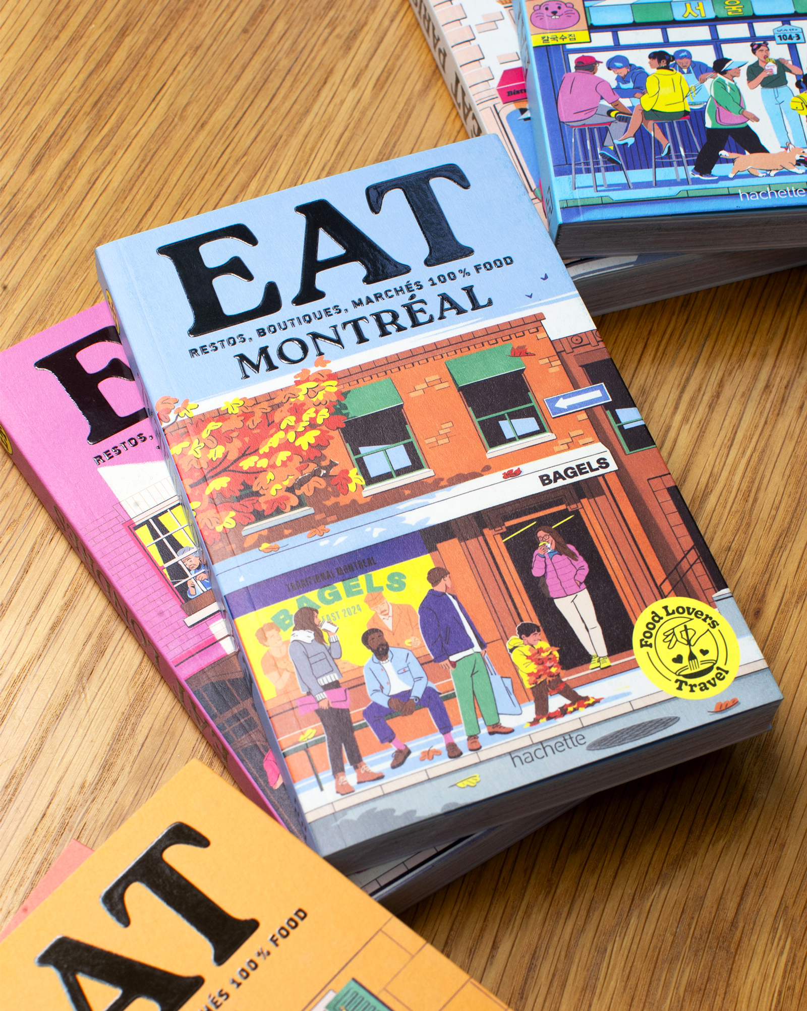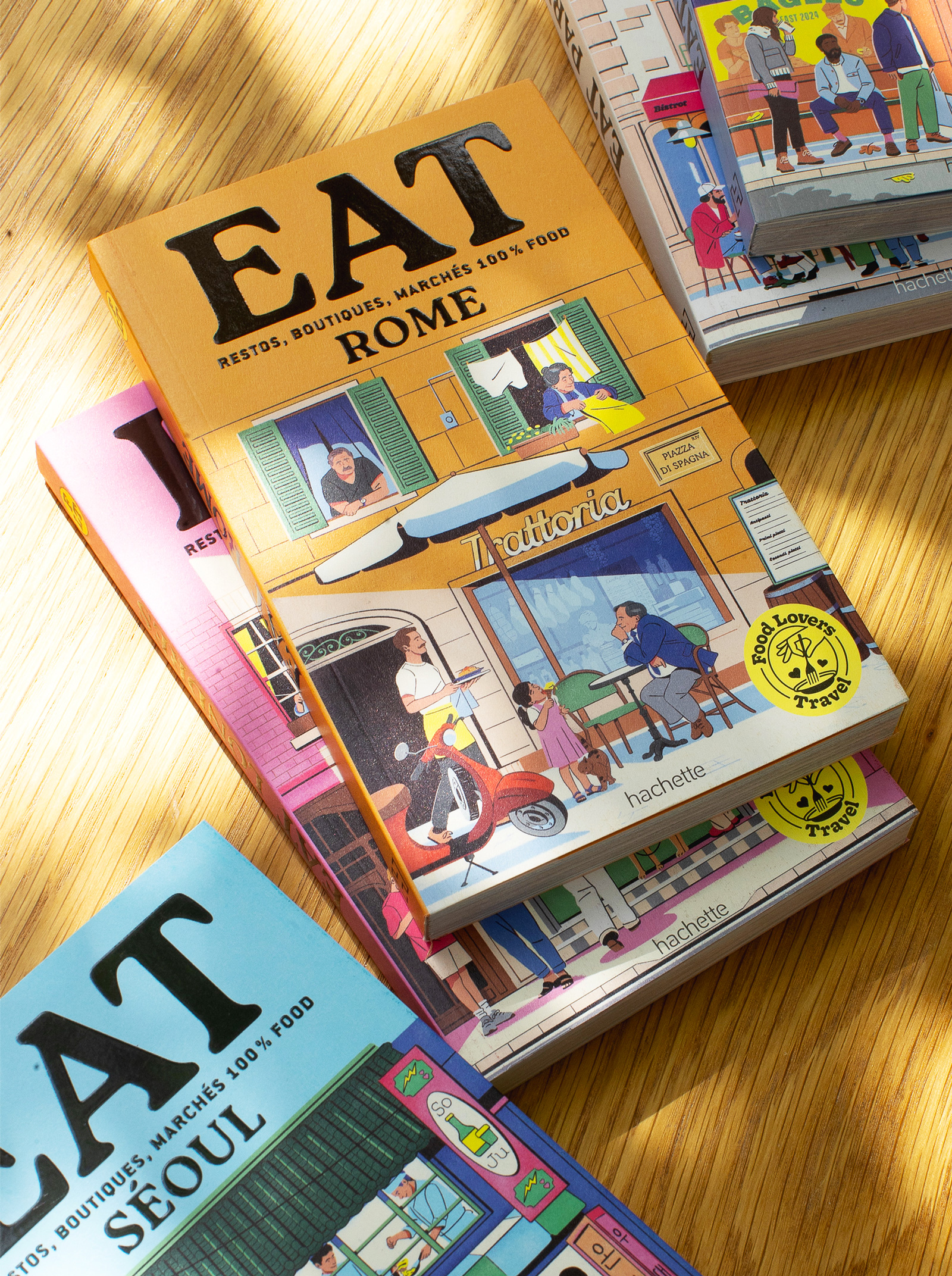 Hachette has launched Food Lovers Travel, a collection of travel guides dedicated to the best culinary spots worldwide. Fagostudio designed the covers for the first six books: Rome, Seoul, Paris, London, Montreal, and Amsterdam.
