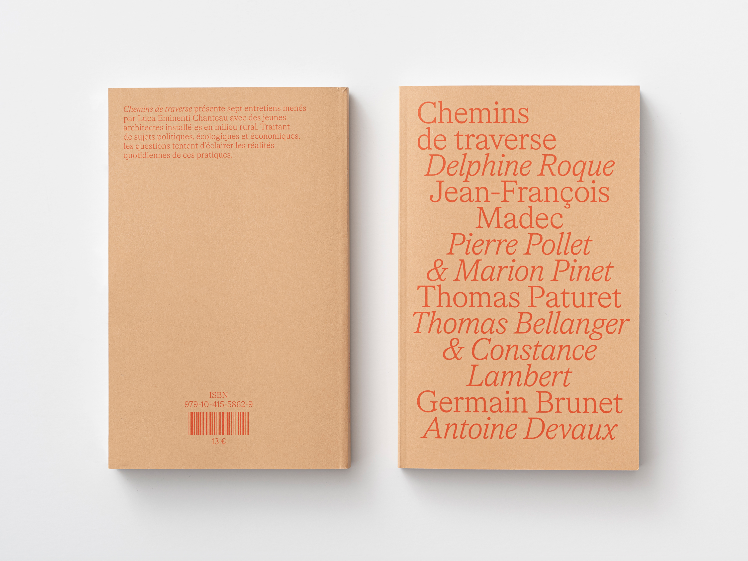 Chemins de traverse is a book by Luca Eminenti Chanteau presenting seven interviews he conducted with young French architects who chose to establish their practices in a rural environment. The book, in paperback format, transcribes their discussions.