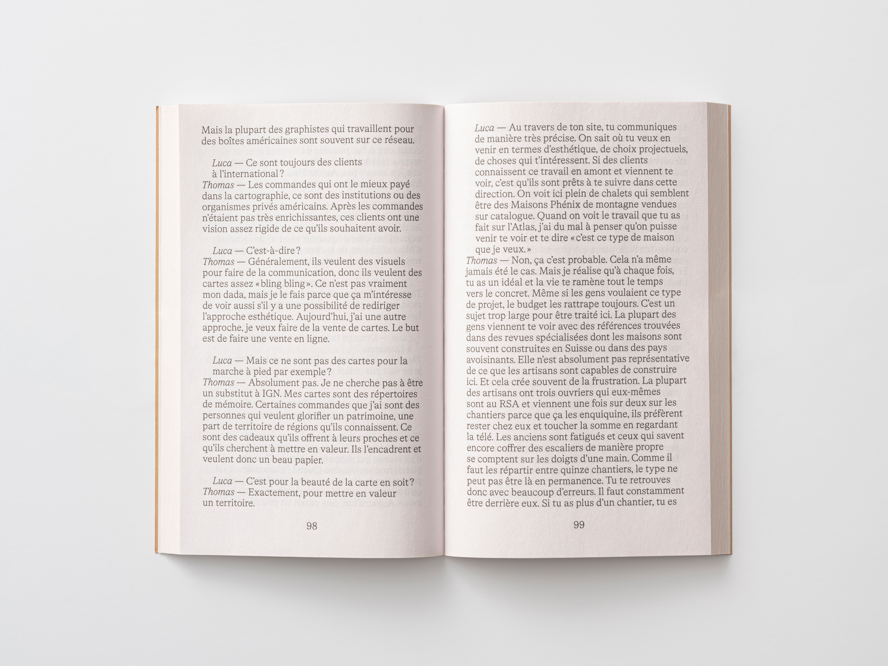 Emmanuel Besse did the design and used his own typeface Cedrat Text in Light and Bold (plus italics).