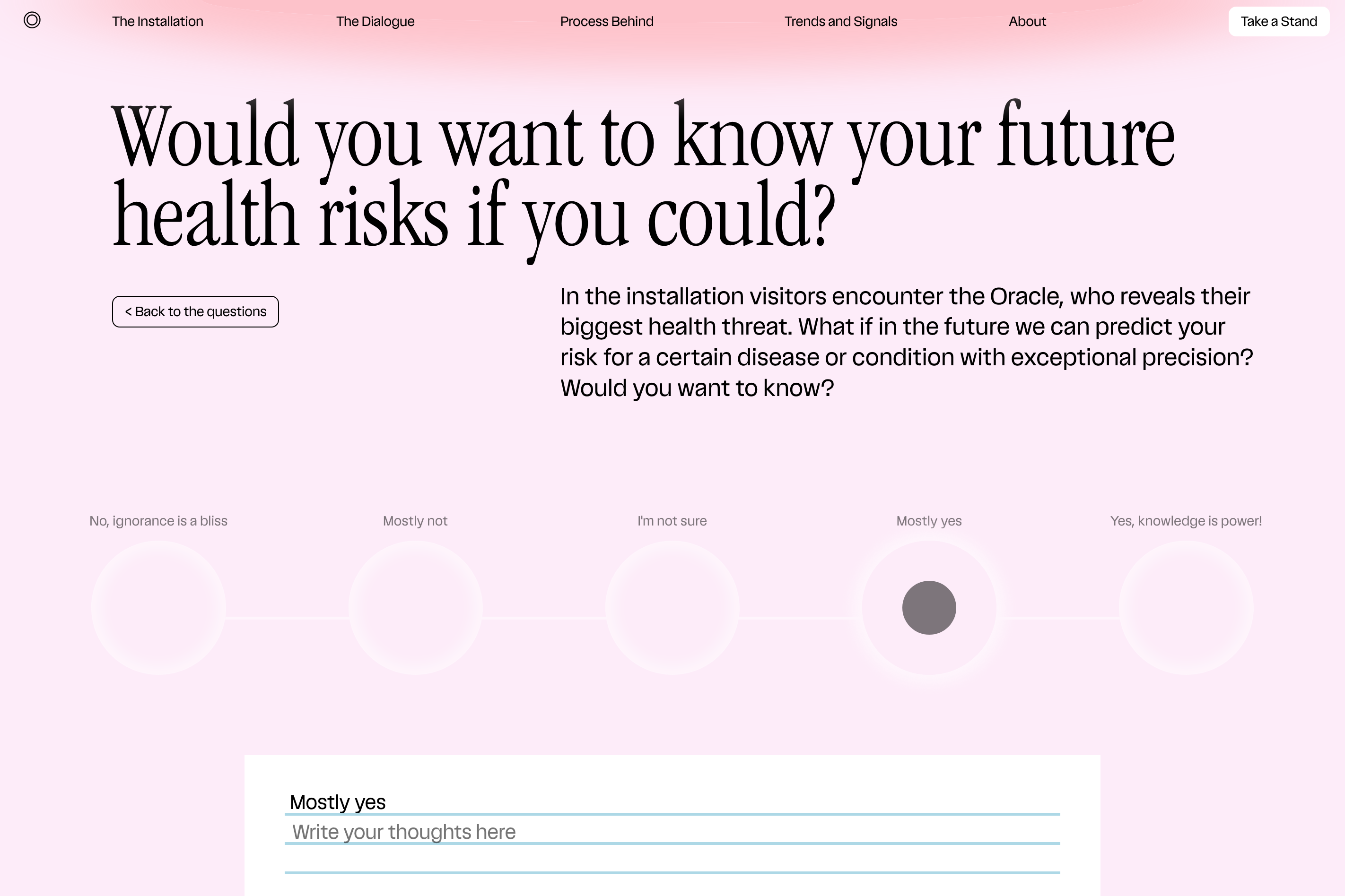 During this event, visitors were invited to experience a healthcare visit in the future and to contemplate the pros and cons of prediction and prevention.