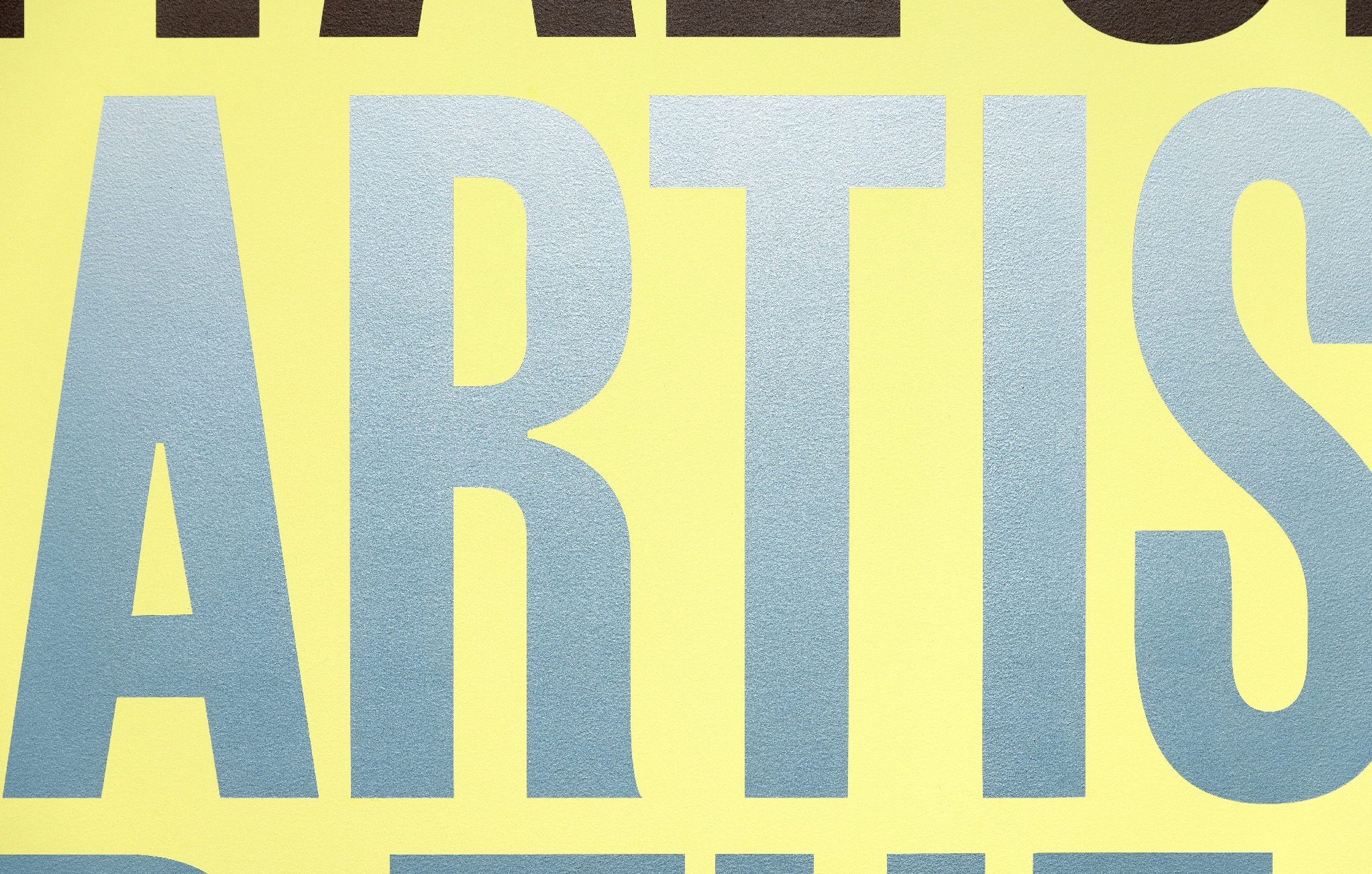 For the exhibition identity we wanted to create a feeling of energy and movement, and embody a design that was gender-expansive, bold and full of life. The entryway for the exhibition was painted in an active yellow with green undertones. The bright color made a statement—catching visitors’ attention and setting a mood when entering the space. The strong title was set in Girott and painted in two contrasting metallic colors, a warm deep brown and a silver-blue. We opted for metallic as this activated the type by making it responsive to the light in the space and to the position of the viewer, creating a feeling of constant movement. The texts throughout the exhibition were set in Jungka, a warm and rhythmical font that helped establish an inviting atmosphere for the exhibition.