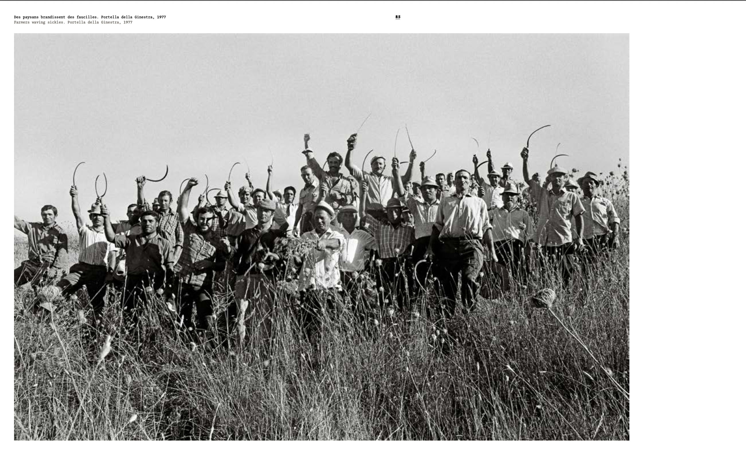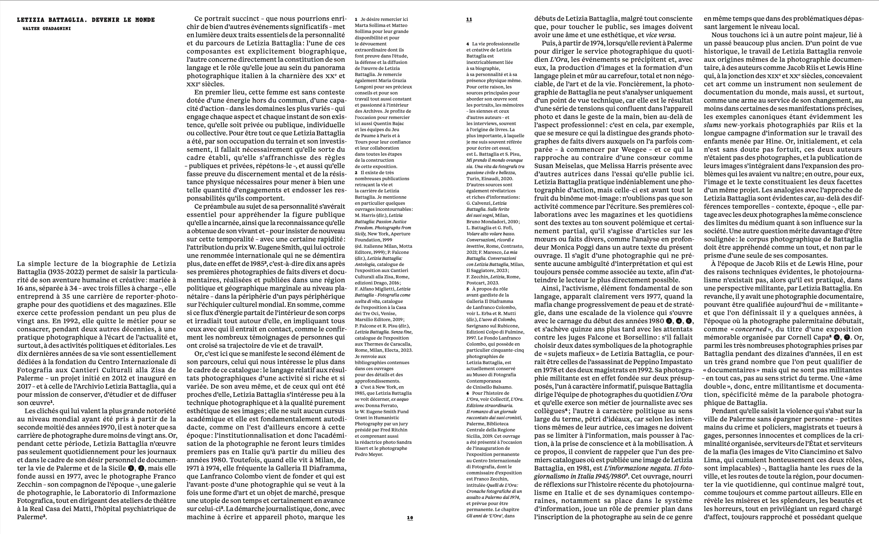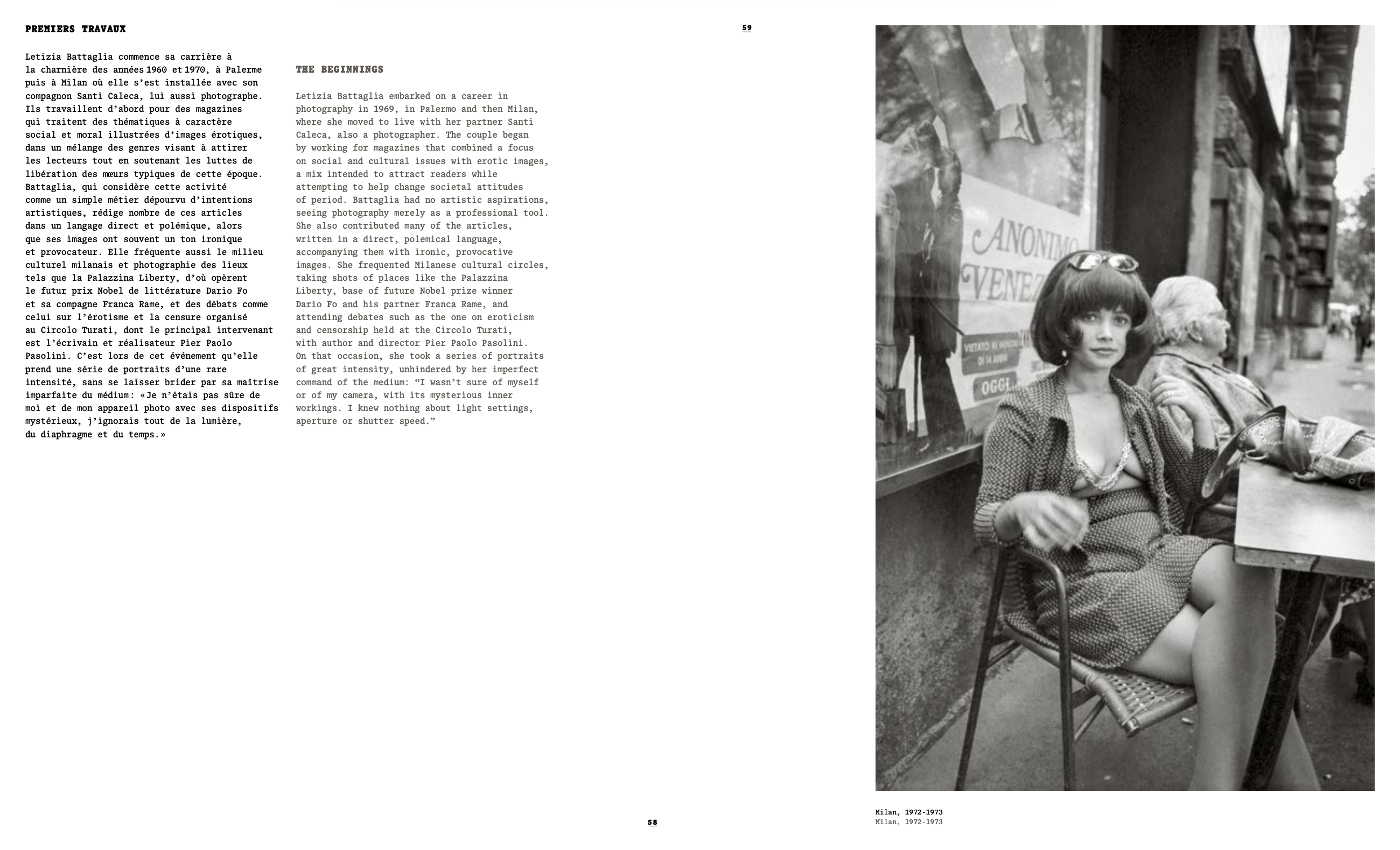 The exhibition catalog for Letizia Battaglia, created for her retrospective at Jeu de Paume, was designed by Line Celo. The layout reflects Battaglia’s direct and uncompromising documentary style, known for its powerful images of Sicilian life and the Mafia.