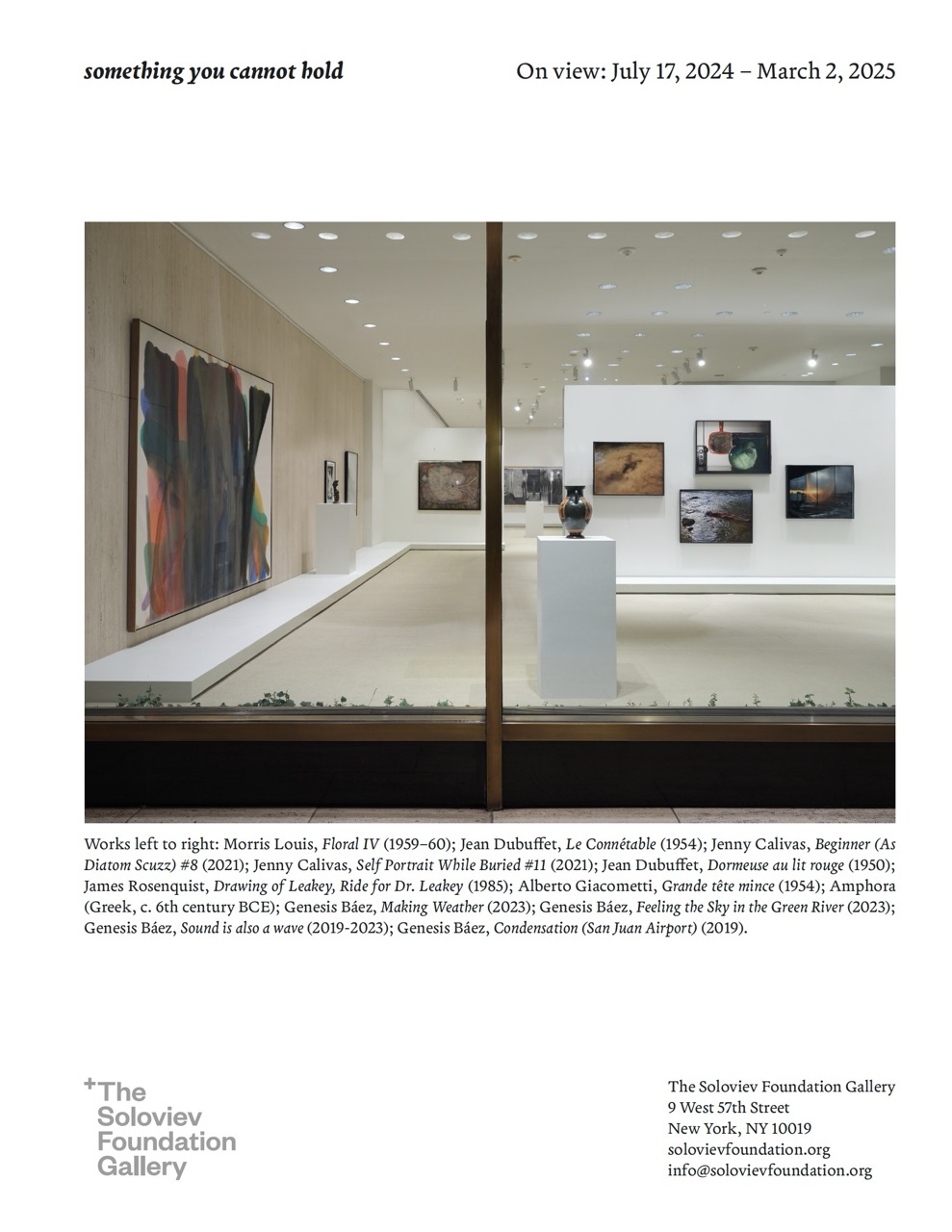 Materials that flow, blend, and morph have the power to unsettle familiar distinctions: this merges with that, here moves there, inside unfolds into outside, singular becomes plural. something you cannot hold presents a selection of artists who have cultivated working methods and modes of description characterized by fluidity.