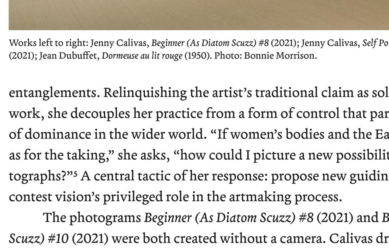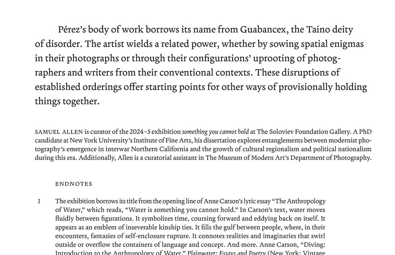 The essay is set in Terza Reader, and the gallery logo uses Founders Grotesk.