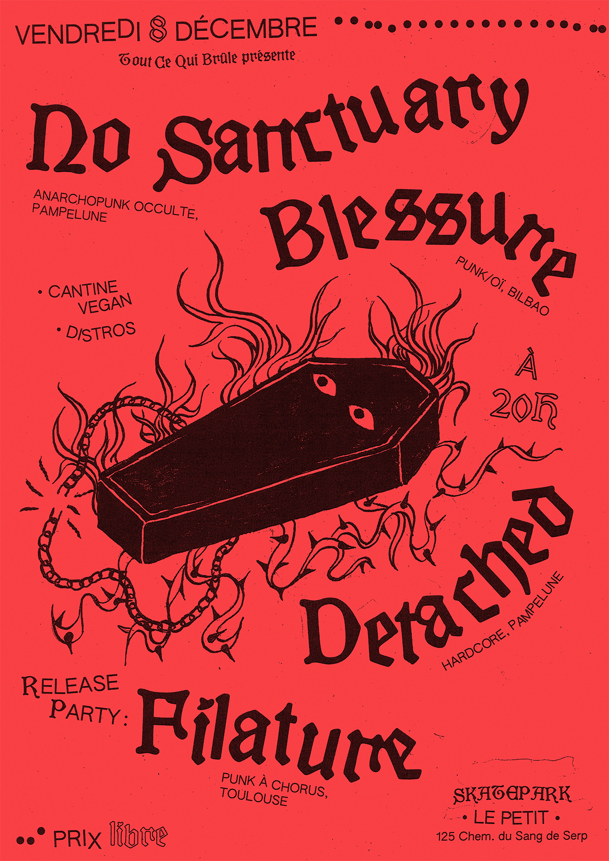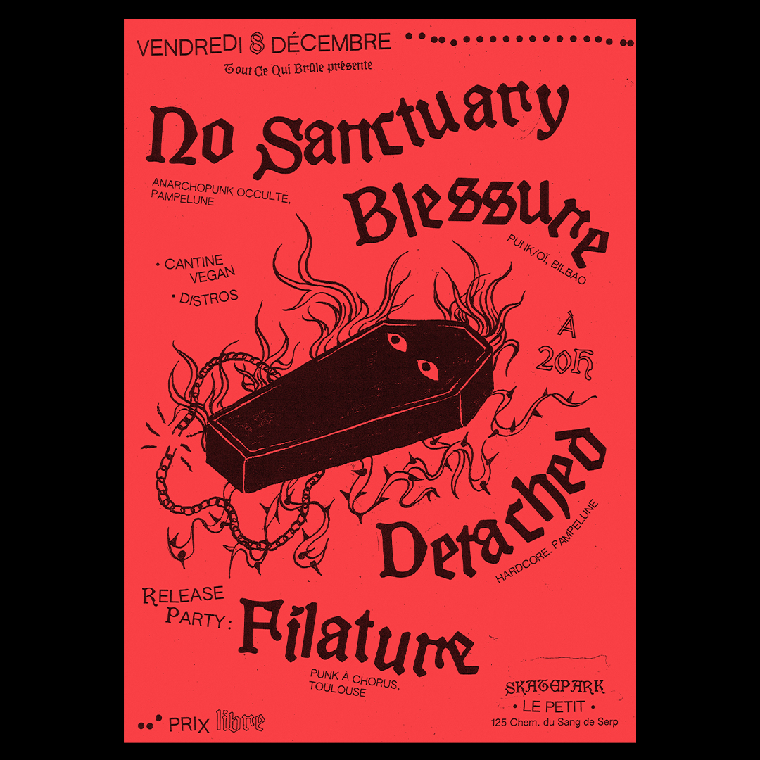 No Sanctuary, Blessure, Detached and Filature concert flyer