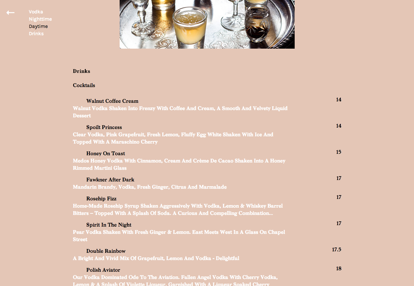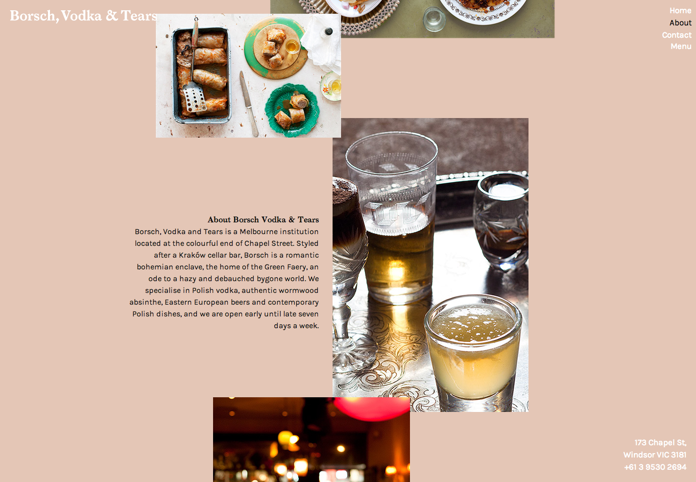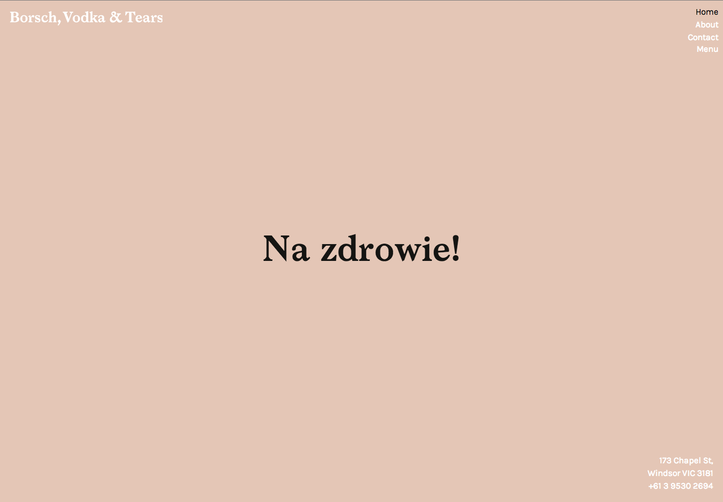 Borsch Vodka & Tears Contributed by David Torr on Jun 15th, 2014. Artwork published in 2014. Source: www.borschvodkaandtears.com License: All Rights Reserved. Source: www.borschvodkaandtears.com License: All Rights Reserved. Source: www.borschvodkaandtears.com License: All Rights Reserved. Typefaces More about Larish NeueGet Larish NeueMore about KarlaGet Karla Formats Web (5521) Topics Food/Beverage (3012) Designers/Agencies David Torr (1) Tagged withvodka (16)webfonts (449) Artwork location Australia (639) Windsor (1) In Setssmooth (Karo Konieczna) (524)Sans (Greg Campbell) (14)Serif (Greg Campbell) (8)Modern Serifs (Sarah Brown) (17)Elegant (Sarah Brown) (61) Post a comment Name Email – will not be published Website Your response Submit Comment More Larish Neue in use Momentum for Change 2018 Report2019Alex PiacentiniUNFCCCContributed by alex piacentini Babel #1 Type Symposium2012HfG OffenbachMario HombeuelMathias BärContributed by Manuel Wesely Staff Pick Fear Vs. Risk Ratio2017Christopher BrackettContributed by Christopher Brackett Sponsor More in Food/Beverage Sound DrinksRedscoutContributed by Redscout Good Design Is for Everyone2022JD&Co. CreativeJong Woo SiAage VetterContributed by Jong Woo Banana shake ad by McDonald’s1976Contributed by Garrison Martin Cucurico restaurant2018PacificaContributed by Denis Serebryakov Staff Pick More in Web М-464: unrecognizable individuality2021Pavel KedzichContributed by Pavel Kedzich Plant Power branding, packaging and websitec. 2023Positive CompanyContributed by Rodrigo Fuenzalida JB10X Digital Identity & Trust Consulting website2022Jonas PelzerContributed by Jonas Pelzer IBMakers VI online eventLinda RomanoDenis PaladinContributed by linda romano More Fonts In Use Musikschule HardVorarlberger GrafikOthmar MotterContributed by Florian Hardwig Staff Pick Virei movie posters, titles, trailer2024Studio DobraContributed by Dobra Staff Pick Clare Maguire album art2011Contributed by Gareth Hague Staff Pick RSF – Reporters sans frontièresc. 2020BETCStéphanie BarceloModular AgencyContributed by Production Type Staff Pick