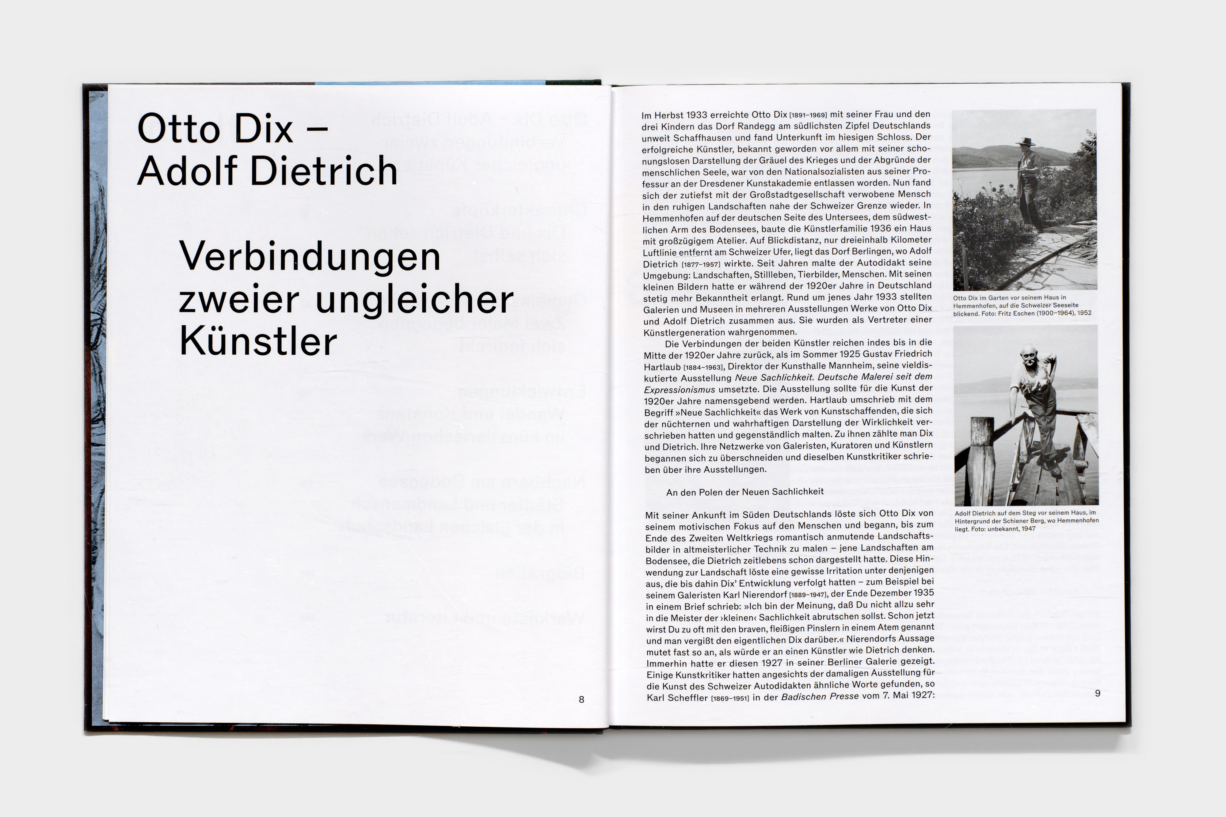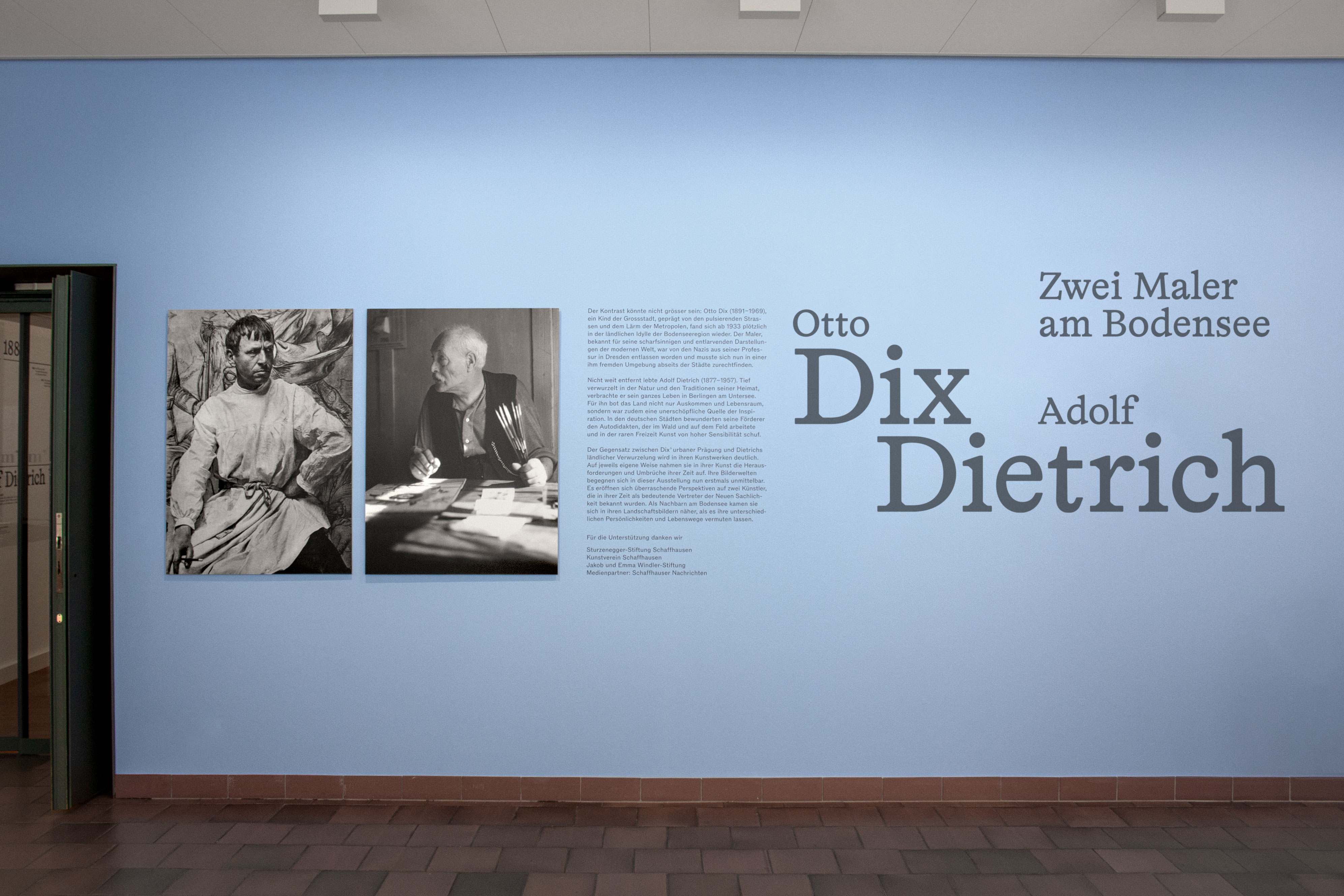 The following exhibition took place from April 5 to August 17, 2025 at the Museum zu Allerheiligen in Schaffhausen, Switzerland: Otto Dix – Adolf Dietrich, Two Painters on Lake Constance. This exhibition presented the first juxtaposition of two important proponents of the New Objectivity: Otto Dix (1891–1969) and Adolf Dietrich (1877–1957).