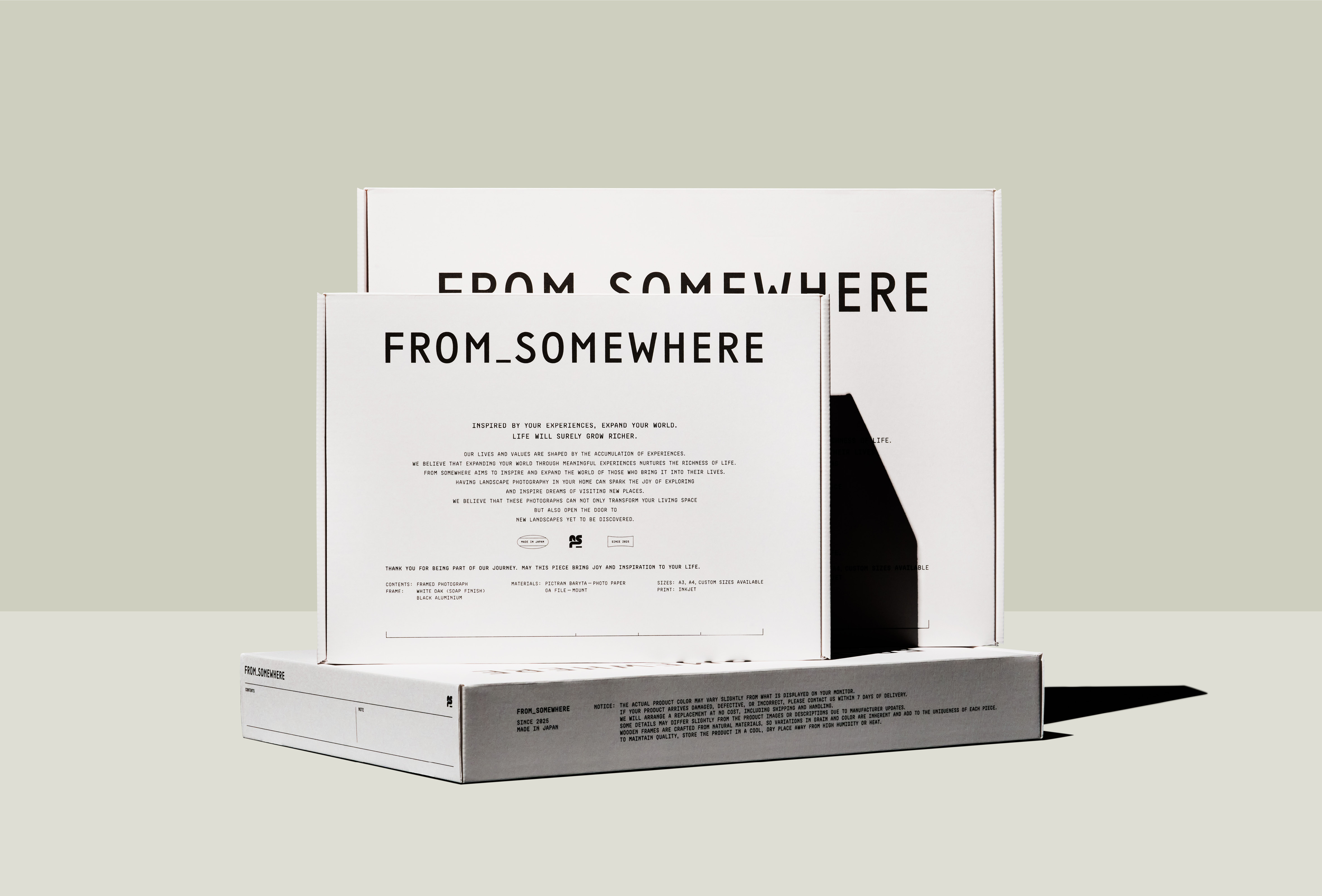 FROM_SOMEWHERE’s design philosophy emphasizes not just the product itself, but the experience of receiving it. Its plastic-free, environmentally conscious packaging, combined with the ability to reuse the materials after delivery, represents a forward-thinking approach with both commercial and social significance. Simultaneously, the brand continues to value the beauty and quality of the photographs themselves, showing insight into a new kind of lifestyle for today’s consumers.