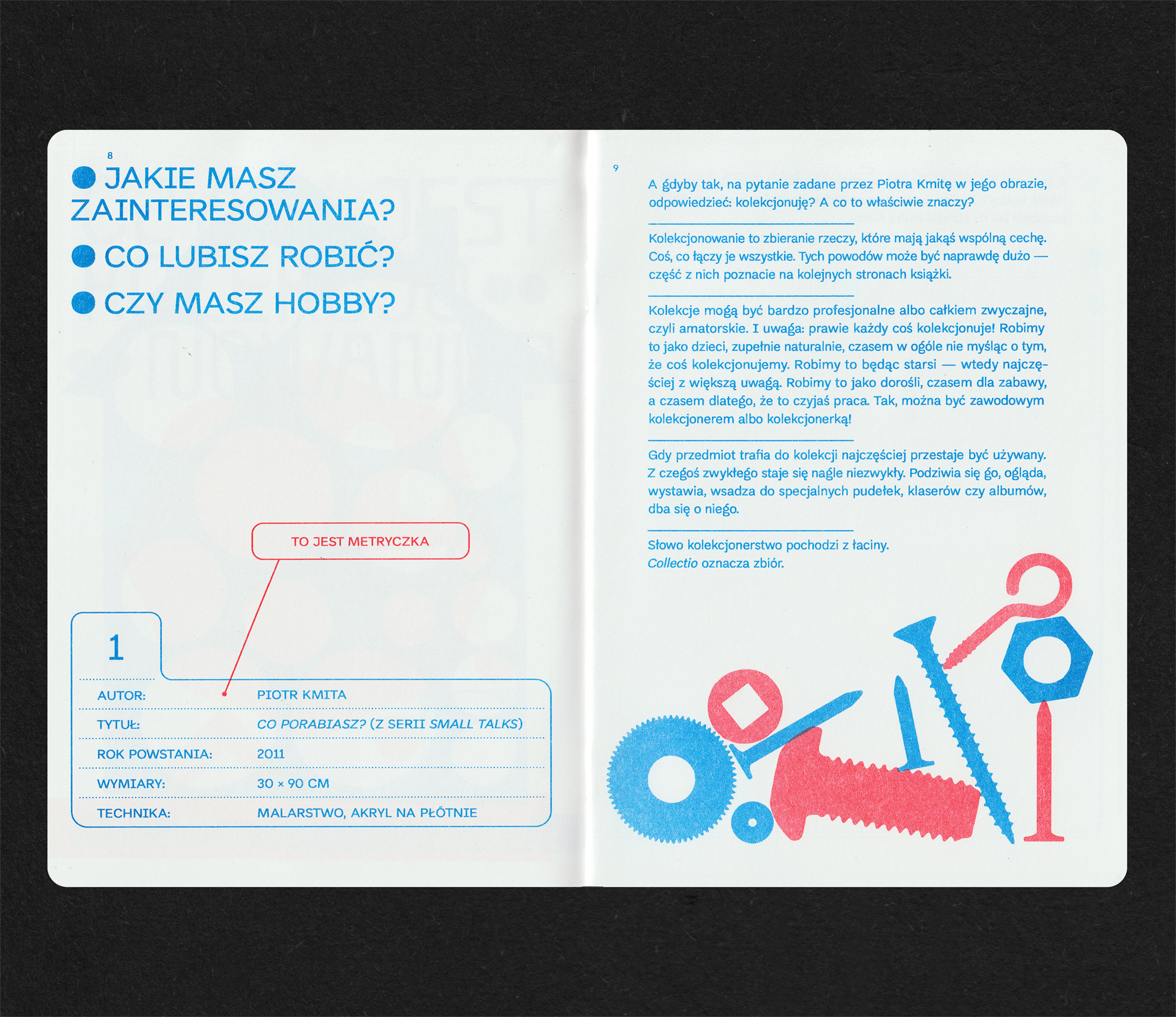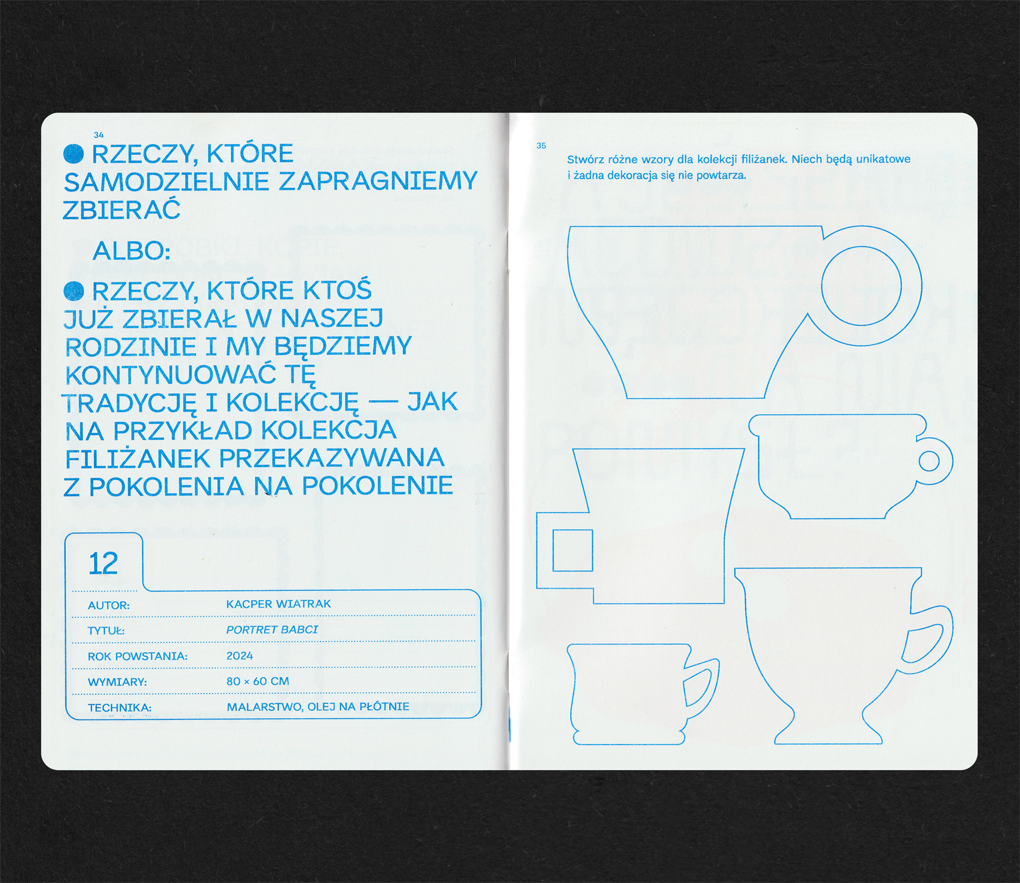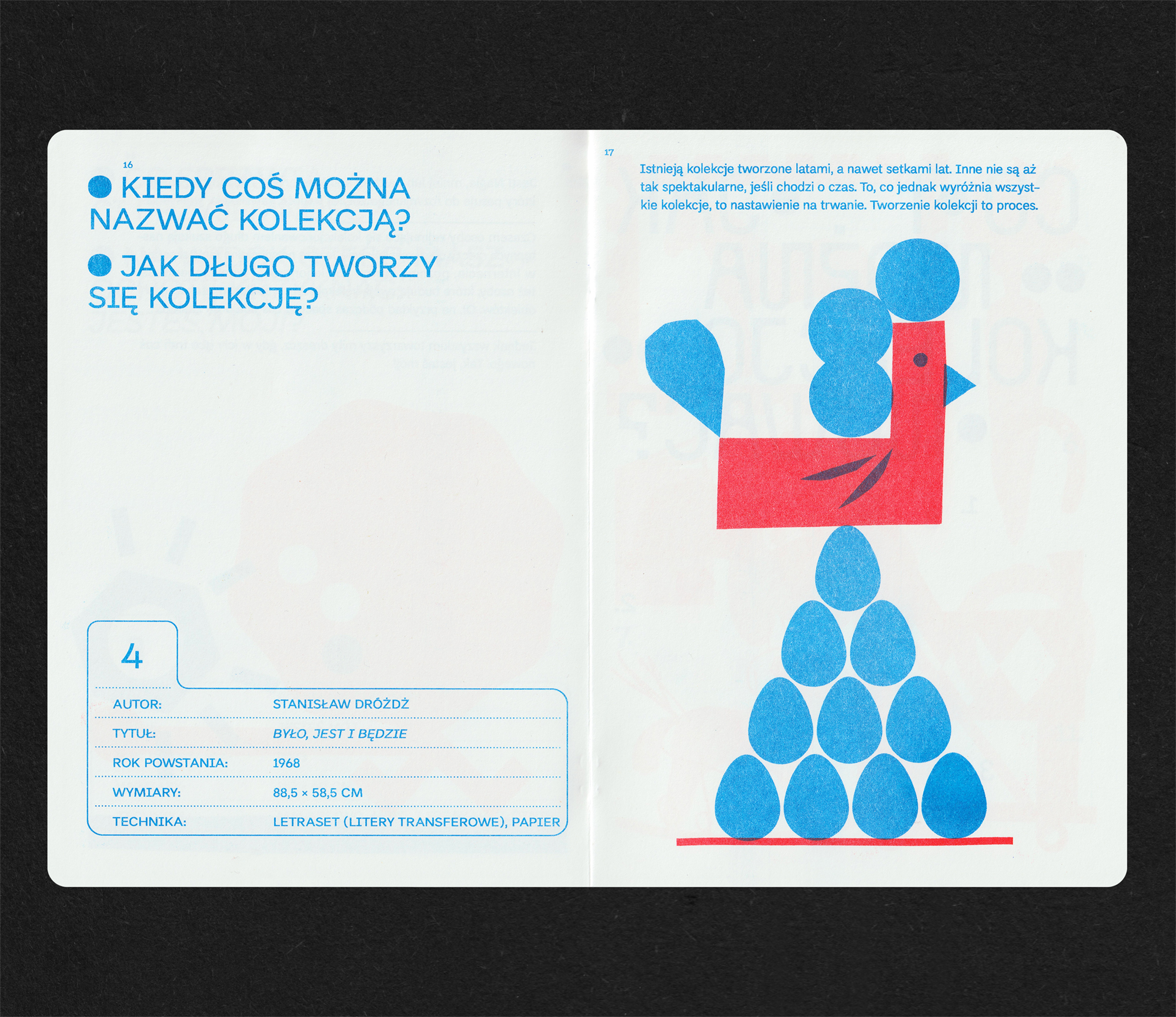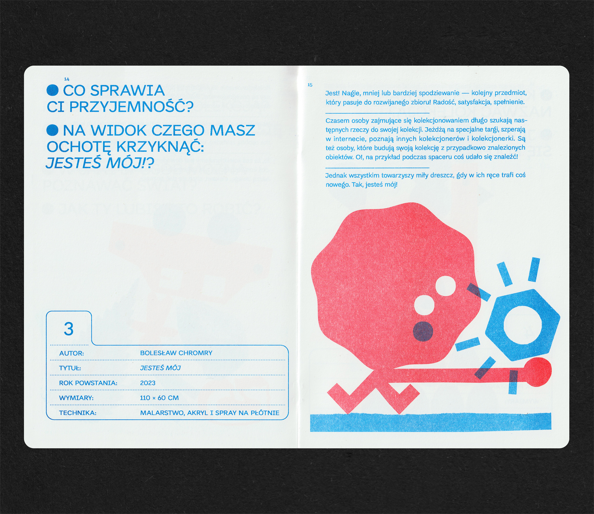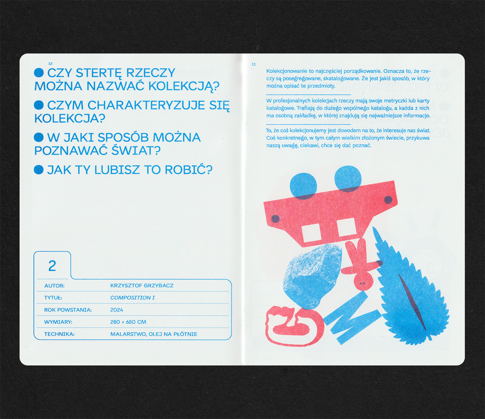 This children’s publication was created as part of the Primo! project by the Krupa Art Foundation. It’s an activity book inspired by works from the KAF collection, encouraging children to explore what collecting means and how diverse it can be. Printed using the Riso technique at the Effemera print studio in Wrocław – each copy is unique!