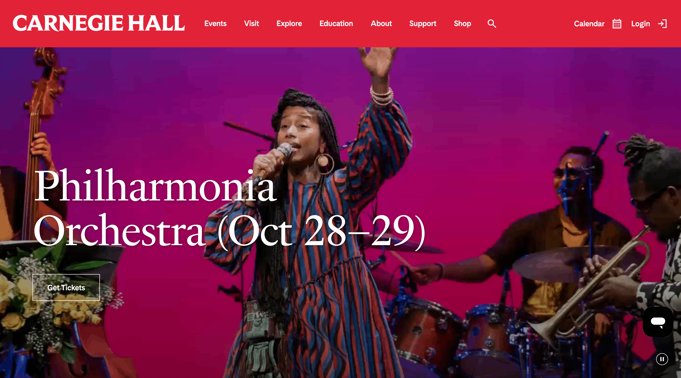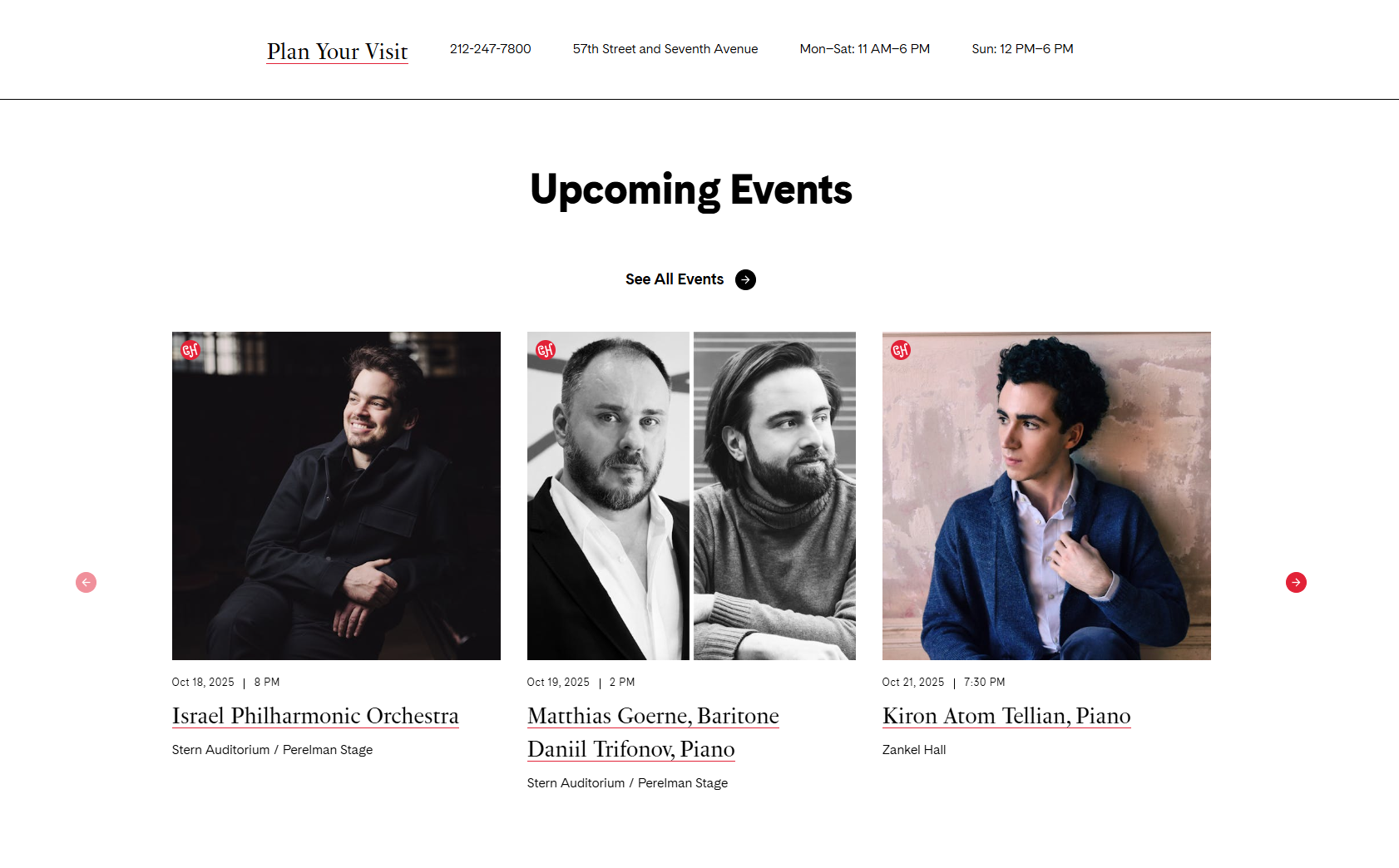 Fournier is a classic serif typeface that delivers what people expect from Carnegie Hall. In contrast, Cadiz is simple and modern, but shares a handful of similarities with Fournier, such as the “W.” The combination of these two typefaces in the wide variety of weights available supports the diversity of programming put forth by the Hall. Together they can talk about classical music, jazz, hip hop, music education, and social impact programs, and all that the Hall presents.