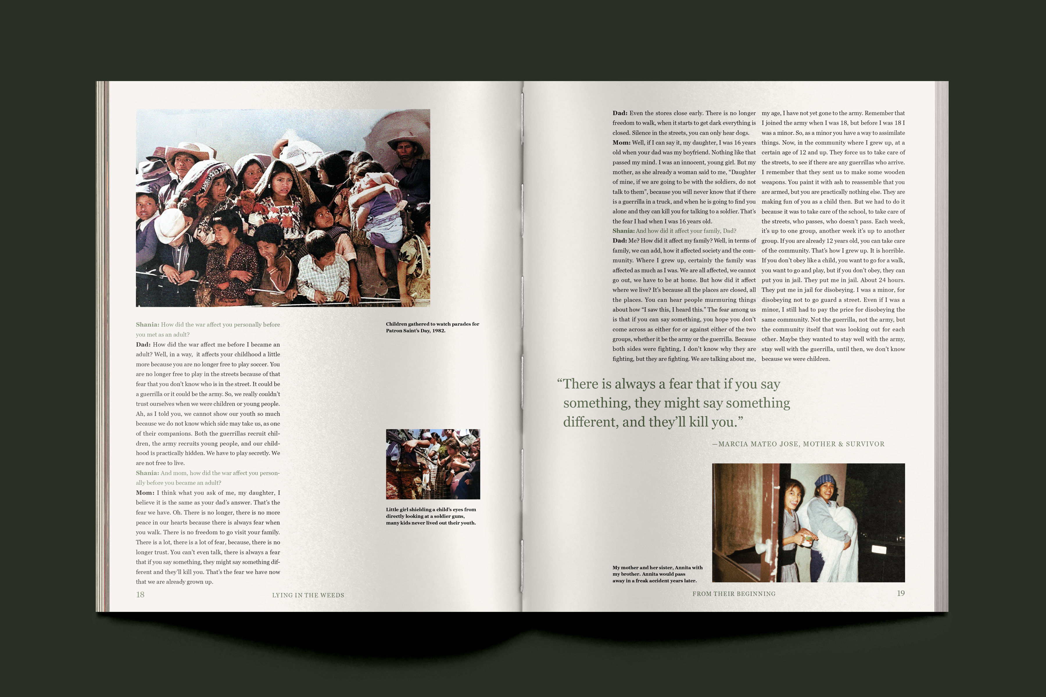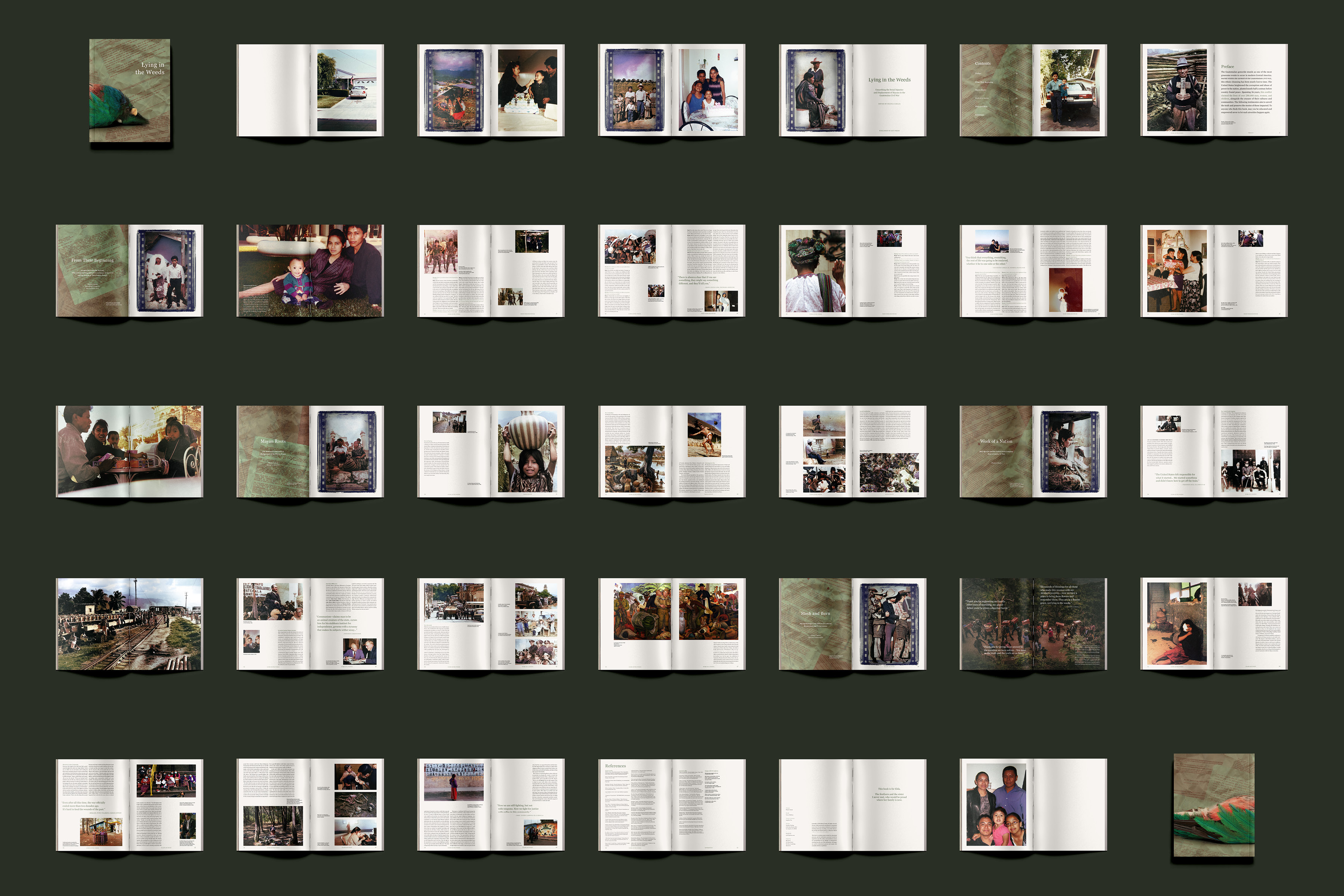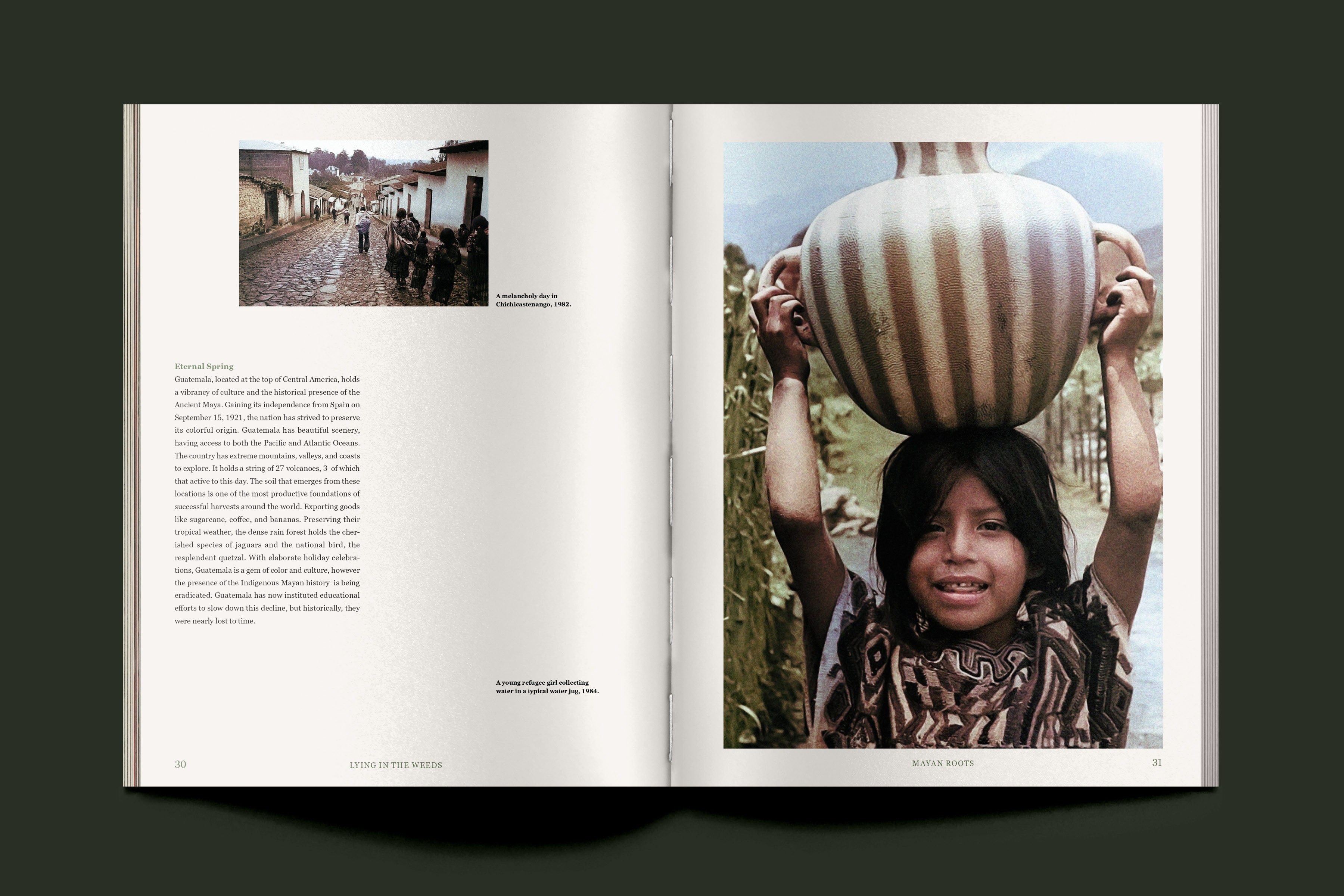 Lying in the Weeds is a 64-page book dedicated to decolonizing social injustice in war. The Guatemalan Civil War is infamous for the countless lives that were killed, tortured, and traumatized. Using my own family’s story, who fled in search of asylum, this book is an effort to preserve and share the testimonies of those who have been silenced.