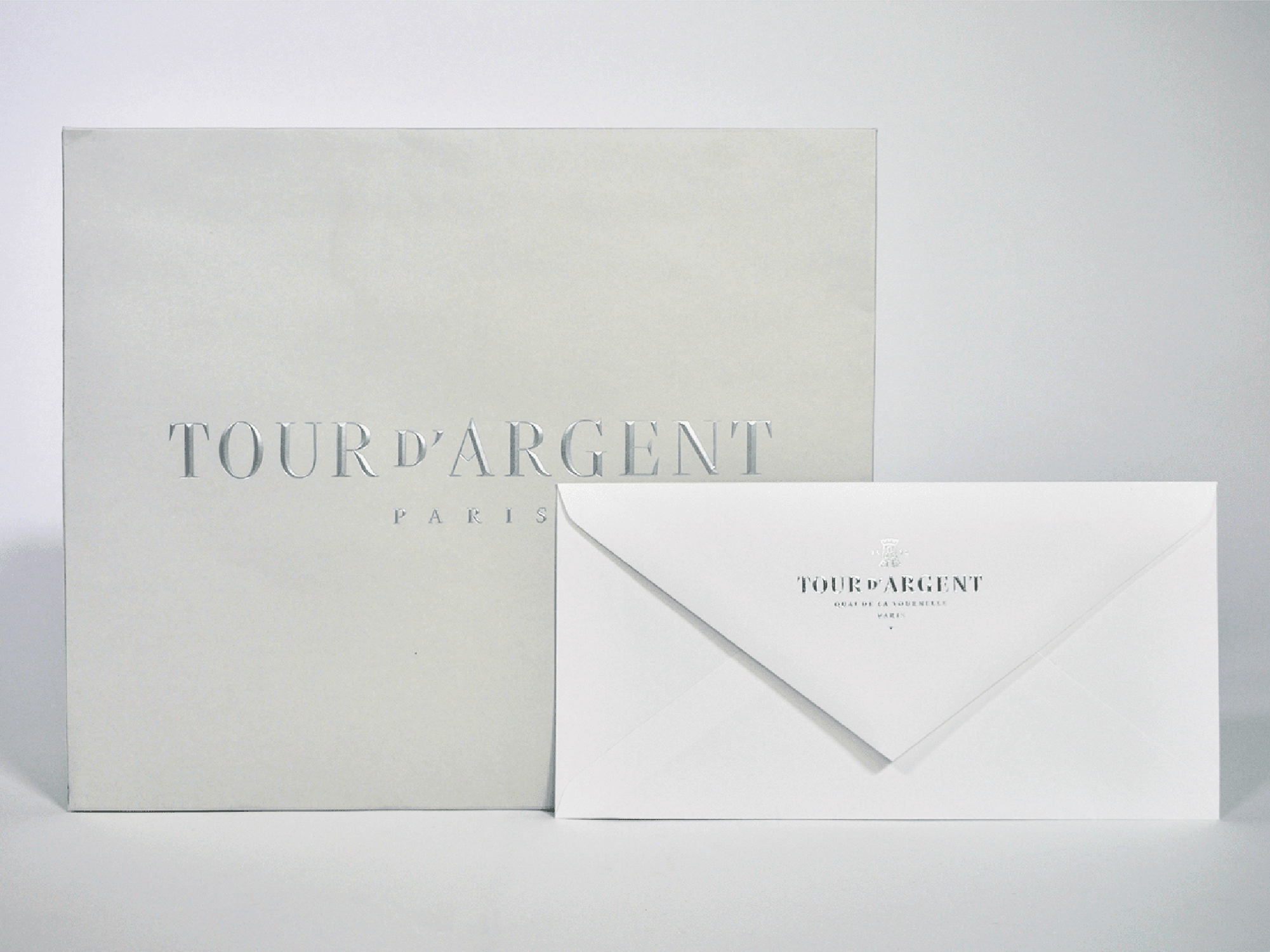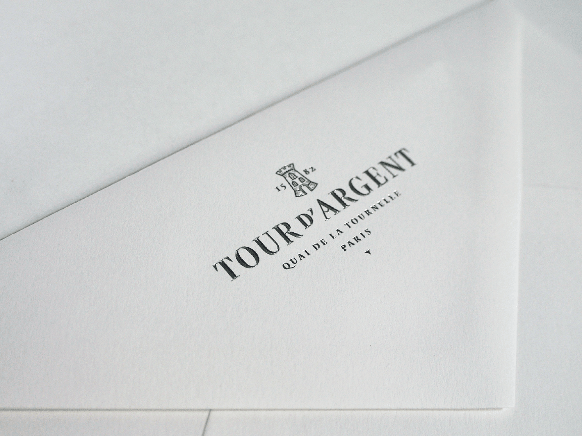 Various typographic proposals have been made in order to find the best solution to convey the Tour d’Argent heritage. The result is inspired by the archives of the famous Parisian restaurant, taking its roots from the 1950s typographic style with a contemporary twist. The Tour d’Argent logotype made by ZeCraft (our sister company) paid homage to Vendôme, the typeface used by the restaurant for years. As the sign on the building – which is still in place – proved it too, sharp serifs have been in vogue during the fifties in France. That’s why Jean François Porchez added sharp details to the new logotype such the angle on the R and specific serifs on certains positions of the letters that build the logotype.