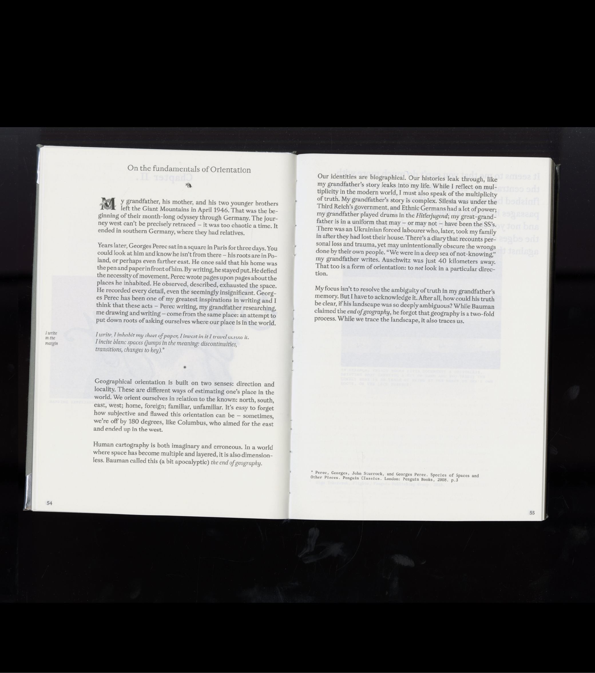 This artist’s book explores memory, migration, and belonging through drawing, writing, textile art, and archival research. Tracing the artist’s grandfather’s journey from a mountain village in southern Poland across post-war Europe, it layers personal reflection with political history, landscape studies, and family artefacts.