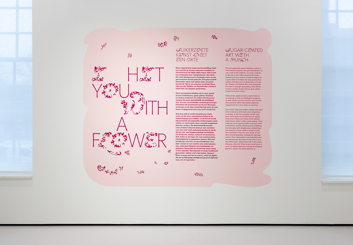 From 23 November 2024 to 4 May 2025, the Stedelijk Museum Schiedam will be showcasing I Hit You With a Flower – sugar-coated art with a punch, an eye-catchingly sweet exhibition that celebrates diversity in society. It is also a tribute to ‘girly art’, a term that has often been used as a derogatory label but is now being reclaimed as a badge of honour. On show are works by pioneers such as Lily van der Stokker, Kinke Kooi and Pipilotti Rist as well as younger artists such as Vera Gulikers, Frances Goodman, Dae Uk Kim, Jurjen Galema, Mari Katayama and Alex Naber & ChelseaBoy. More than twenty Dutch and international artists will dazzle visitors with everything from pinks and pastels to vibrant colours, gold, glitter, flowers and other motifs. Their frivolous works of art are as enticing as they are intelligent. Through a delightful and alluring approach, these artists engage you with their velvet activism and the open society they stand for. Getting involved has never been so much fun.