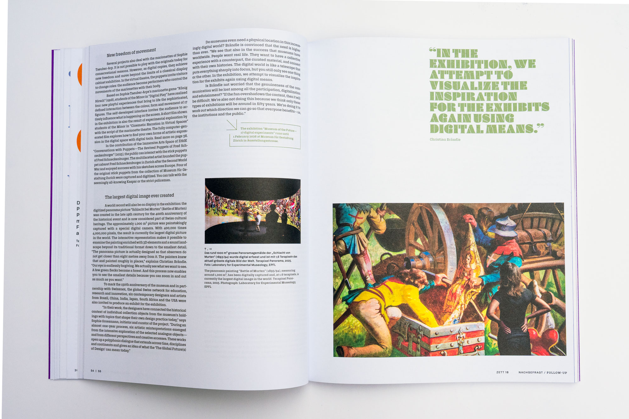 The magazine’s visual design is by Samuel Marty, who has given Zett its distinctive and contemporary appearance. In the latest issue, he uses Daisy by LudwigType for the title and headlines, and Brenner Sans with Brenner Slab by Typotheque for the text.