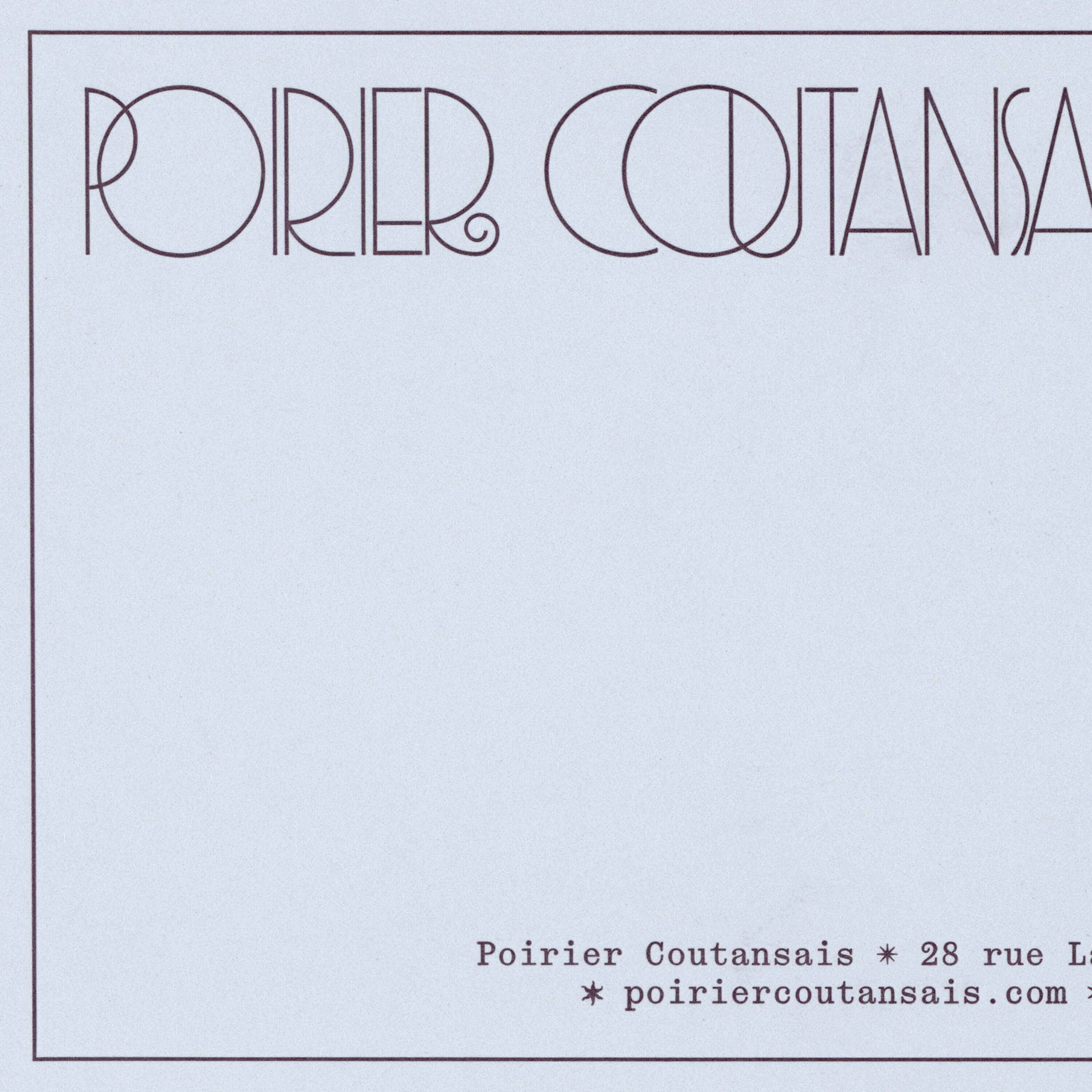The identity for Poirier Coutansais establishes a dialogue between Art Deco and modern rationalism, between ornament and structure. Designed by eschenlauer sinic, it extends the philosophy of Victor Poirier Coutansais’s practice, where craft meets concept, and sensibility meets precision.
