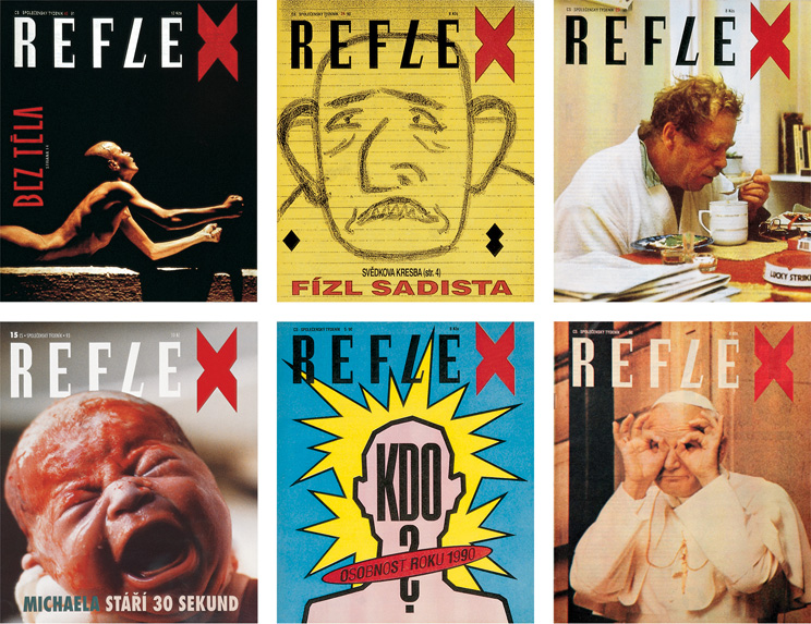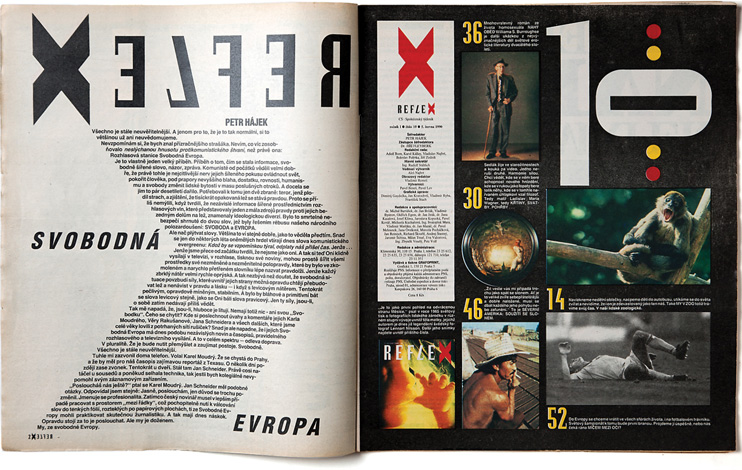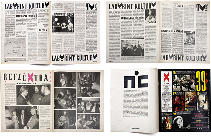 The Reflex typeface was designed by a graphic design team, namely Pavel Beneš, Pavel Lev and Aleš Najbrt, for Reflex, a weekly magazine focusing on social, political and cultural commentary and issues that first went to print in 1990, shortly after the Velvet Revolution.