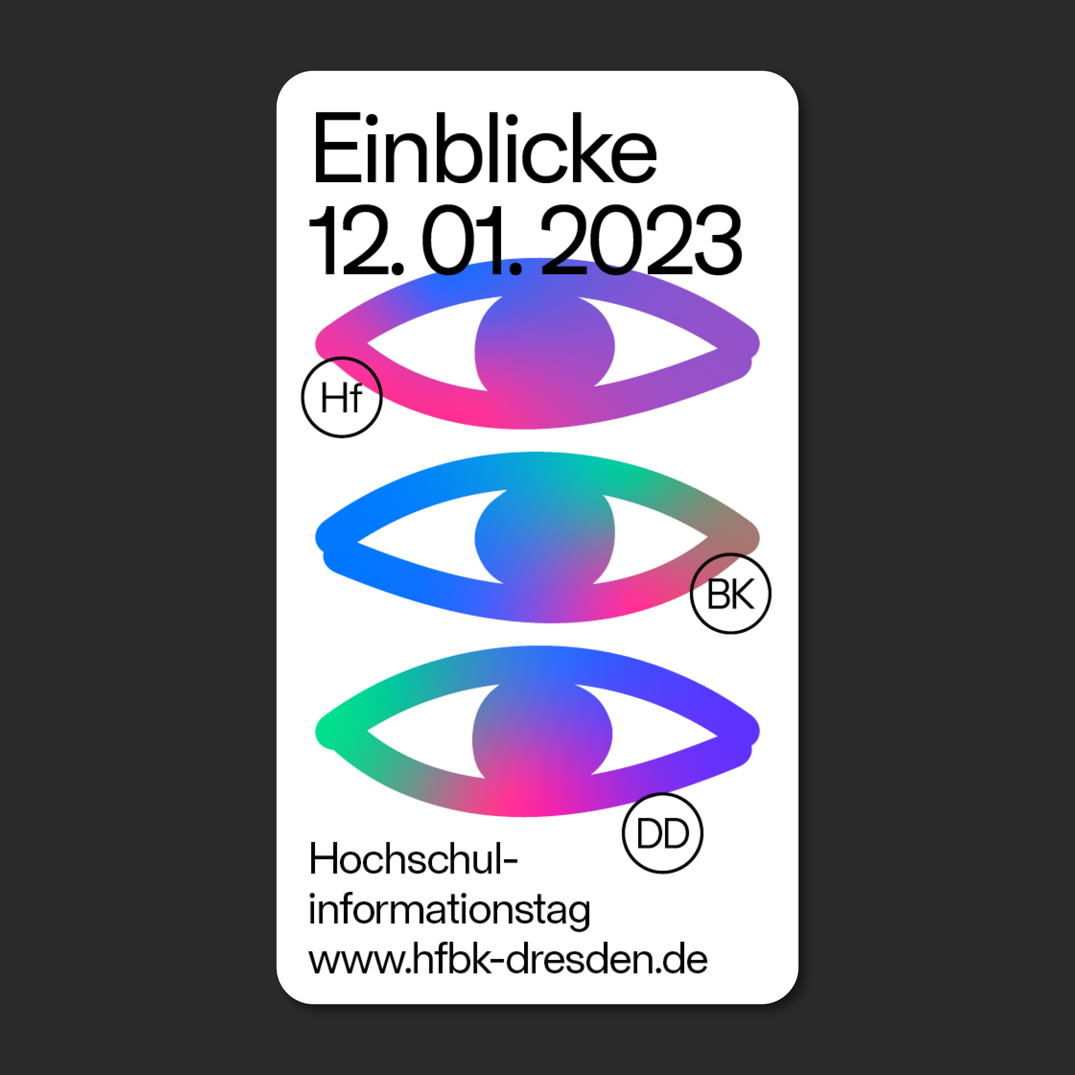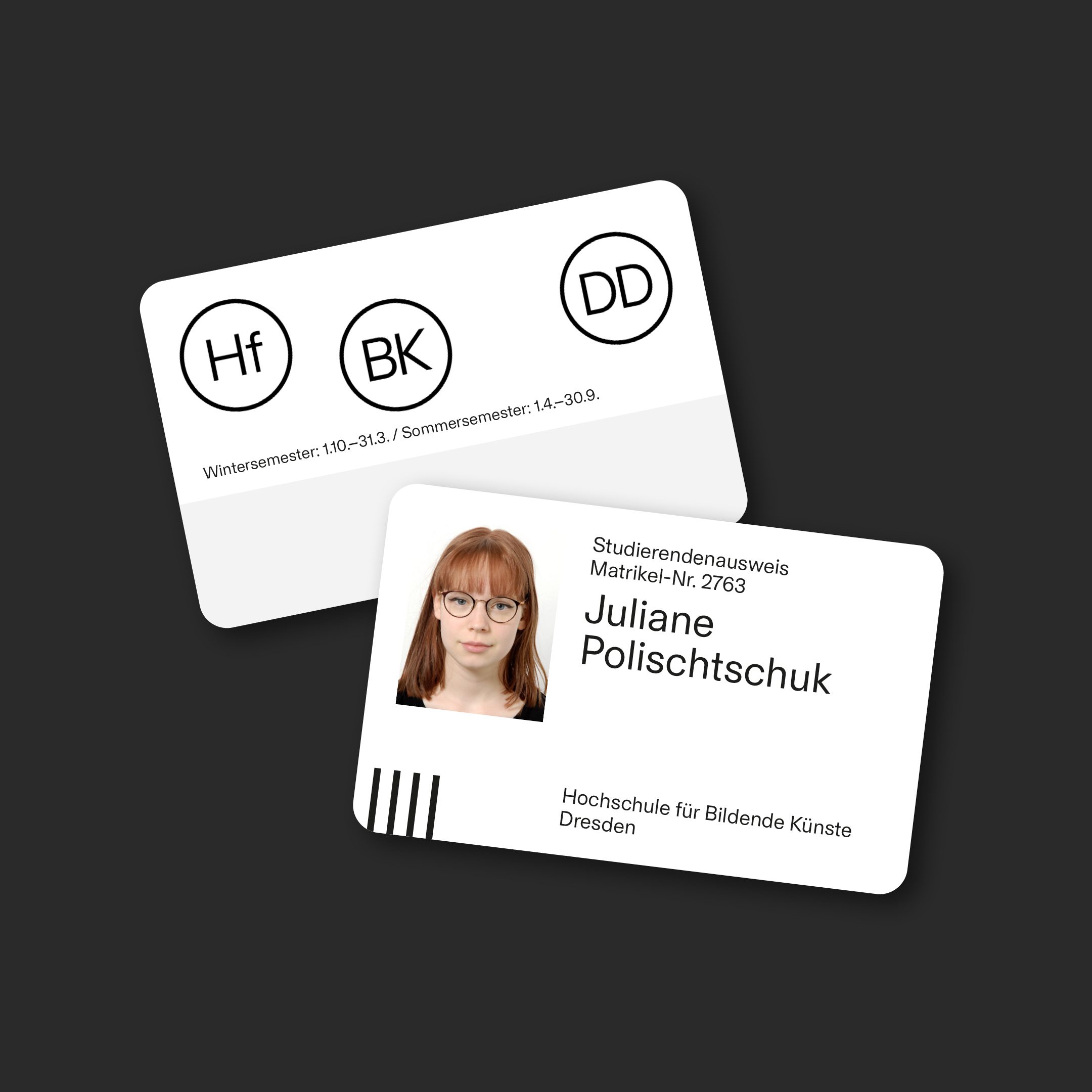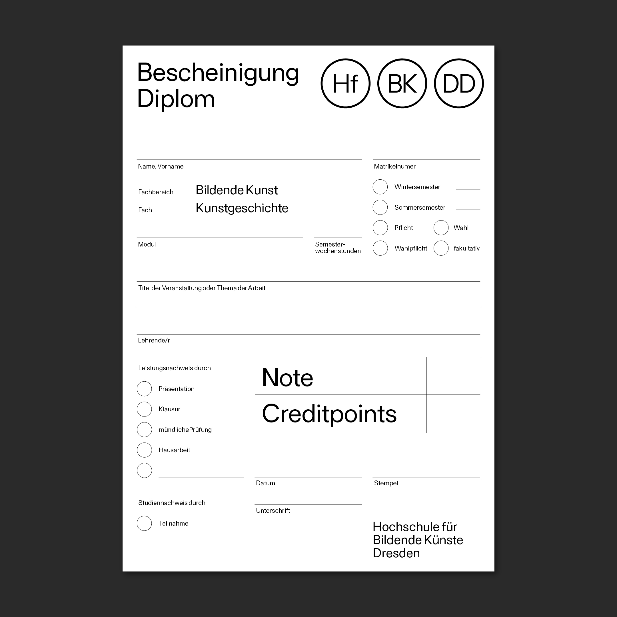 The corporate design of the Hochschule für Bildende Künste Dresden (HfBK, University of Arts Dresden) was designed by Roger Lehner and Arne Winter. It is based on a custom version of Futter Grotesk by David Raphael Lüthi, Upset.