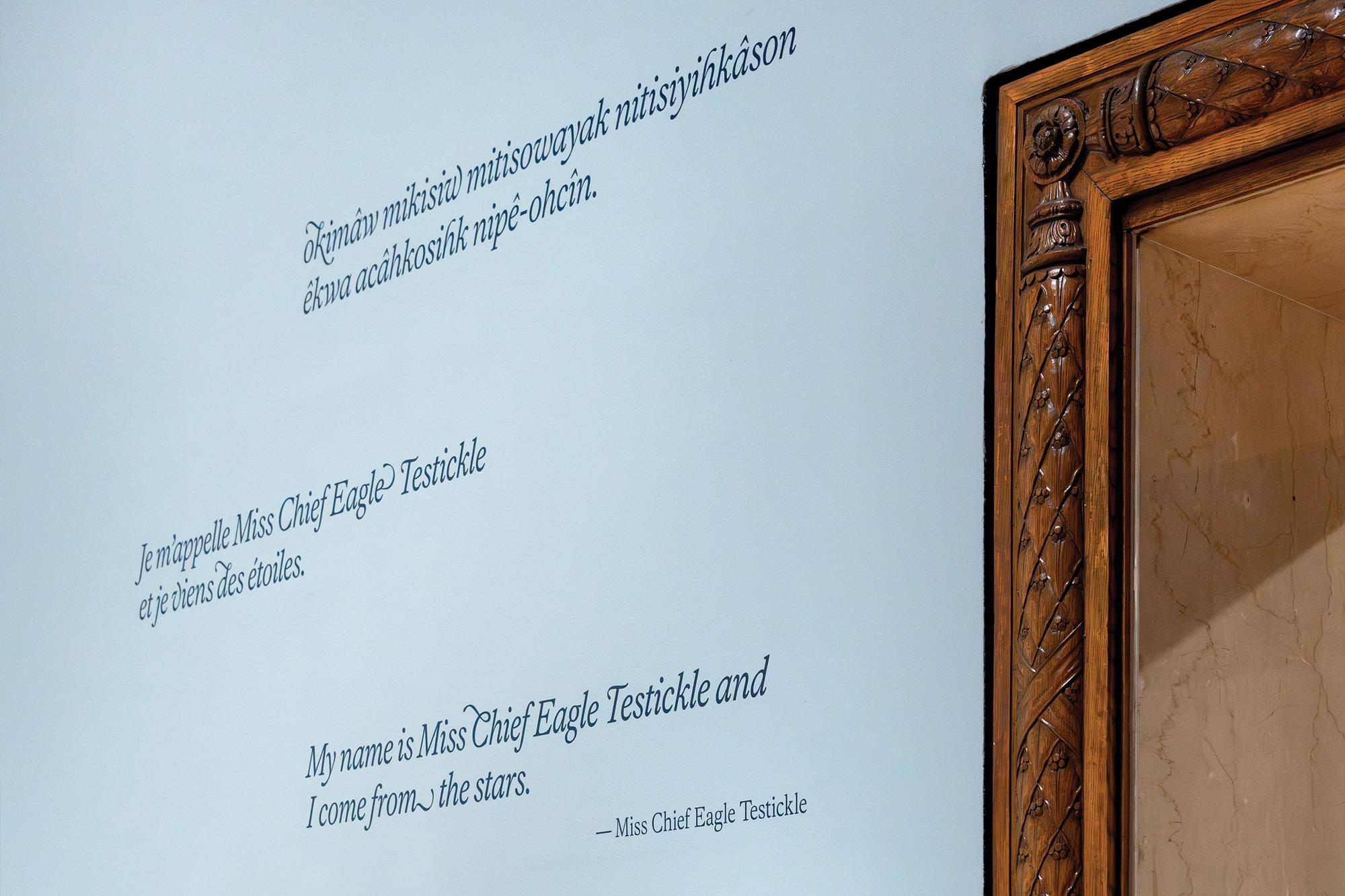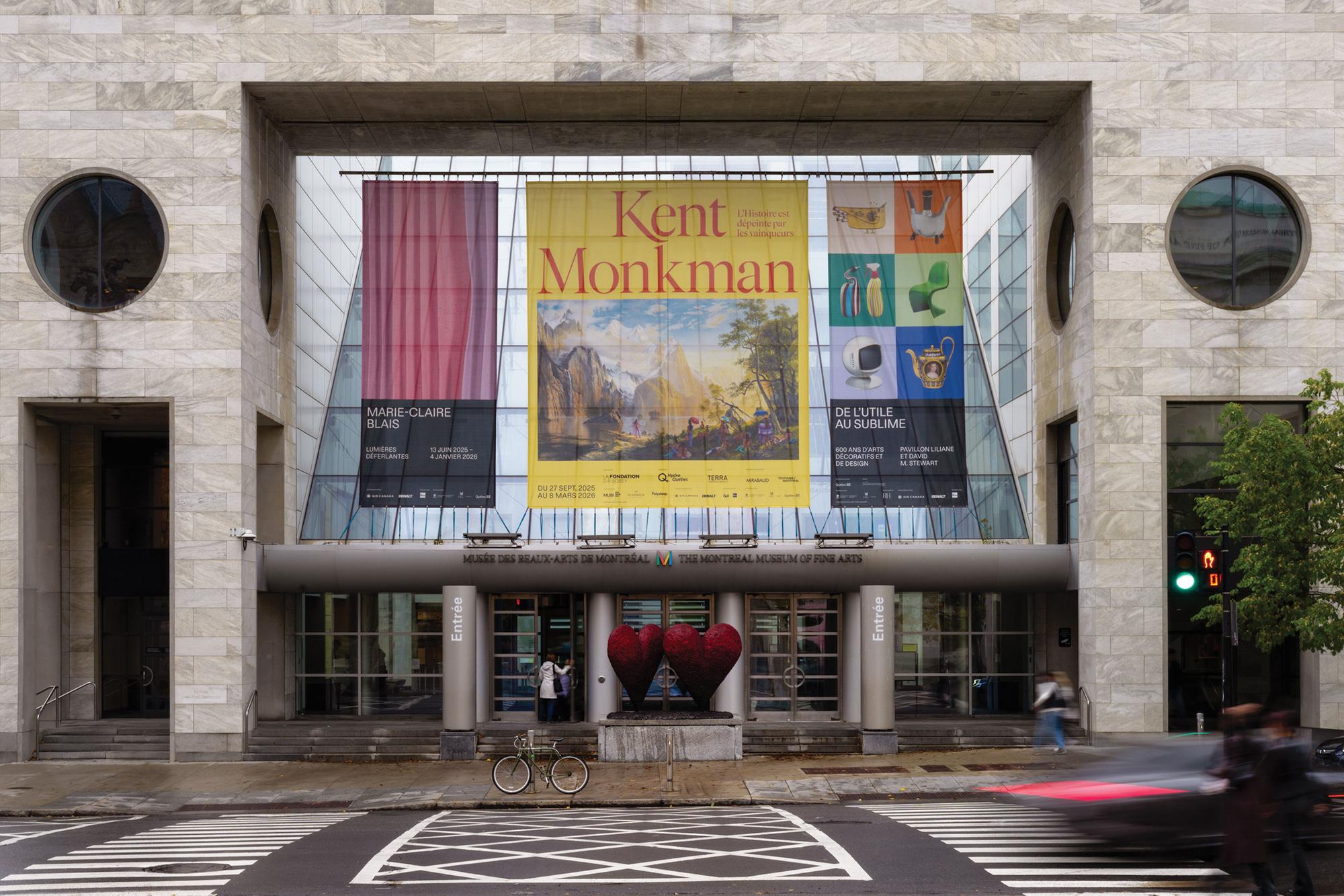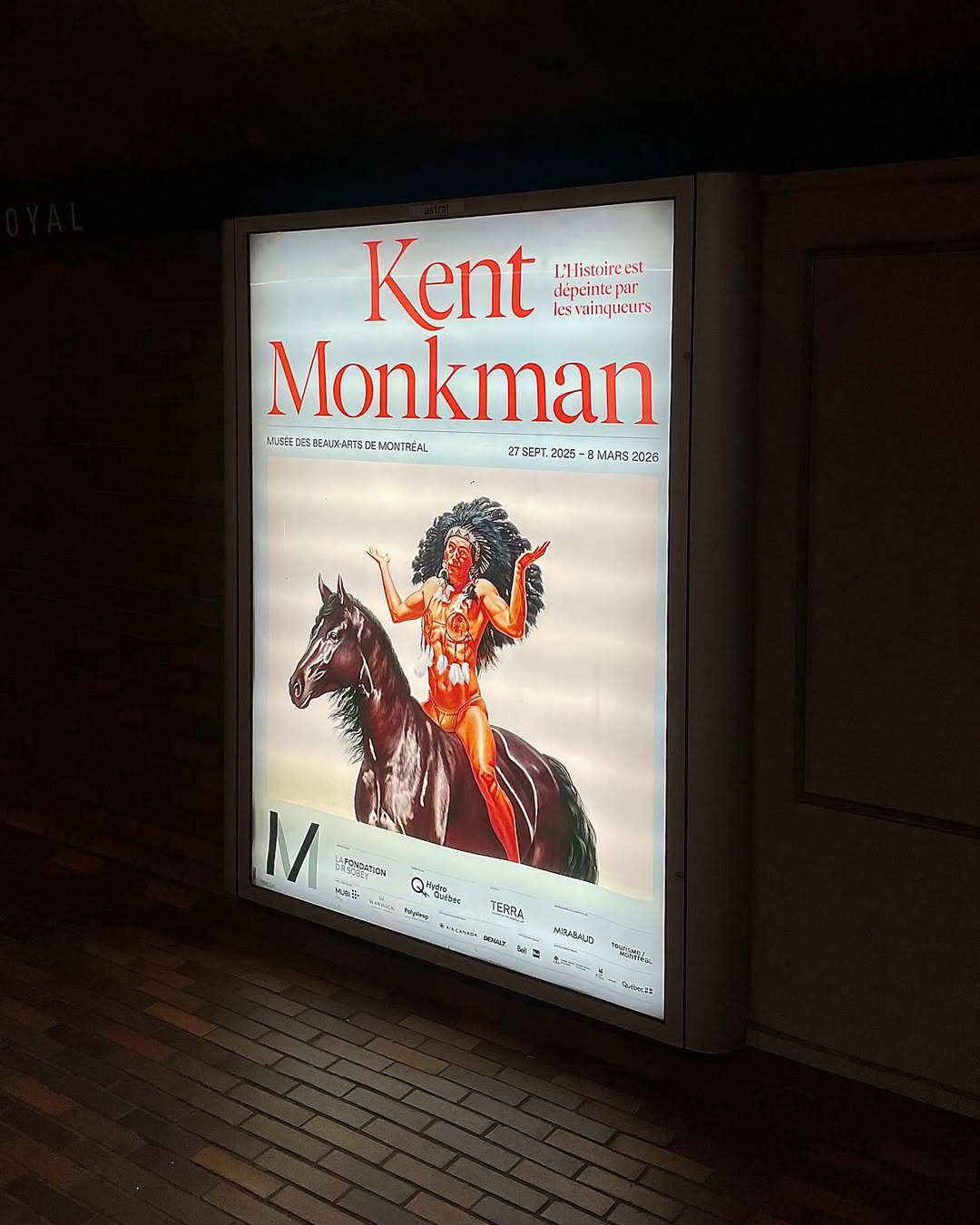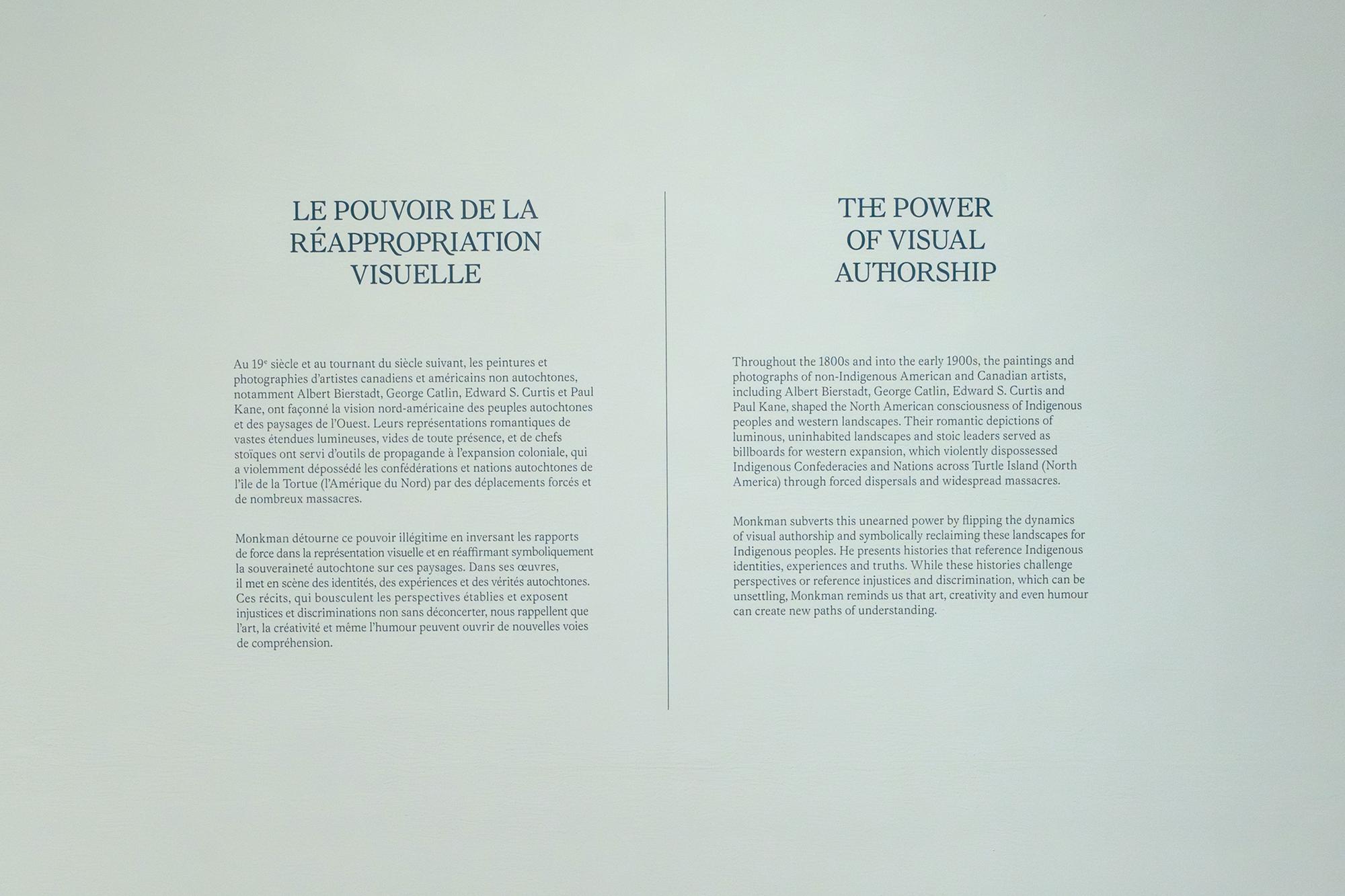 Visual identity designed for the exhibition L’histoire est dépeinte par les vainqueurs (English: History is Painted by the Victors; Cree: pihci nâway sapikahamwak kâ-paskiyâkêcik) showing works by Kent Monkman, an internationally acclaimed artist and member of the ôcêkwi sîpiy (Fisher River Cree Nation), known for his bold reinterpretations of history painting. Bringing together over forty monumental works, the exhibition explores the complexity of Indigenous experiences through themes such as colonization, climate crisis, and 2ELGBTQIA+ representation.