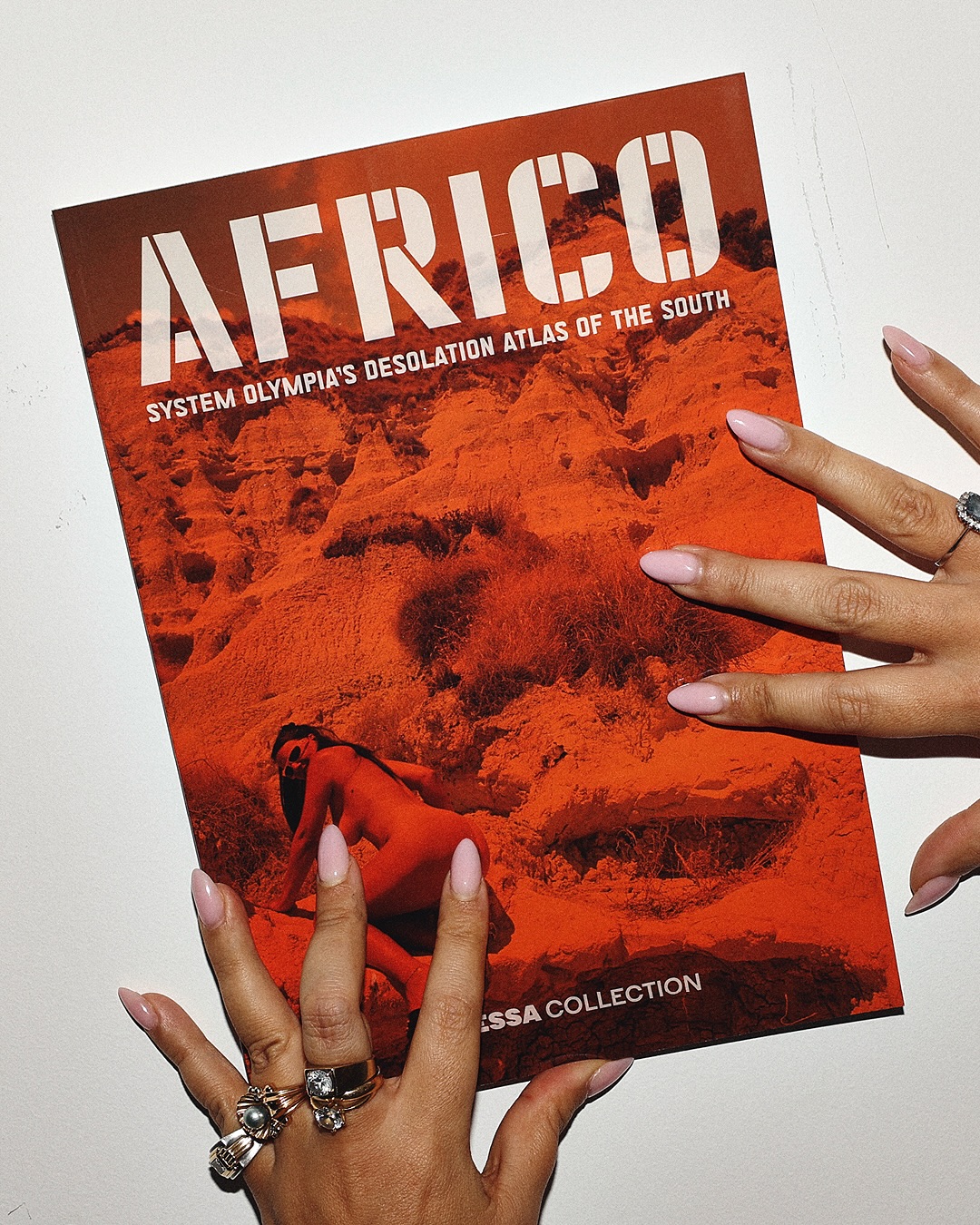 Shot by Emmanuel Crivelli during his first trip to Calabria during summer 2025, this daring work portrays System Olympia in her native land. Each page becomes a map, where each photo of her naked body builds a new cartography, guiding the reader through the ruins of tradition toward a newfound freedom.
