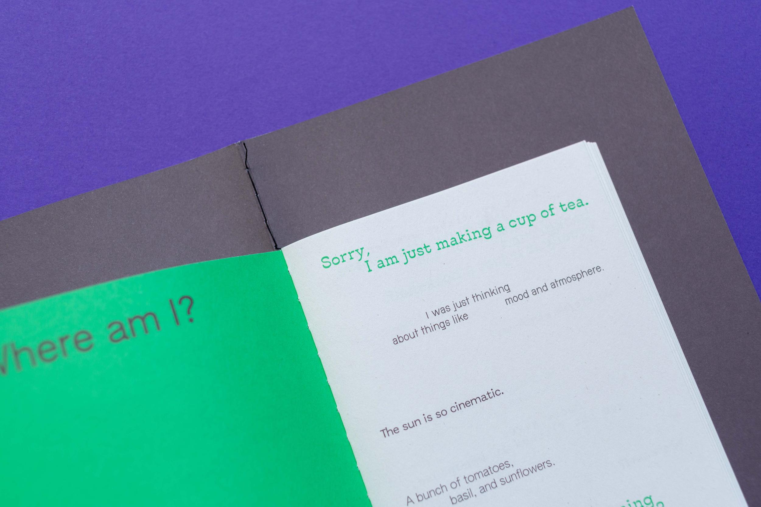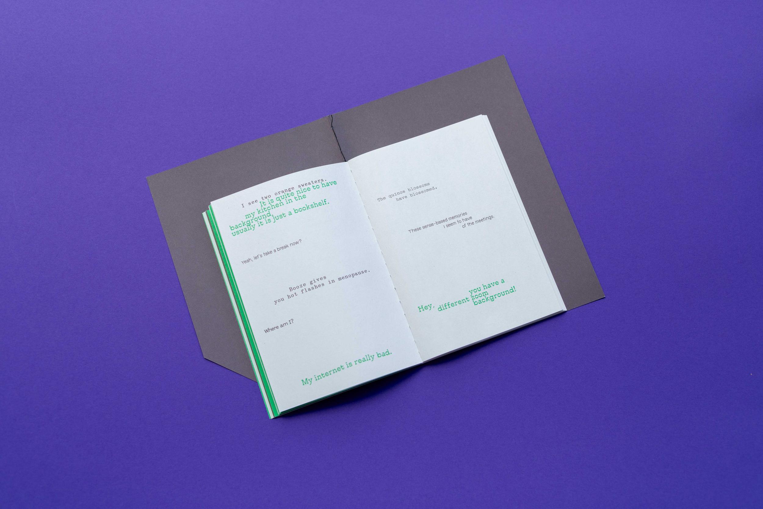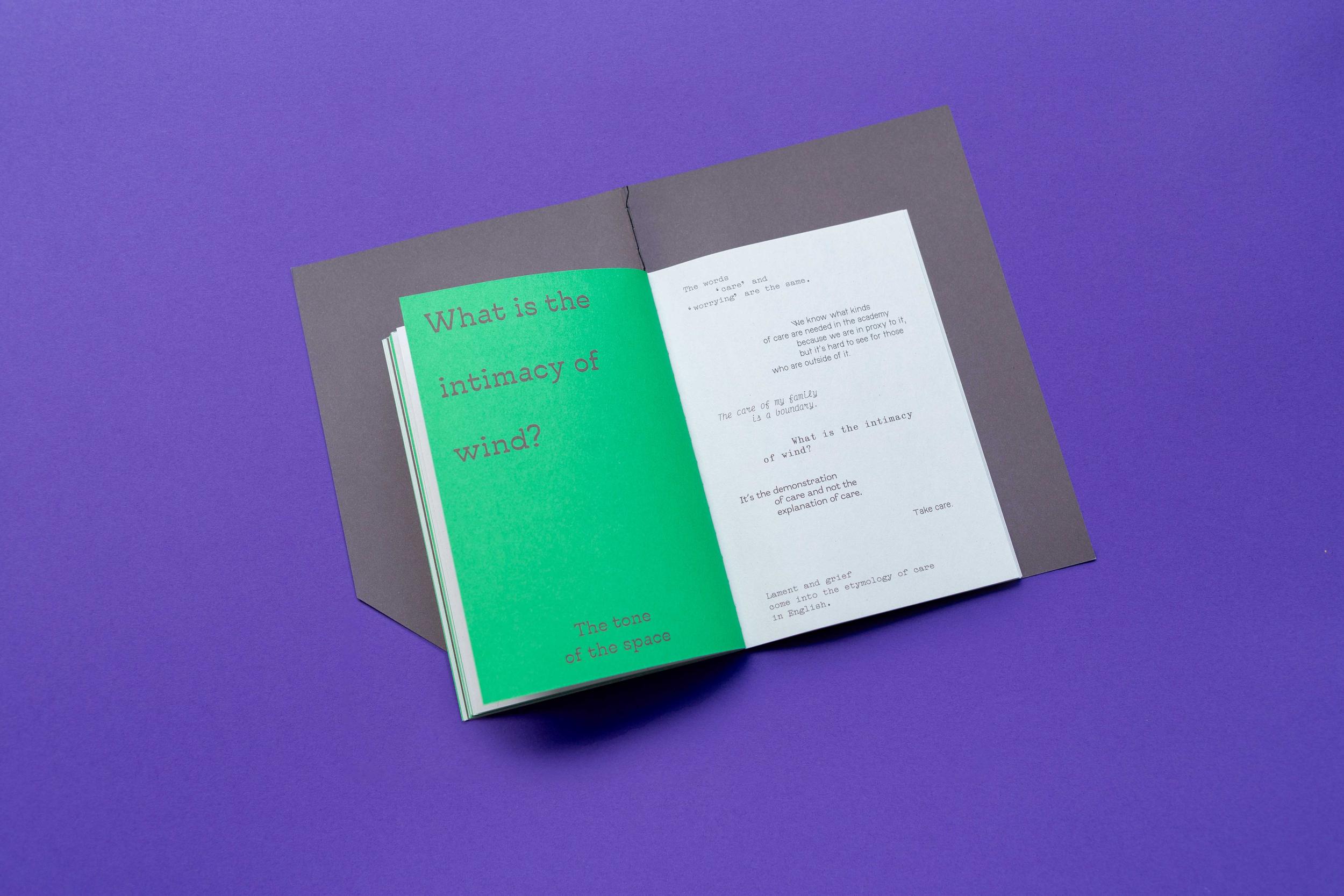 Utterances was written by The Promiscuous Care Study Group and co-published by HumDrumPress and Meteoro Editions. The cover measures 140×195 mm with inner pages measuring 110×155 mm. It has 60 pages and was printed by Offsetdruckerei Karl Grammlich GmbH.