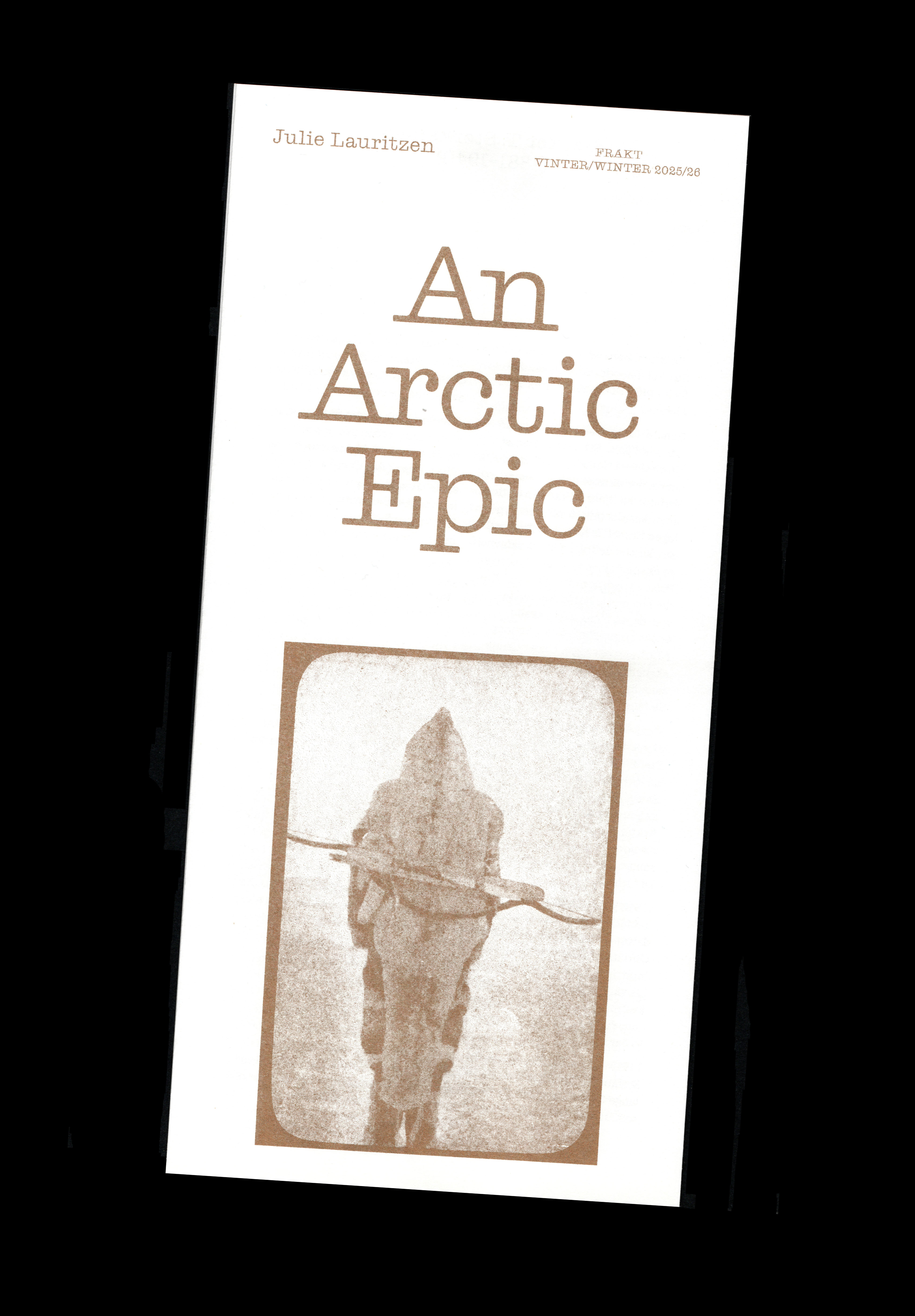 An Arctic Epic exhibition brochure Contributed by James Griffin on Dec 2nd, 2025. Artwork published in November 2025. Kristina Flølo. License: All Rights Reserved. An exhibition brochure for Julie Lauritzen who took part in the group show A gust of wind wakes us from our slumber at the photography gallery FRAKT in Oslo. The brochure is Risograph printed and features the typefaces Blanchard and Gratitude throughout. Kristina Flølo. License: All Rights Reserved. Kristina Flølo. License: All Rights Reserved. Kristina Flølo. License: All Rights Reserved. Typefaces More about Blanchard (Commercial Classics)Get Blanchard (Commercial Classics)More about GratitudeGet Gratitude Formats Booklets/Pamphlets (2395) Topics Art (4680) Designers/Agencies Kristina Flølo (1) Tagged withbrochures (201)art exhibitions (864)center-aligned text (1903)colored body text (917)monospaced (1233)similar typefaces (420)multilingual (2628)English (language) (2440)Norwegian (language) (156)Risograph printed (237)Julie Lauritzen (1)brown (189)early uses (2235)typeface combinations (3938)photography (970)Arctic (8) Artwork location Norway (304) Oslo (177) In SetsDesigns by Women (Fonts In Use Staff) (3574) Post a comment Name Email – will not be published Website Your response Submit Comment More in Art Treasures of the Map Terrace in the Uffizi2022TipibluContributed by CAST Staff Pick eightArtc. 2020Paula PonsContributed by Paula Pons Rodin in the United States: Confronting the Modern at The Clark2022David Edge, The ClarkContributed by Eben Sorkin Sponsor More in Booklets/Pamphlets Clip Books of Line Art, Volk (1980)1980Harry Volk Jr. Art StudioPhoto(s) by Bart Solenthaler on Flickr. Kiel Institut2025MENSCHMASCHINE StudioContributed by Stella Friedenberger GGW annual report 20162017Betty und BettyContributed by Betty und Betty Palette poster and pamphlet2017Choi SubinContributed by choi subin More Fonts In Use Postcrisis2019Fase StudioContributed by Fase Studio Staff Pick “Incalculable Loss” front page of The New York Times for May 24th, 20202020The New York TimesAndrew SondernTom BodkinContributed by Nick Sherman Blog Schneider Metzgereic. 2020b_werkAlexander HaasContributed by Jan Middendorp Staff Pick Nature Museum visual identity2024SpanNick AdamCheryl KaoContributed by Nick Adam Staff Pick The Book of Colour Concepts2024TaschenAndy DislClaudia FreyContributed by R-Typography Staff Pick Atelier du 9 Bis2018Léa ChaponContributed by Thomas Néel Staff Pick Symbolset2012Oak StudiosContributed by Patch Hofweber Staff Pick Middle C by William H. Gass, Knopf Edition2013Gabriele WilsonContributed by Florian Hardwig Staff Pick