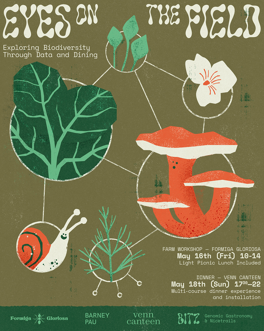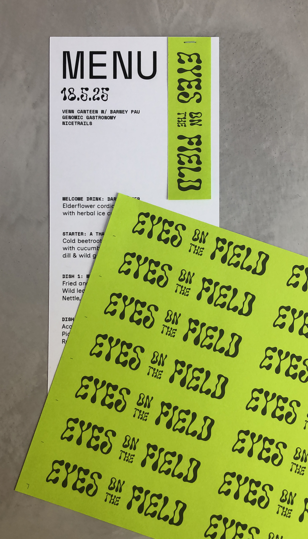Genomic Gastronomy’s Eyes on the Field project uses typography to mirror its themes of experimentation, ecology, and global food systems. The display type is Solvent from PintassilgoPrints—an inky, fluid, all-caps face with forms that sit somewhere between liquid and oil. Its quirky, decorative shapes give the project an expressive vibe, emphasizing the potential for transformation. Supporting text is set in Space Mono from Colophon, a monospace sans serif designed for Google Fonts that offers structure and a technical edge to the brand.